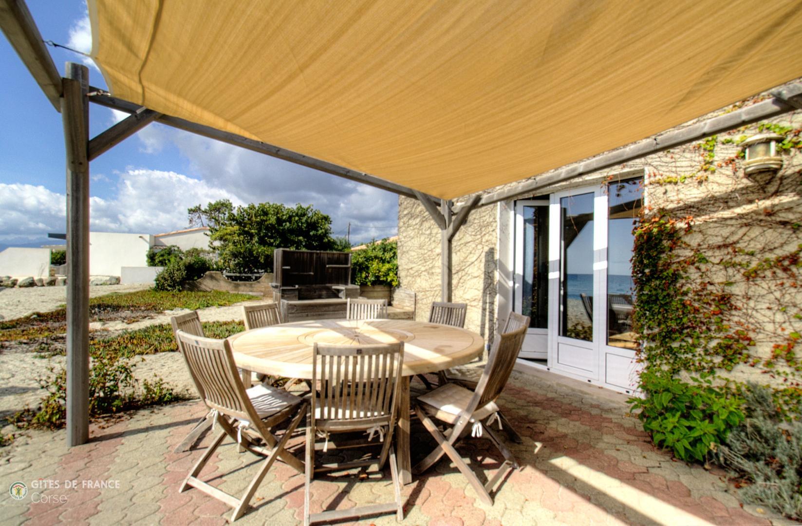 - Halbüberdachte Terrasse von 33 m² an der Vorderseite der Unterkunft.