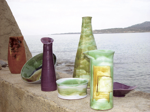 In jedem Werk mischt sie harmonisch die vibrierenden Pigmente auf dem Terrakotta, zwischen Glanz und Mattheit, Vollflächen und Überblendungen. Die leuchtenden Farbtöne fangen das mediterrane Licht und die wechselnden Reflexionen des Meeres ein und bieten so Kreationen, die die Schönheit der umgebenden Landschaft atmen.