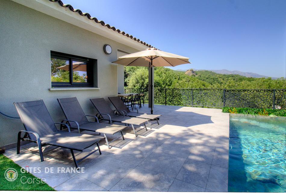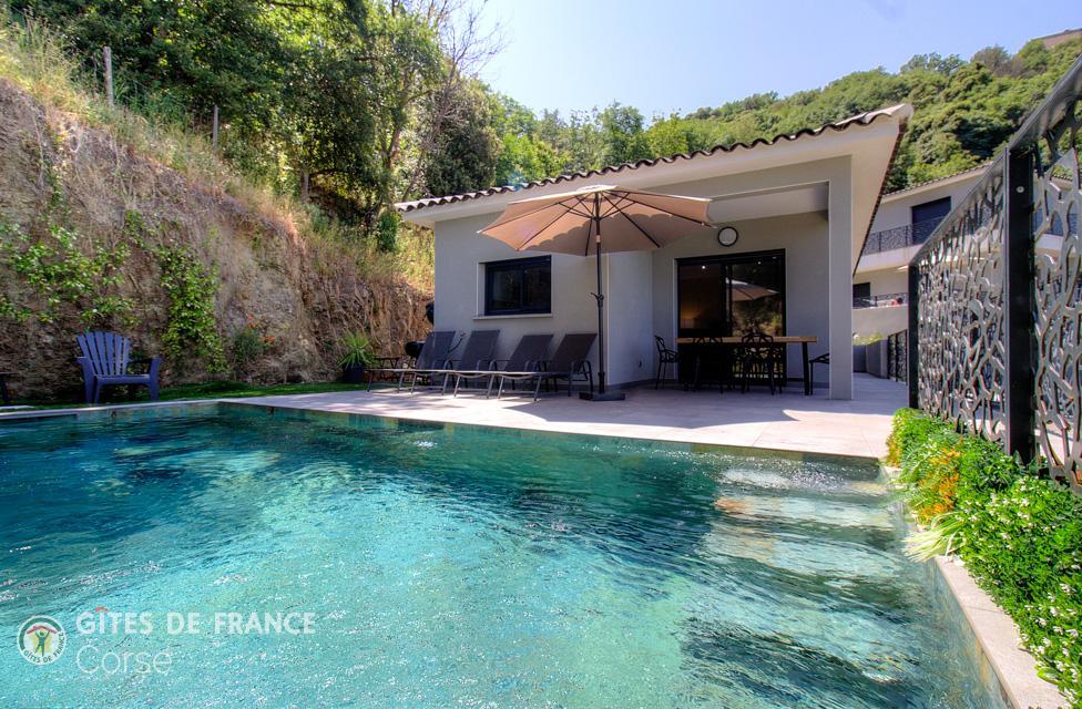 - Privates Schwimmbad 3x6 m (Salzbehandlung), geöffnet von Anfang April bis Ende Oktober, beheizt vom 01/05 bis 15/10, gesichert durch eine elektrisch zu öffnende Schutzklappe. Der Pool steht den Mietern zur alleinigen Nutzung zur Verfügung.