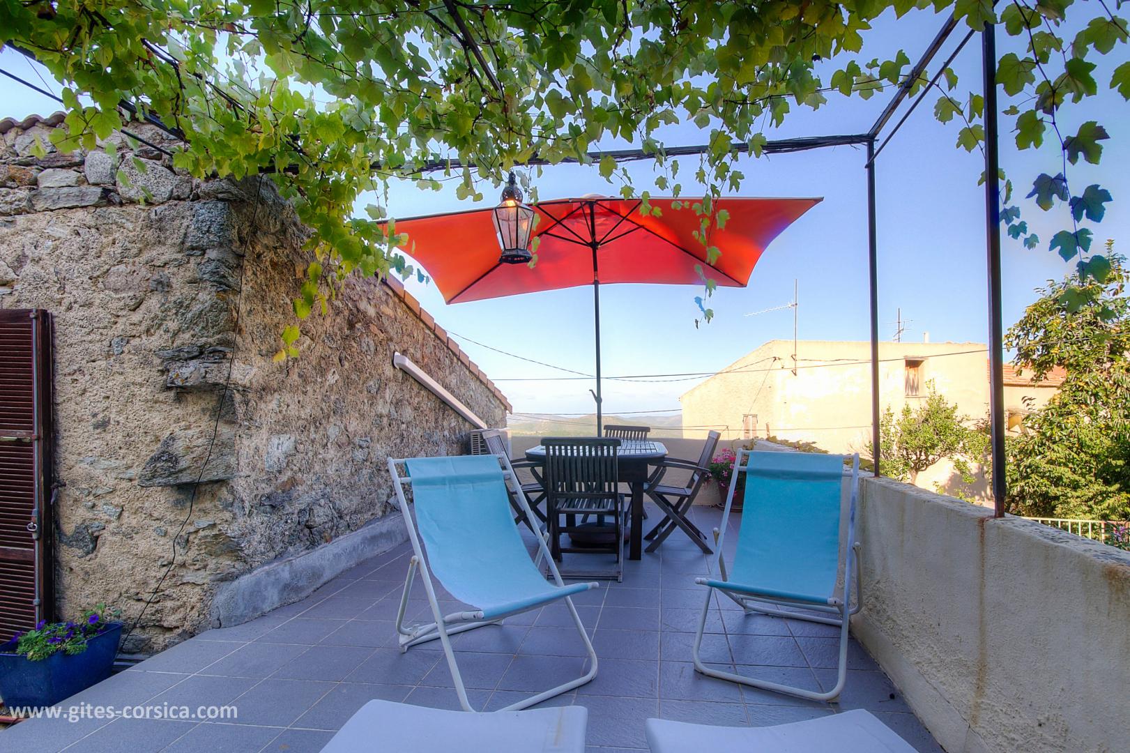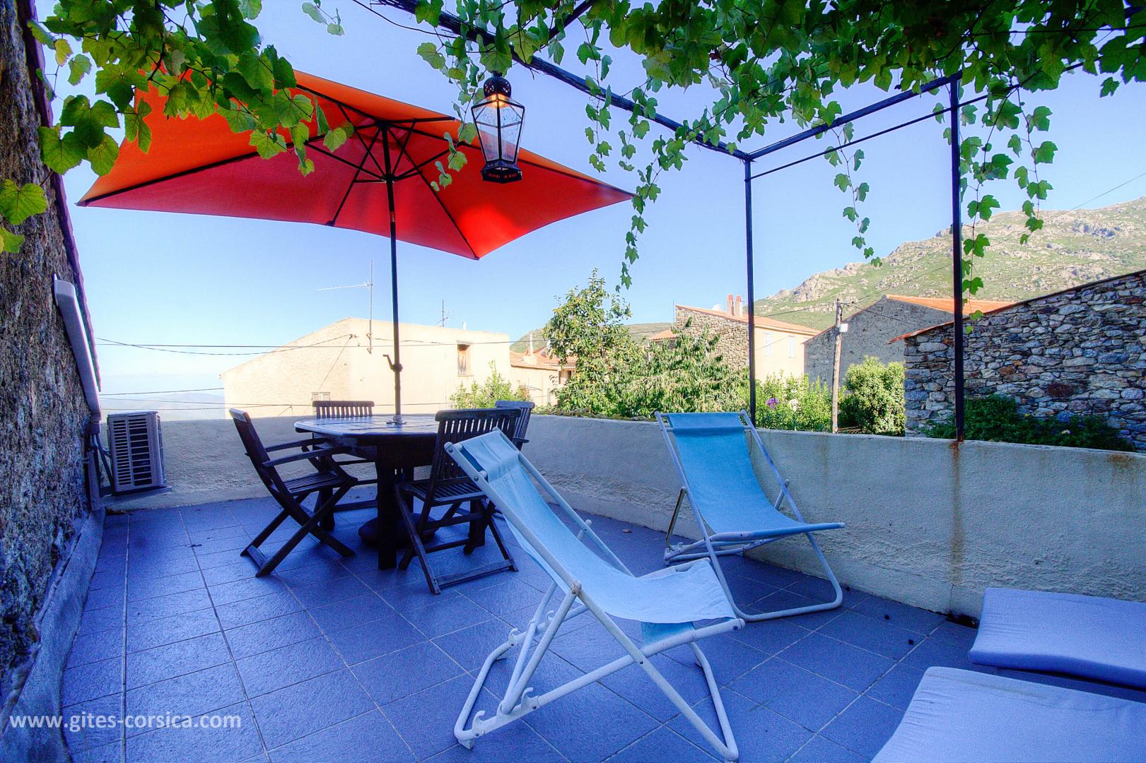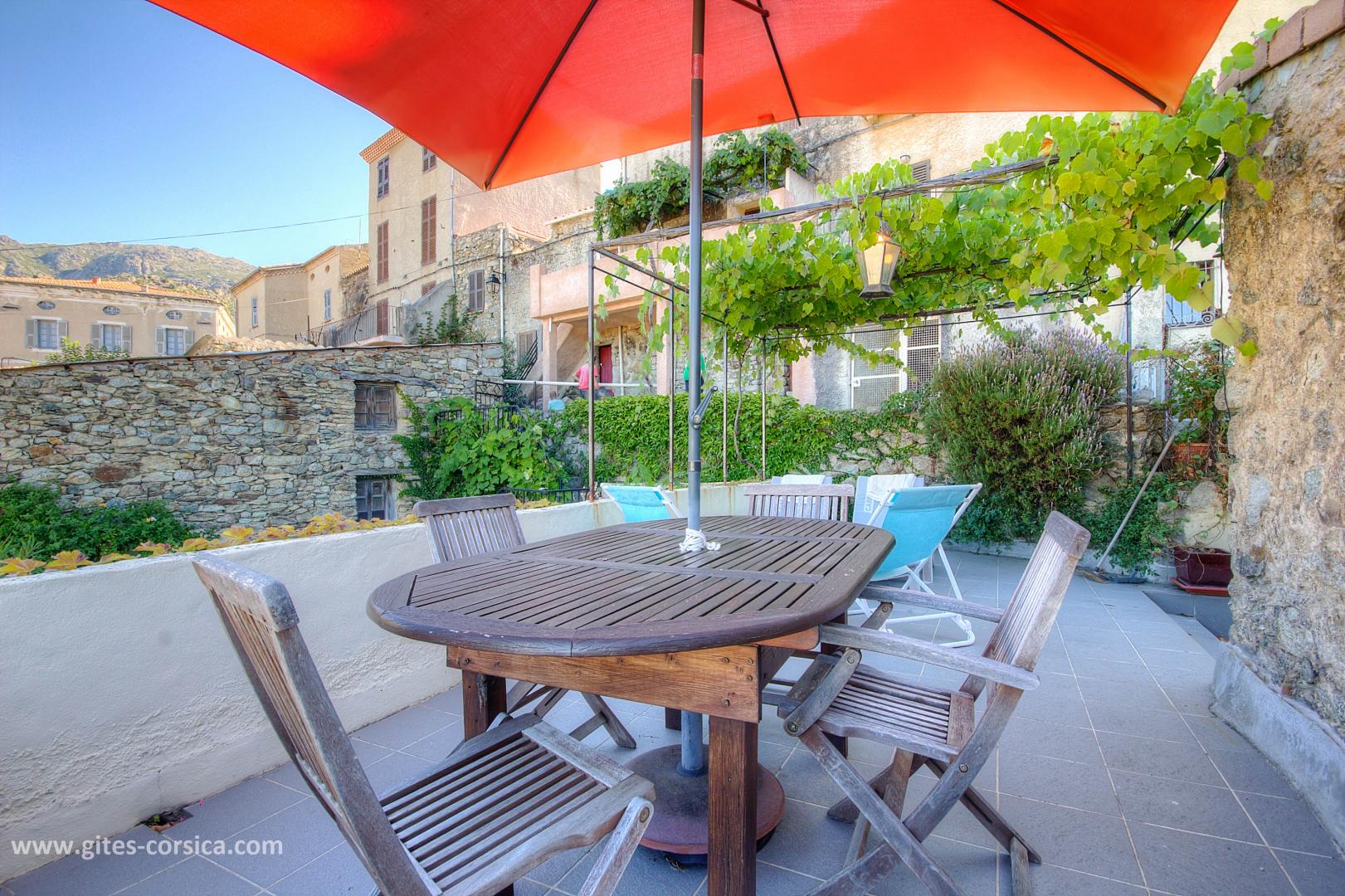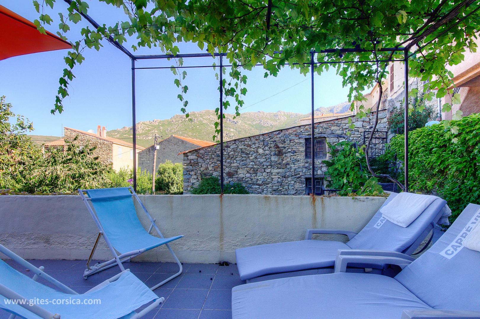 Das Korsika-Zentrum, seine Berge, seine Flüsse (Restonica, Asco) und seine Wanderwege, die einen duftenden Macchia durchqueren, sind ebenfalls leicht zugänglich. Dieses Haus verfügt über zwei Außenbereiche, einen Garten im Erdgeschoss und eine 39 m² große Terrasse im Obergeschoss mit Pergola, die einen atemberaubenden Blick auf die Berge bietet.