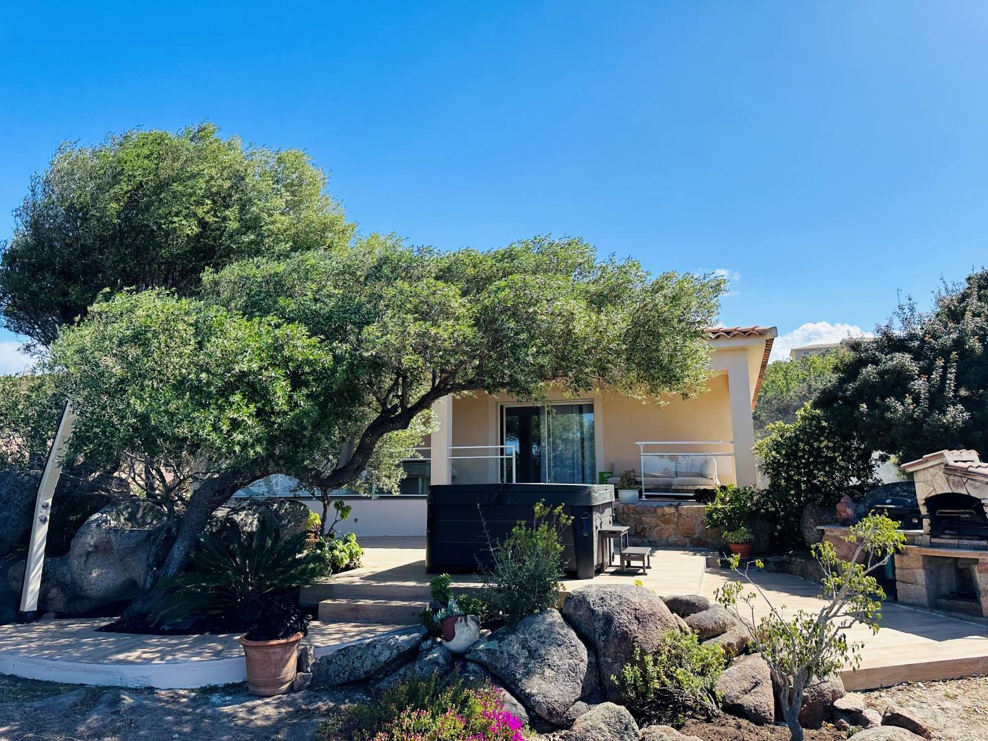 Beschreibung : Einzelhaus, Garten, Privatparkplatz, Privater Duschraum, Geschlossenes Grundstück, Terrasse oder Balkon, Meerblick, Private Toiletten, Separates WC