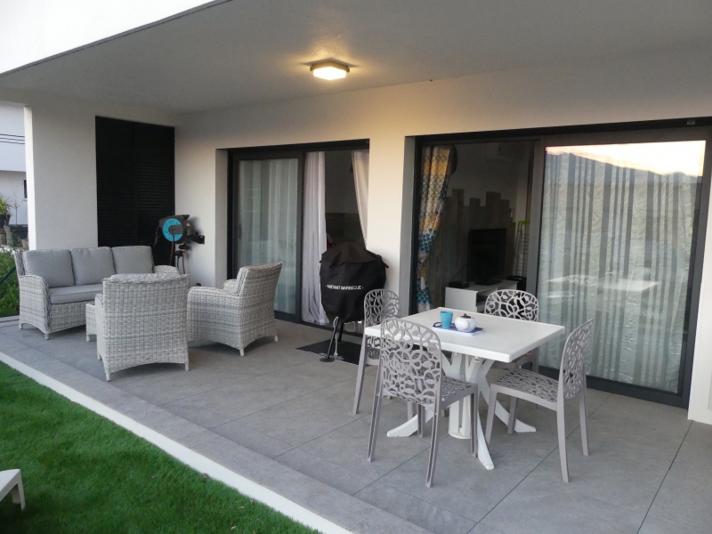 Beschreibung : Einbauküche, Eigener Eingang, Garten, Privatparkplatz, Privates Bad, Privater Duschraum, Geschlossenes Grundstück, Terrasse oder Balkon, Private Toiletten