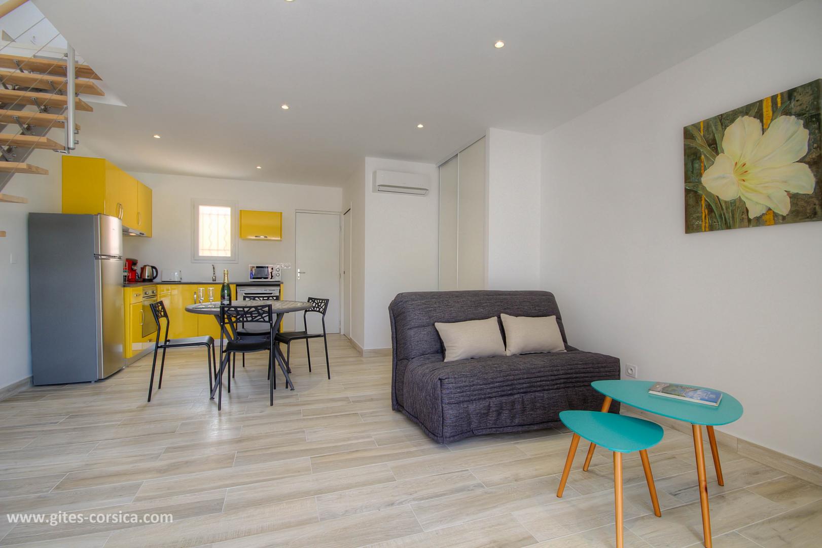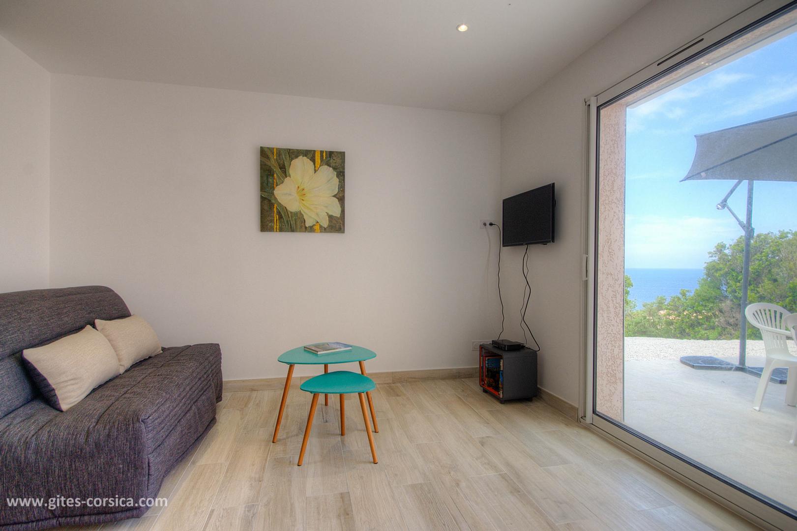 Pensé pour profiter d'une vue panoramique sur la baie de Galeria, le gîte de Dorothée est tourné vers ce panorama à couper le souffle. L'appartement et ses deux terrasses, à seulement 200 mètres de la plage, disposent des équipements assurant un confort optimal : grande literie pour une douce nuit, cafetière dans la chambre pour un réveil en douceur, décoration épurée et matériel de qualité. La région et ce logement de choix n'ont pas fini de vous conquérir.