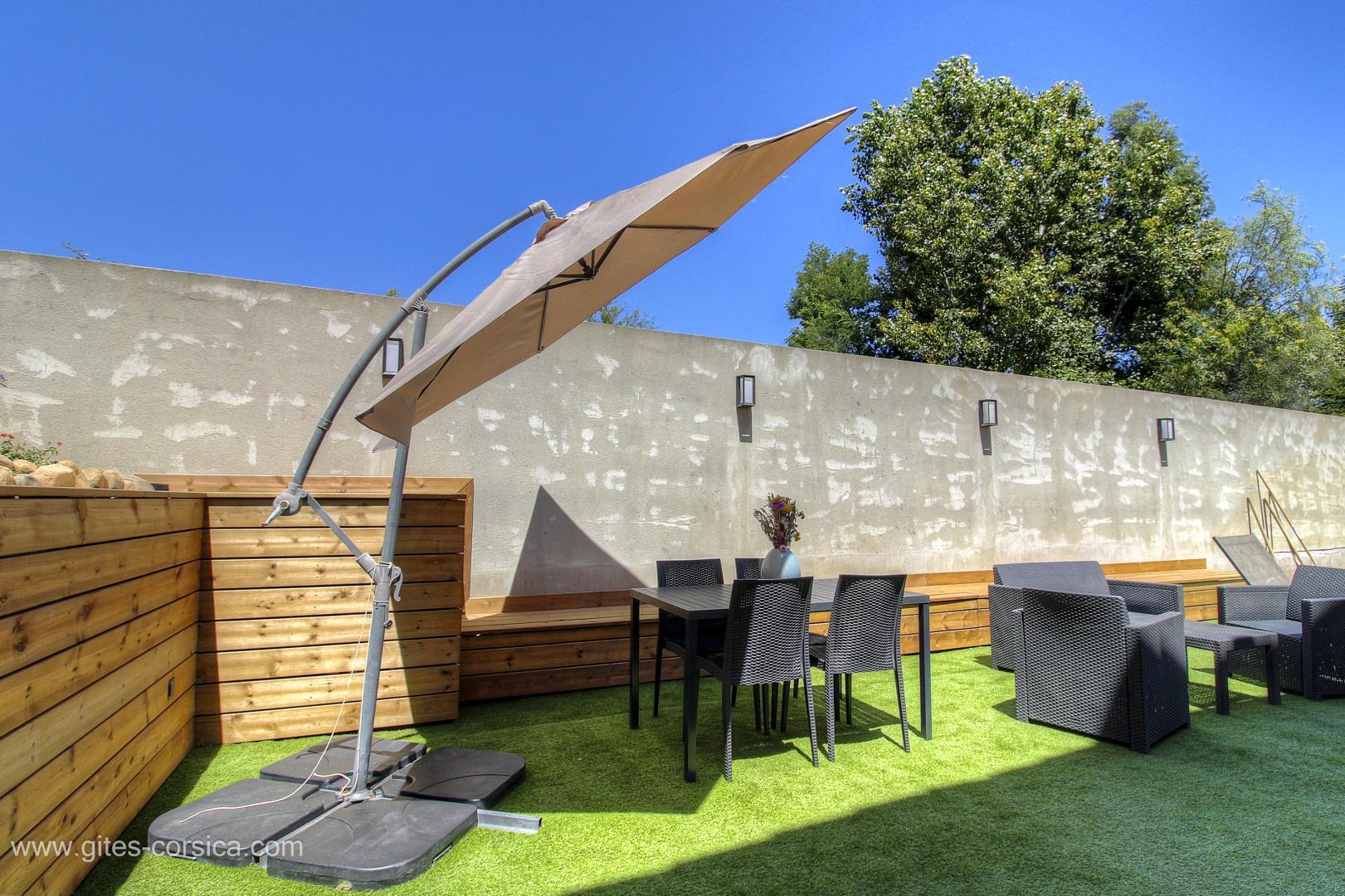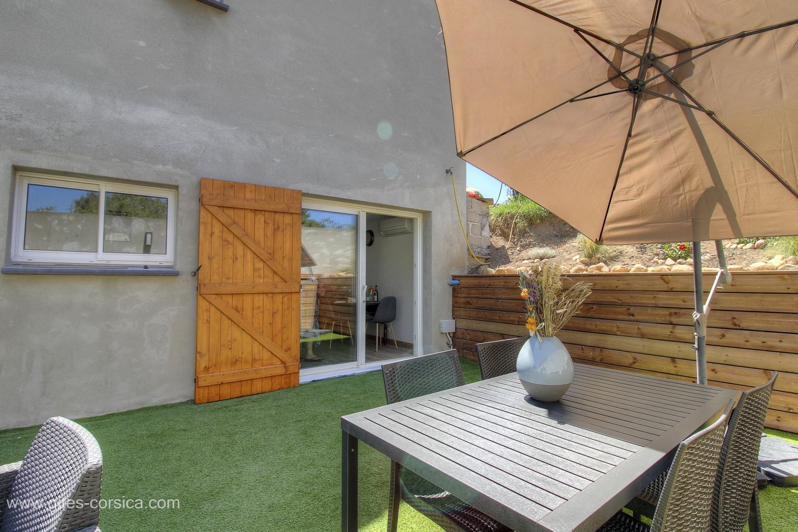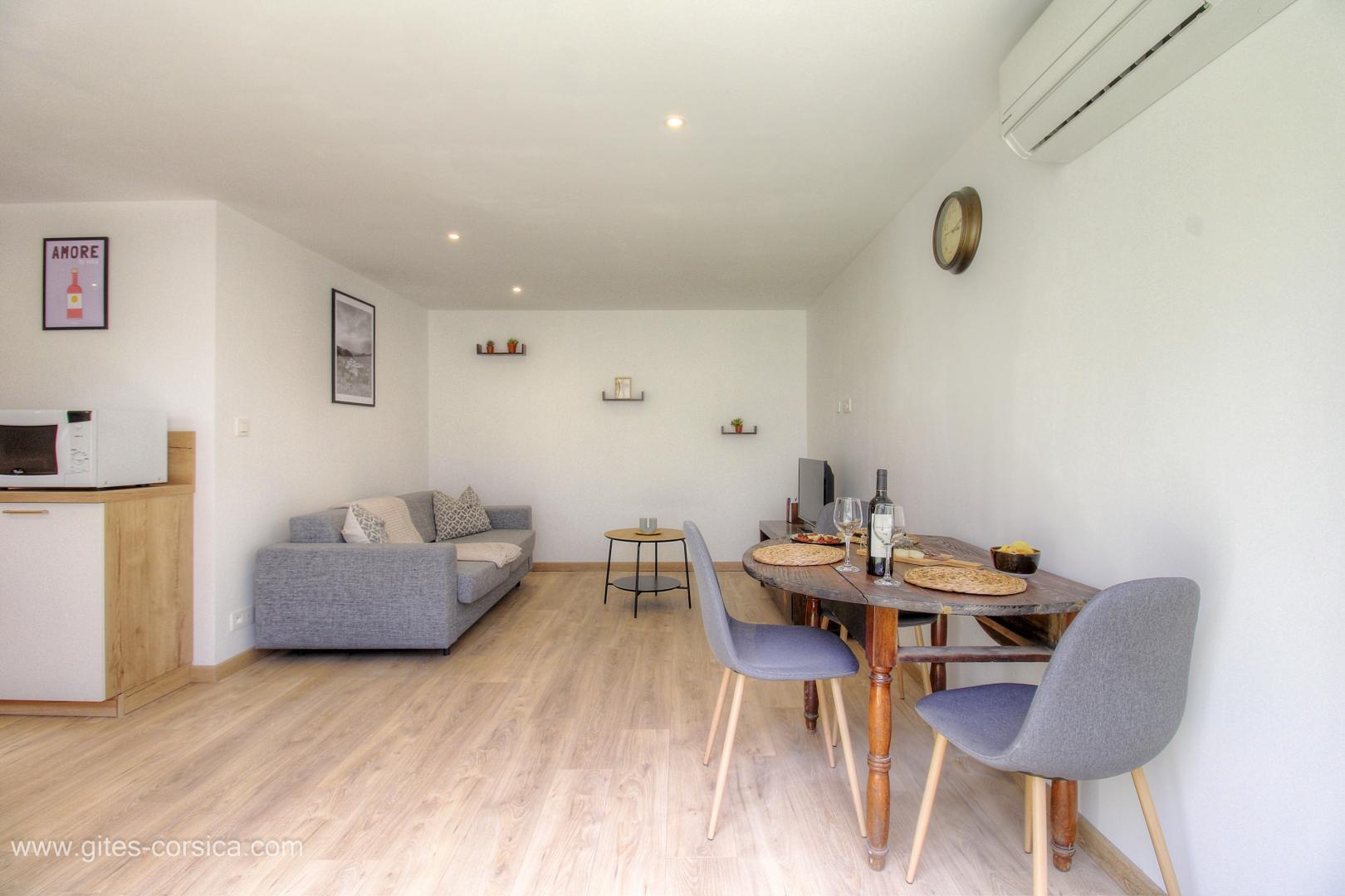 L'appartement est entièrement climatisé et peut accueillir jusqu'à 4 personnes dans un confort et une décoration moderne. Vous pourrez y prendre vos repas ou votre apéritif en plein air sur la terrasse.