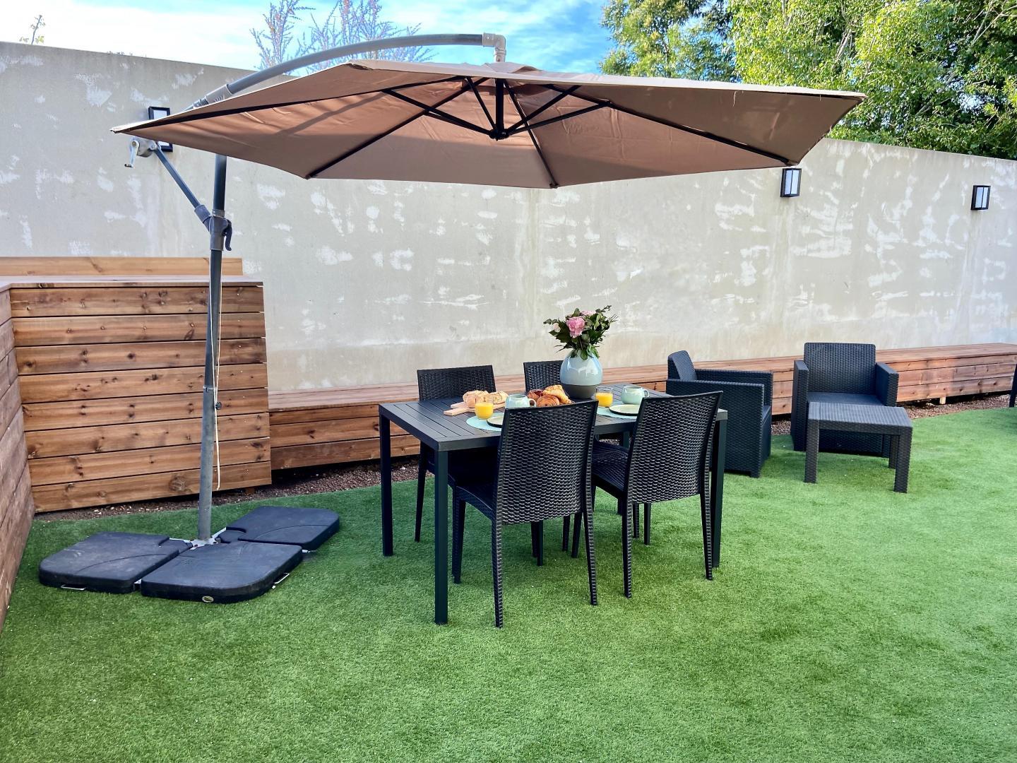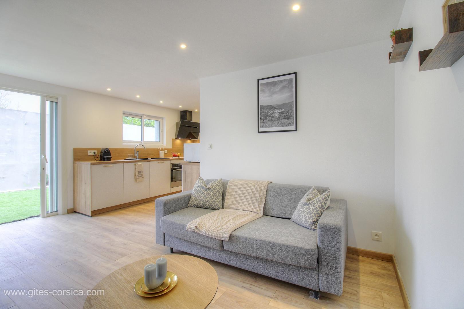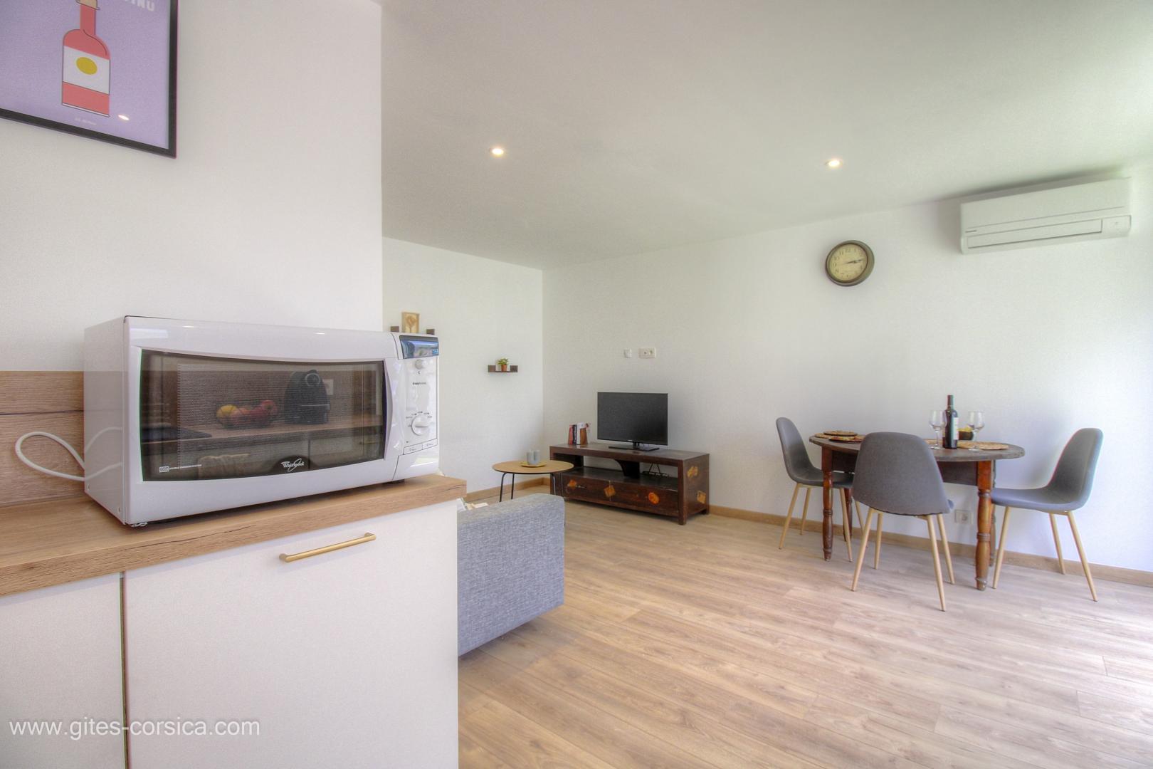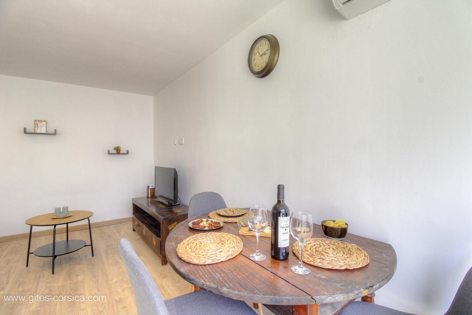 L'appartement est entièrement climatisé et peut accueillir jusqu'à 4 personnes dans un confort et une décoration moderne. Vous pourrez y prendre vos repas ou votre apéritif en plein air sur la terrasse.