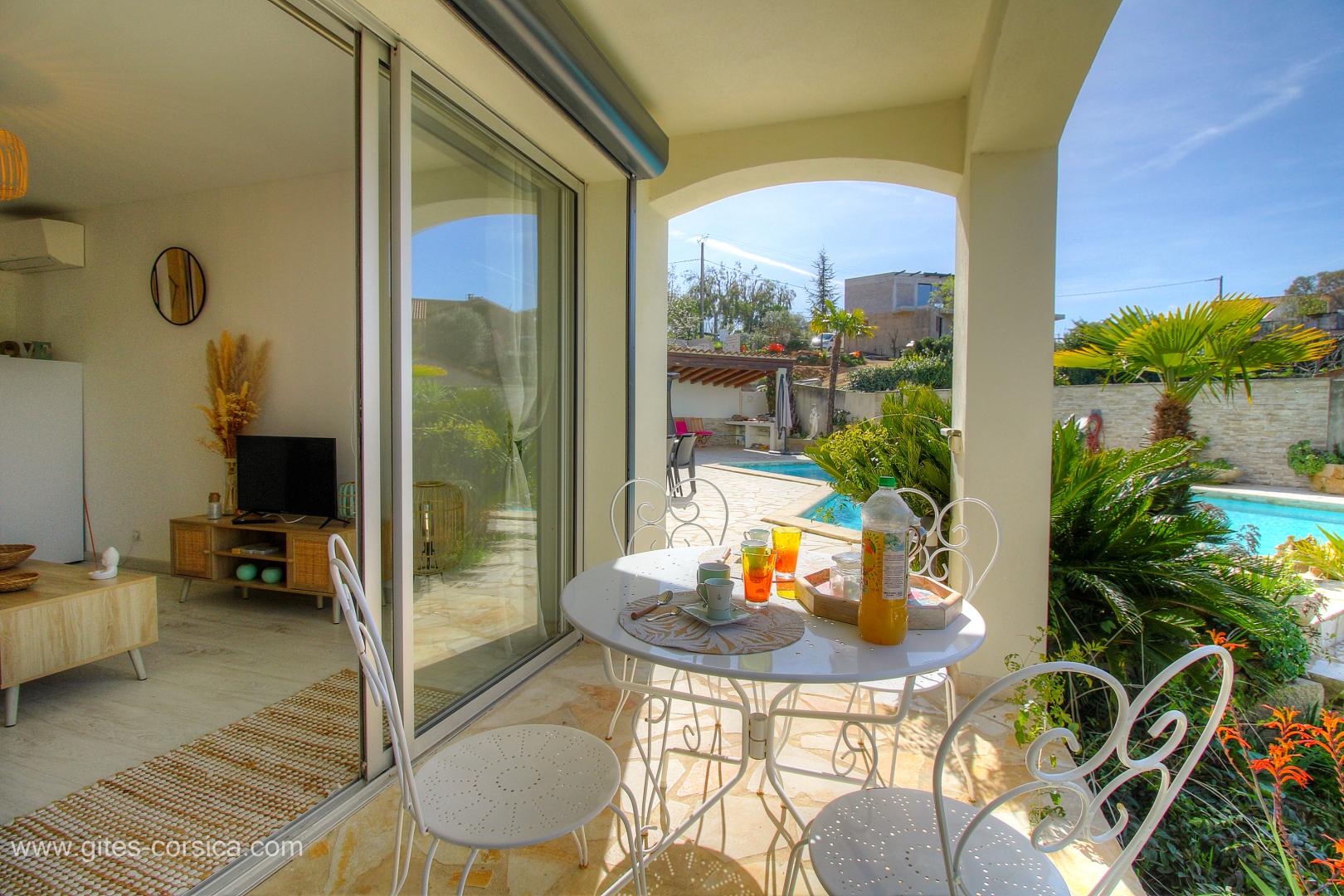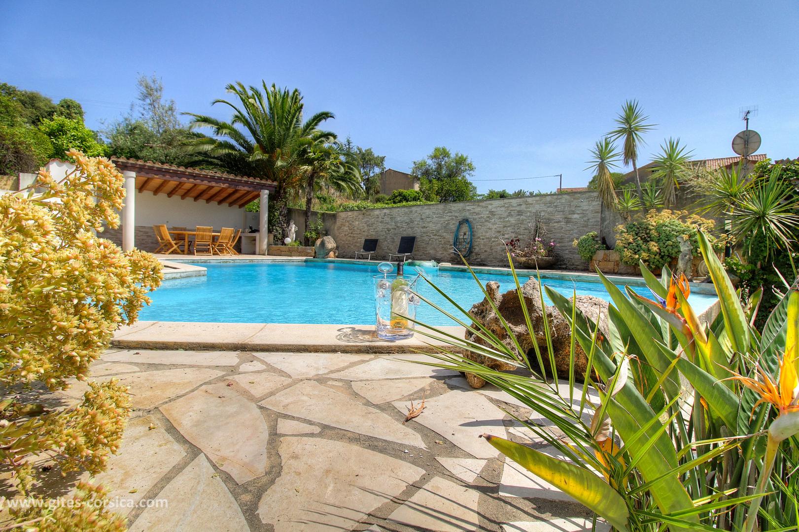 L'atout indéniable de cette location est sans nulle doute sa vaste piscine de 10m sur 6m, ouverte sur un agréable jardin. Vous apprécierez également sans aucun doute le temps passé sur la terrasse avec sa vue sur le jardin, Vous vous y installerez pour prendre votre petit déjeuner, siroter votre apéritif ou passer de longues soirées à vous remémorer toutes les merveilles vues dans la journée.