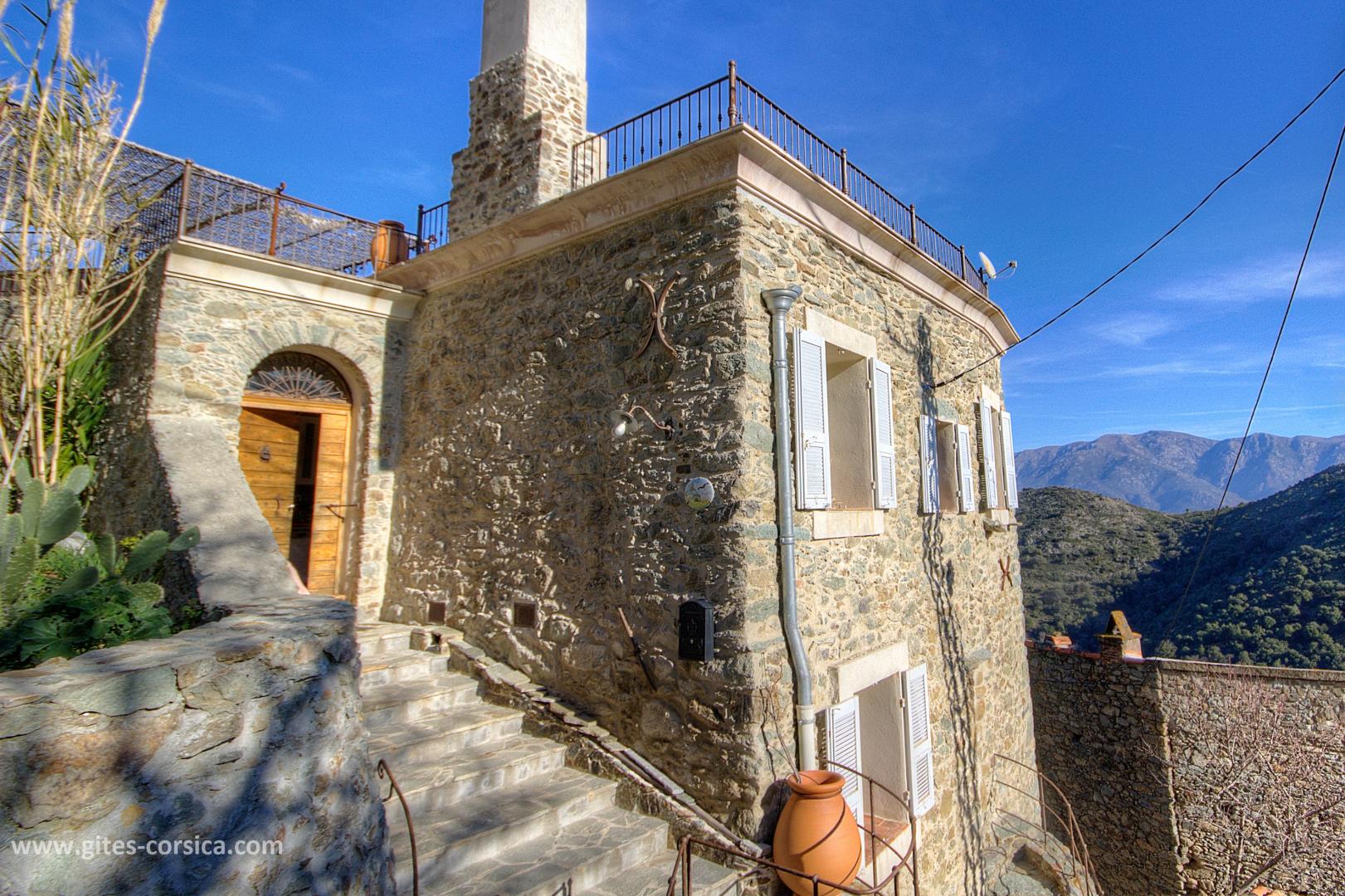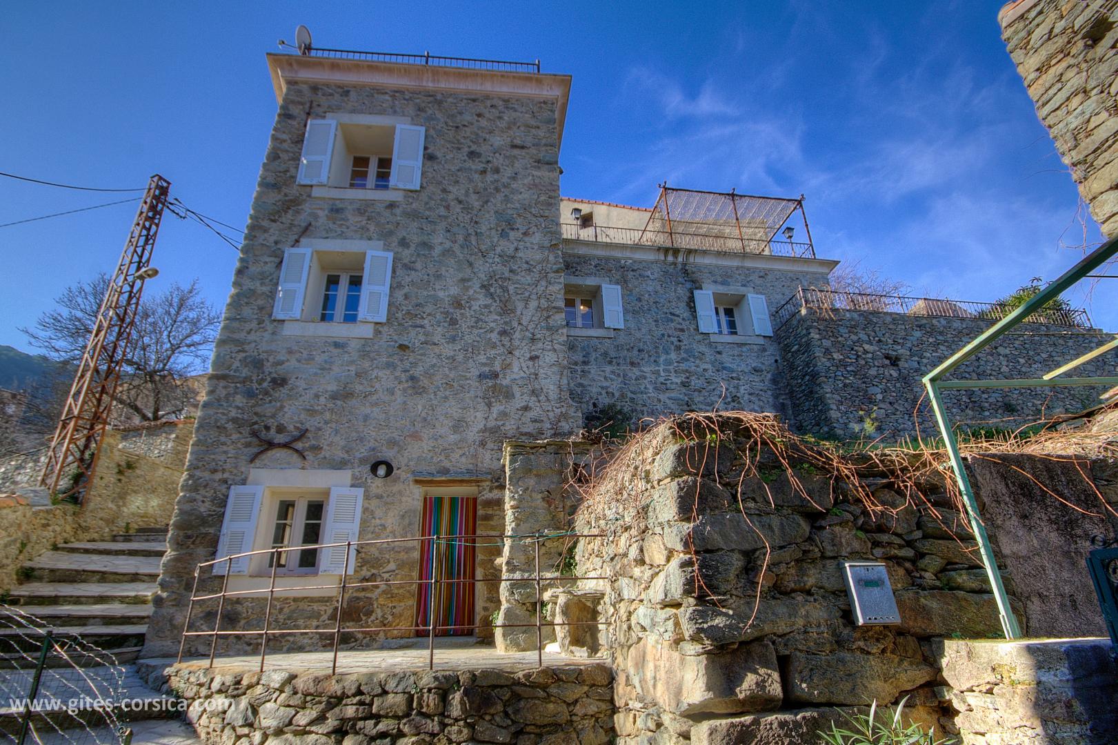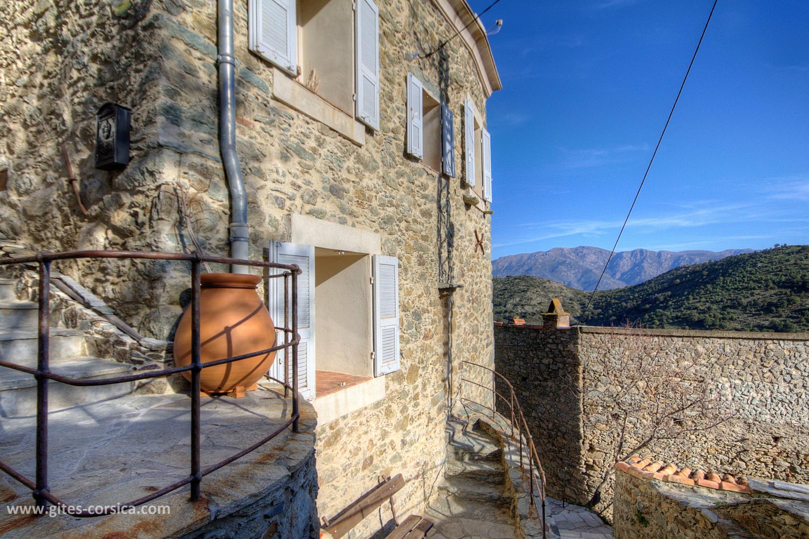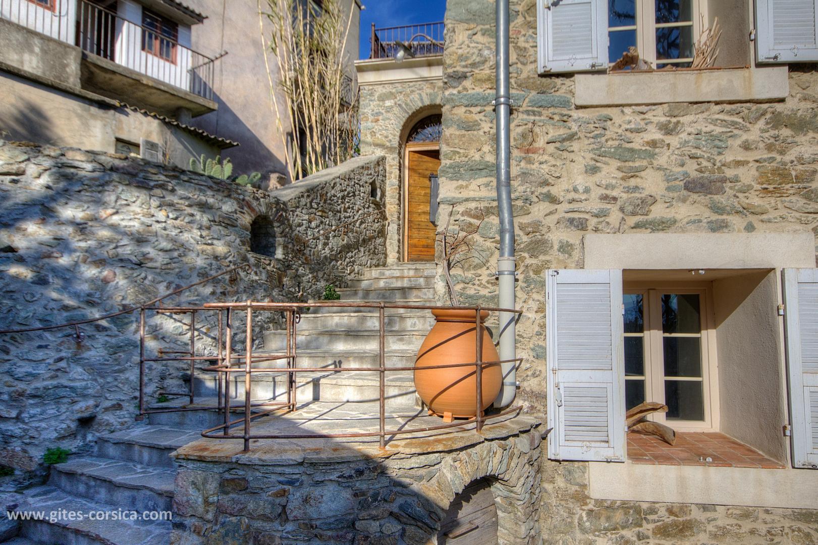 Bienvenue à la Casa Rafaelu : cette maison de caractère qui se situe au cœur du village de Castifao a été restaurée dans le respect des traditions (la pierre côtoie le châtaignier, et les voûtes ajoutent encore un peu de magie aux lieux...), tout en proposant des aménagements et équipements de grand confort. Exposée plein sud, Elle est aménagée sur deux niveaux, qui disposent chacun d'une chambre, d'un sanitaire et d'une entrée indépendante,ce qui en fait un lieu de séjour idéal pour deux couples, ou pour une famille puisque les deux niveaux communiquent également par un escalier intérieur.