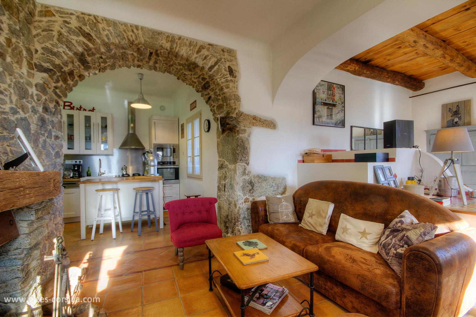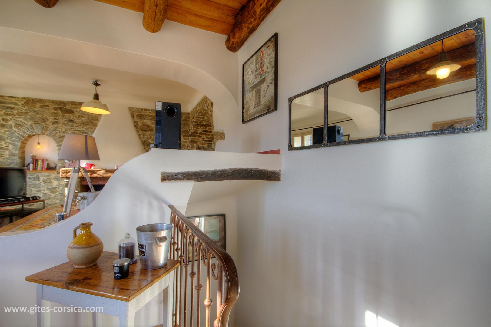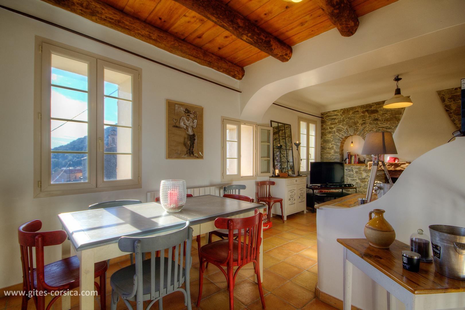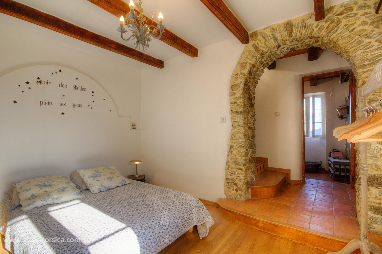 Bienvenue à la Casa Rafaelu : cette maison de caractère qui se situe au cœur du village de Castifao a été restaurée dans le respect des traditions (la pierre côtoie le châtaignier, et les voûtes ajoutent encore un peu de magie aux lieux...), tout en proposant des aménagements et équipements de grand confort. Exposée plein sud, Elle est aménagée sur deux niveaux, qui disposent chacun d'une chambre, d'un sanitaire et d'une entrée indépendante,ce qui en fait un lieu de séjour idéal pour deux couples, ou pour une famille puisque les deux niveaux communiquent également par un escalier intérieur.