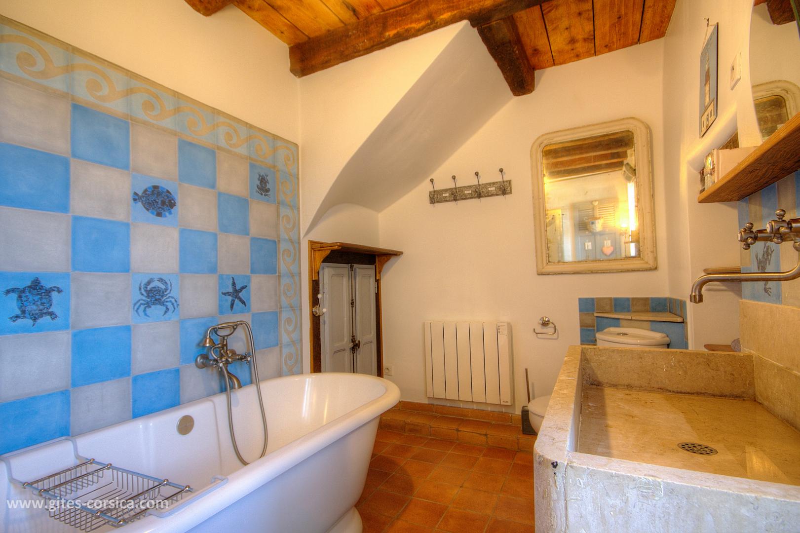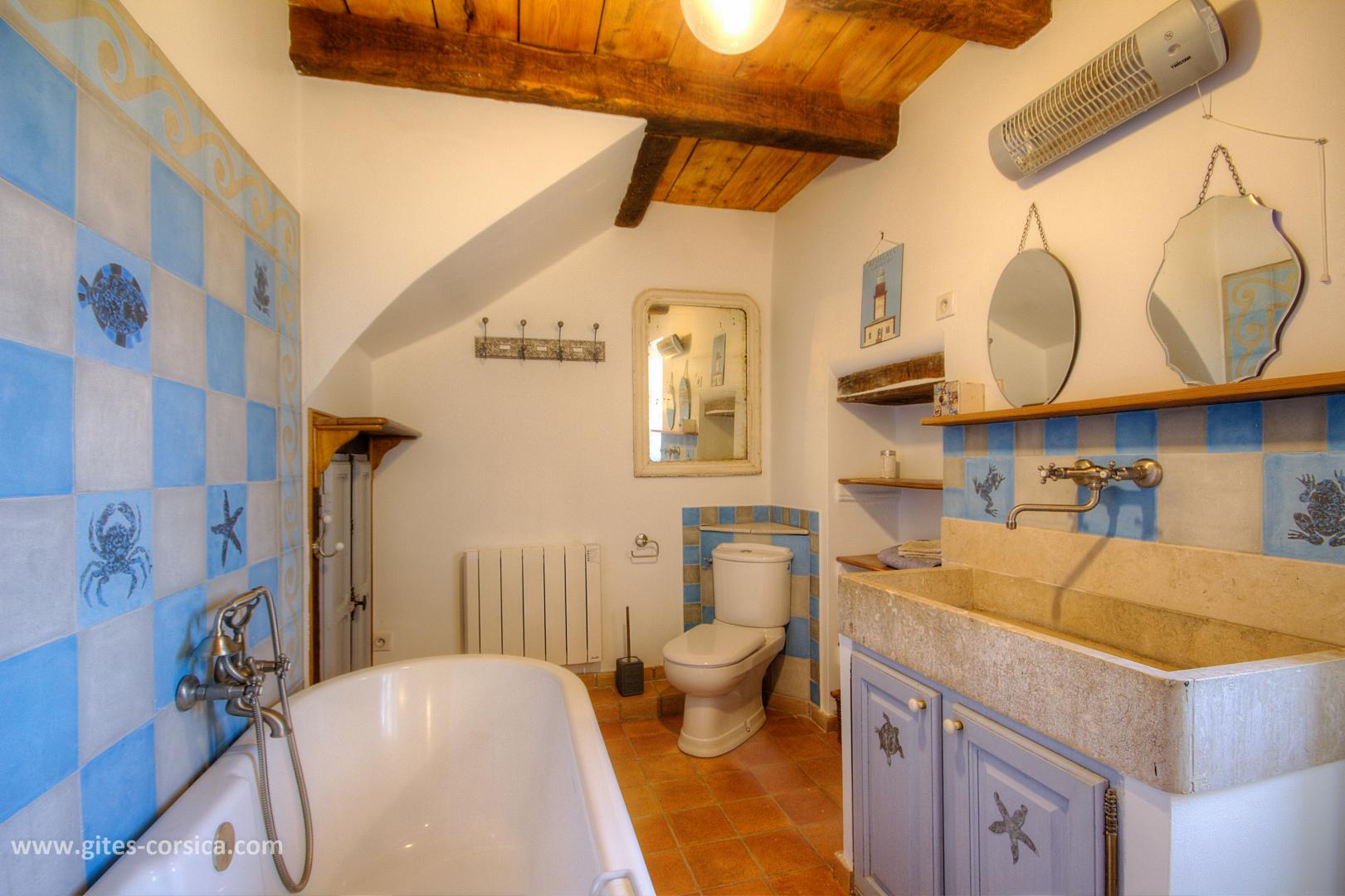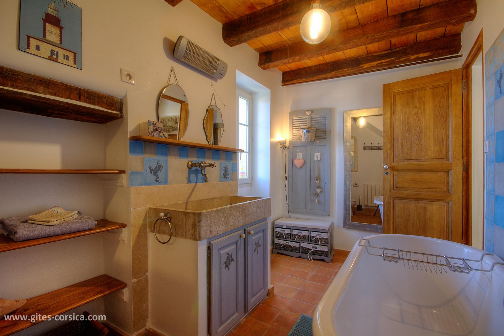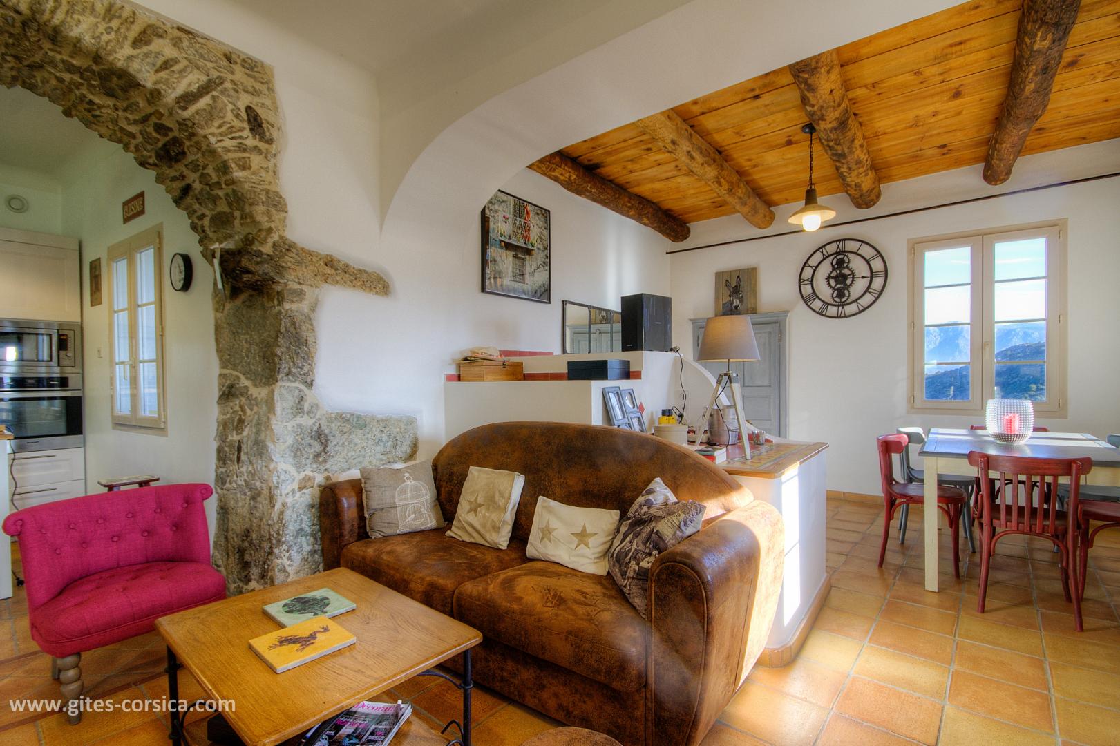 Bienvenue à la Casa Rafaelu : cette maison de caractère qui se situe au cœur du village de Castifao a été restaurée dans le respect des traditions (la pierre côtoie le châtaignier, et les voûtes ajoutent encore un peu de magie aux lieux...), tout en proposant des aménagements et équipements de grand confort. Exposée plein sud, Elle est aménagée sur deux niveaux, qui disposent chacun d'une chambre, d'un sanitaire et d'une entrée indépendante,ce qui en fait un lieu de séjour idéal pour deux couples, ou pour une famille puisque les deux niveaux communiquent également par un escalier intérieur.