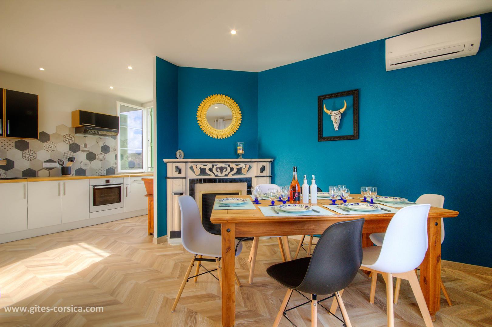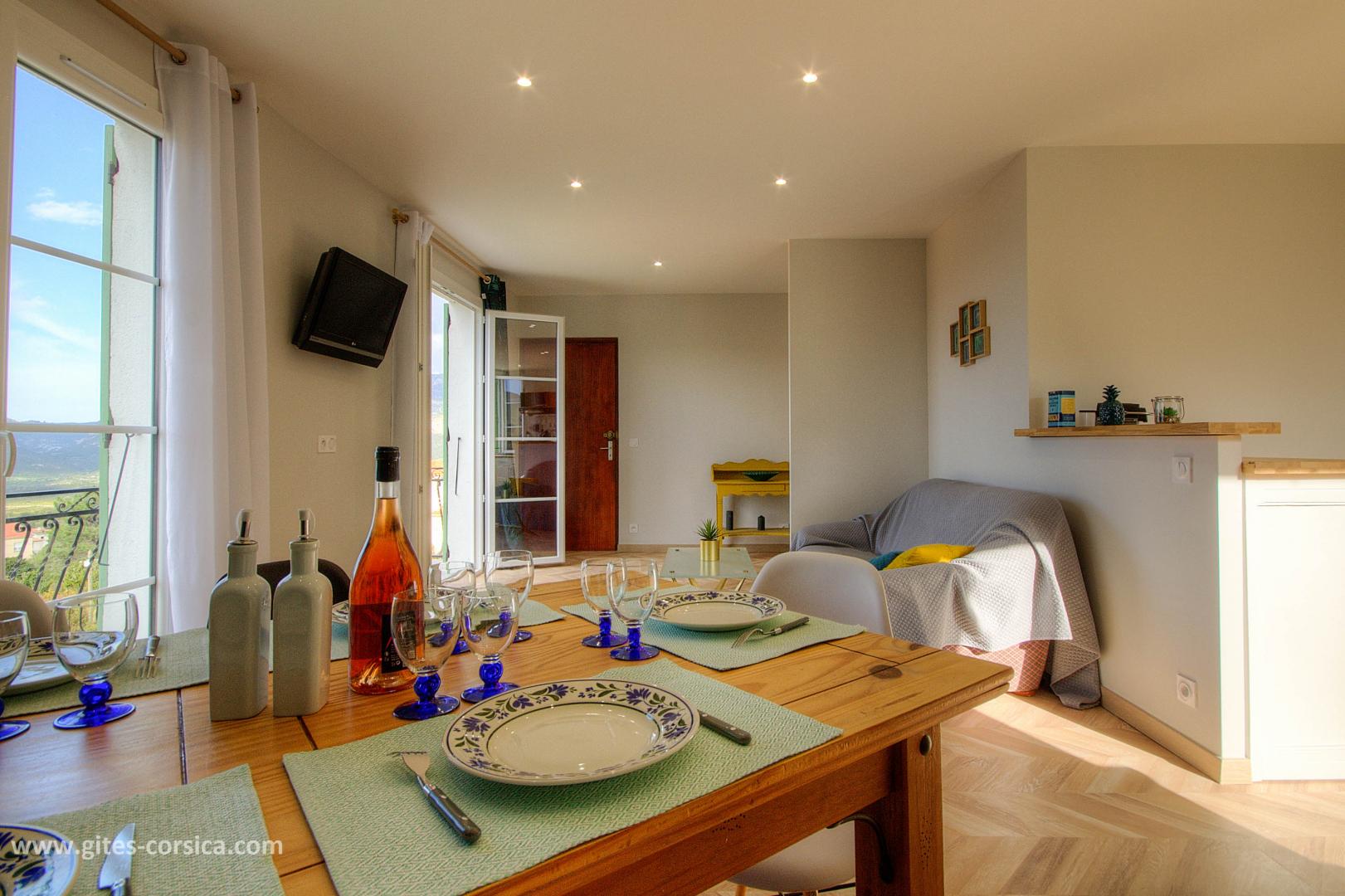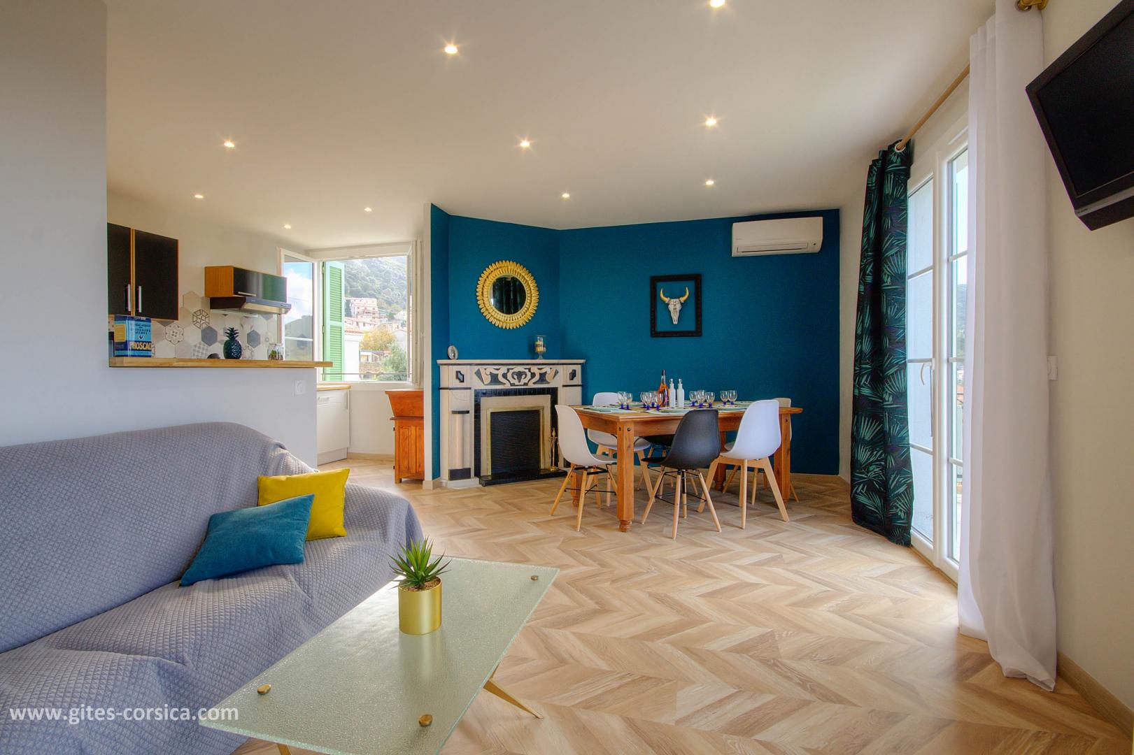 De retour "à la maison", vous vous y sentirez assurément comme chez vous ! L'appartement rénové a gardé l'âme des maisons de village, avec sa cheminée d'époque et ses meubles de famille. La décoration contemporaine en plus ! La vue panoramique sur la mer et les montagnes laisse imaginer des apéritifs inoubliables. Une certitude : le coucher de soleil vous coupera le souffle.