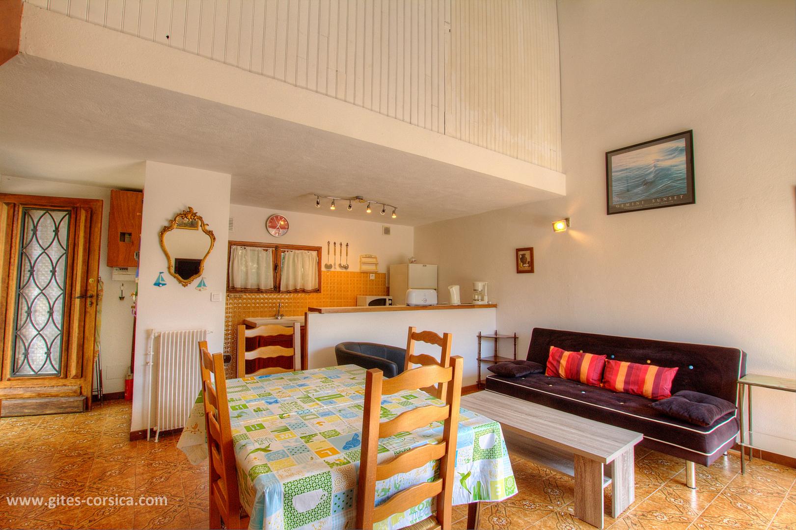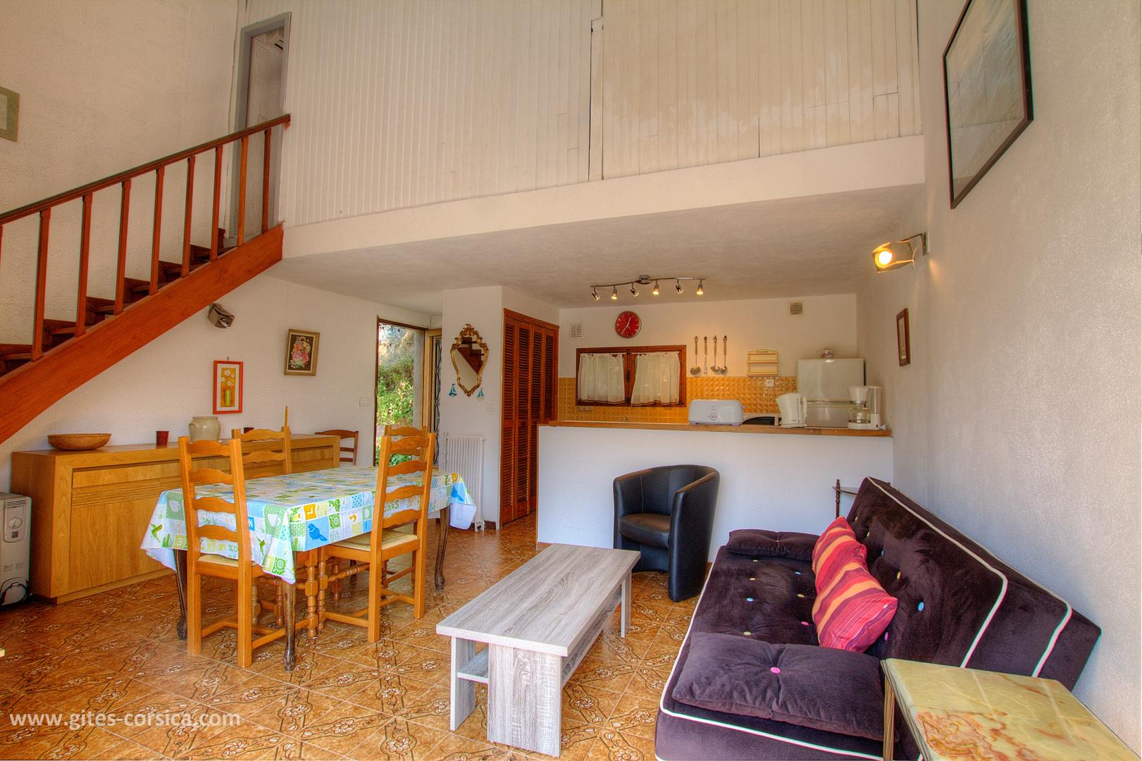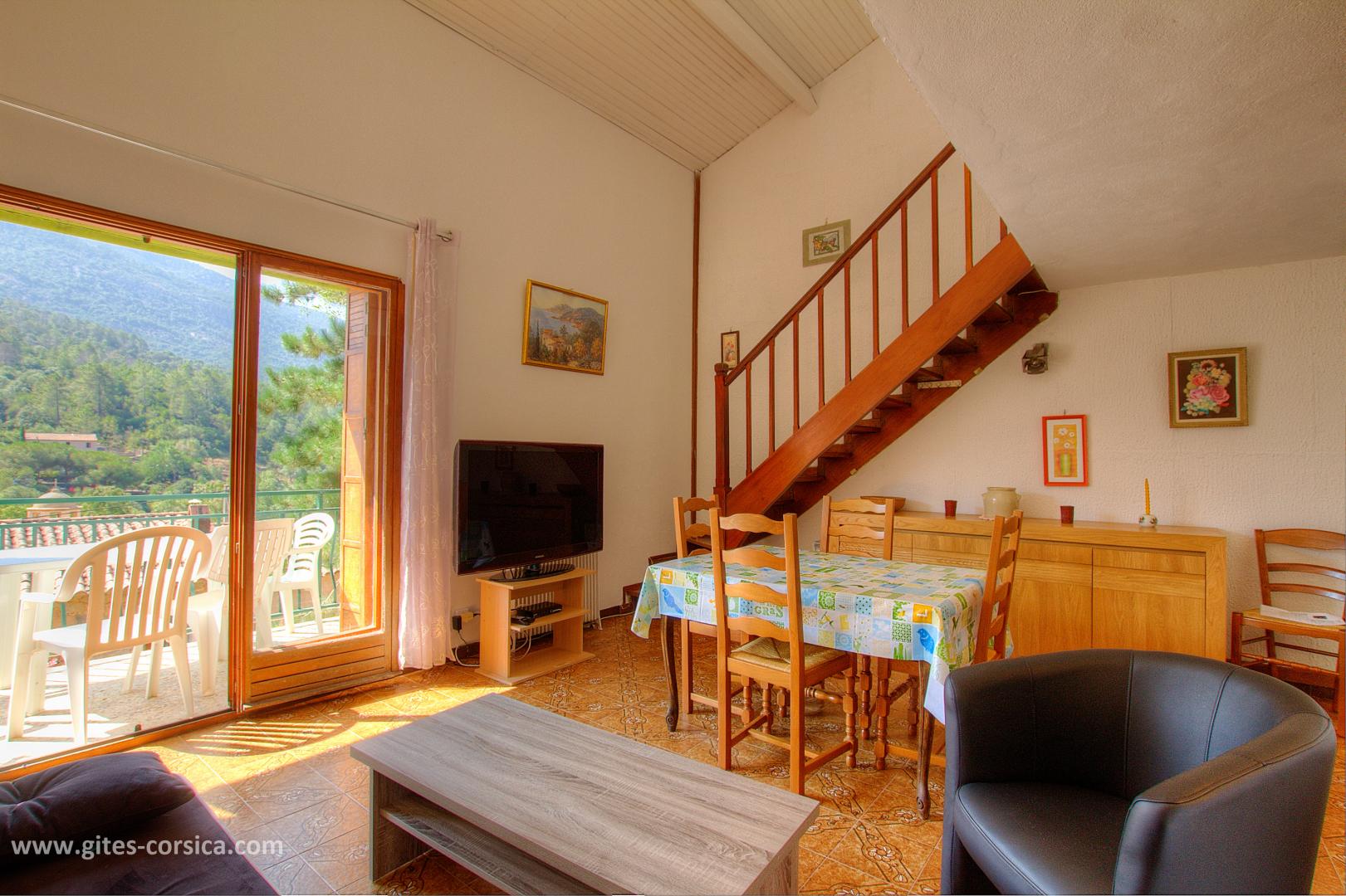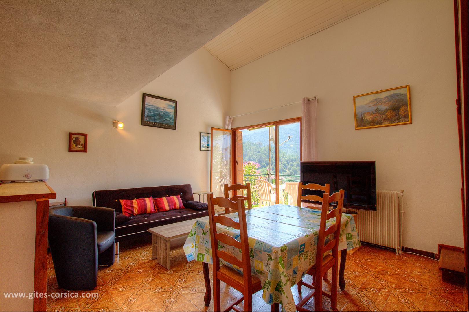 Im Dorf, Ferienhaus von 54 qm auf 3 Ebenen in einem Reihenhaus. Es setzt sich wie folgt zusammen : Im Erdgeschoss : - Wohnzimmer / Küche Im Obergeschoss : - 1 klimatisiertes Schlafzimmer mit 1 Bett 140x190 cm - Bad / WC vom Schlafzimmer aus zugänglich Im Stufe -1 (Zugriff von außen) : - 1 Schlafzimmer mit 1 Bett 160 cm - Duschraum / WC Der Zugang im Dorf ist eng und kurvenreich Kleine Tiere werden akzeptiert - Terrasse von 7.4 qm mit Bergblick - Gartenmöbel - Parken (im Dorf auf 50m, Zugang zur Ferienhaus zu Fuß) - Waschmaschine draußen - Klimaanlage im Schlafzimmer auf dem Boden - Spülmaschine - Mikrowelle - Fernseher - Gefrierfach