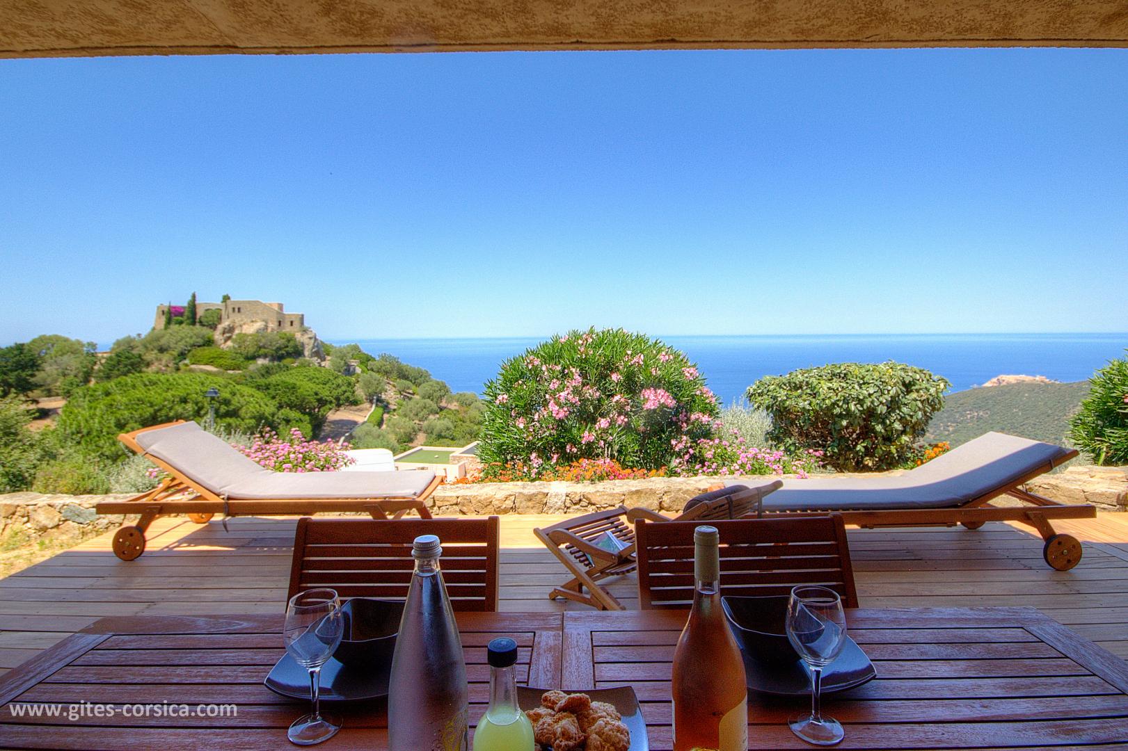 - Überdachte Terrasse von 11 qm und Holzterrasse von 10 qm mit Meerblick