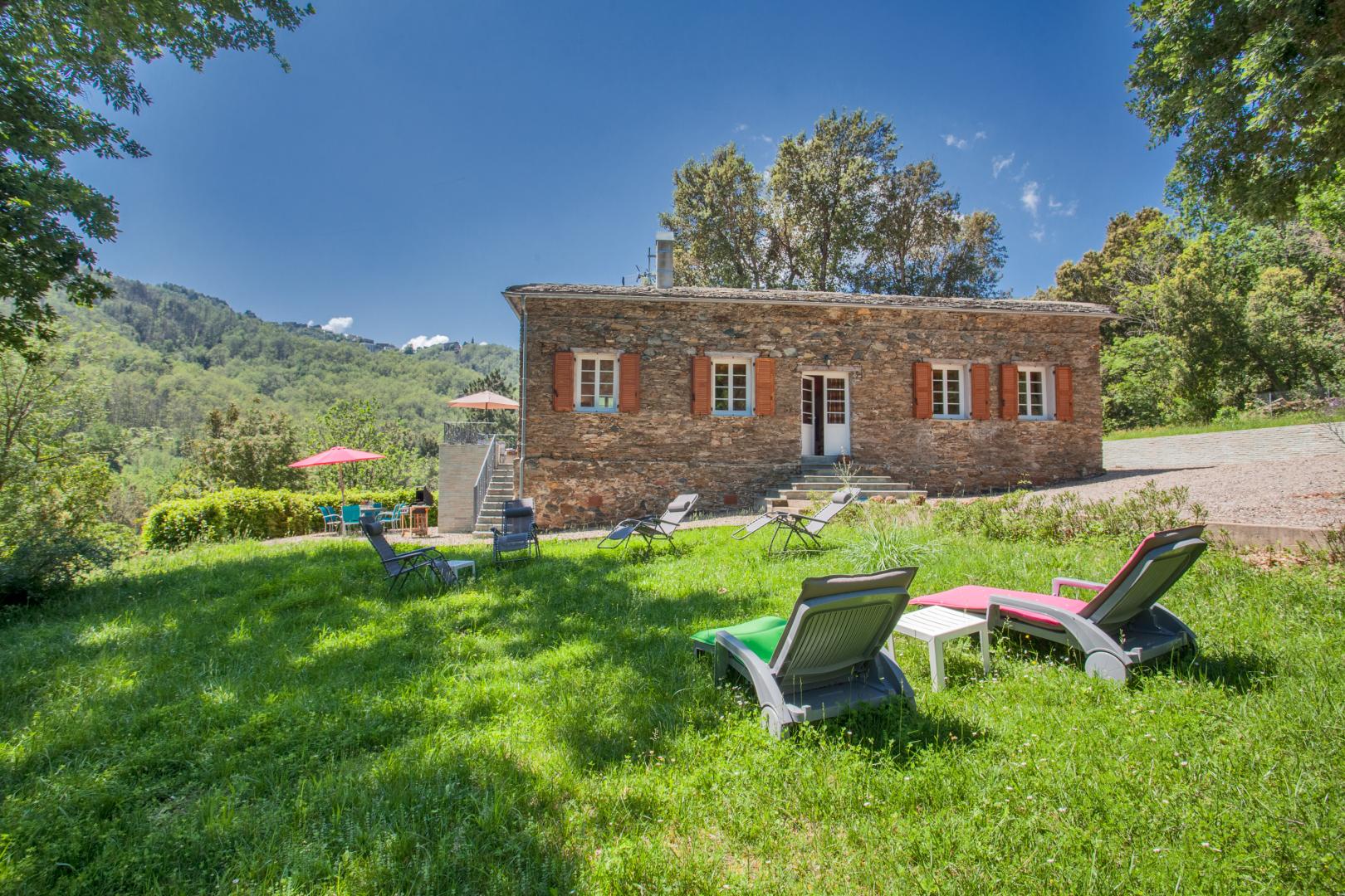 Im Herzen des Regionalen Naturparks Korsika, auf einem bewaldeten Grundstück von 7 Hektar, freistehendes Steinhaus auf 2 Ebenen. Es setzt sich wie folgt zusammen: