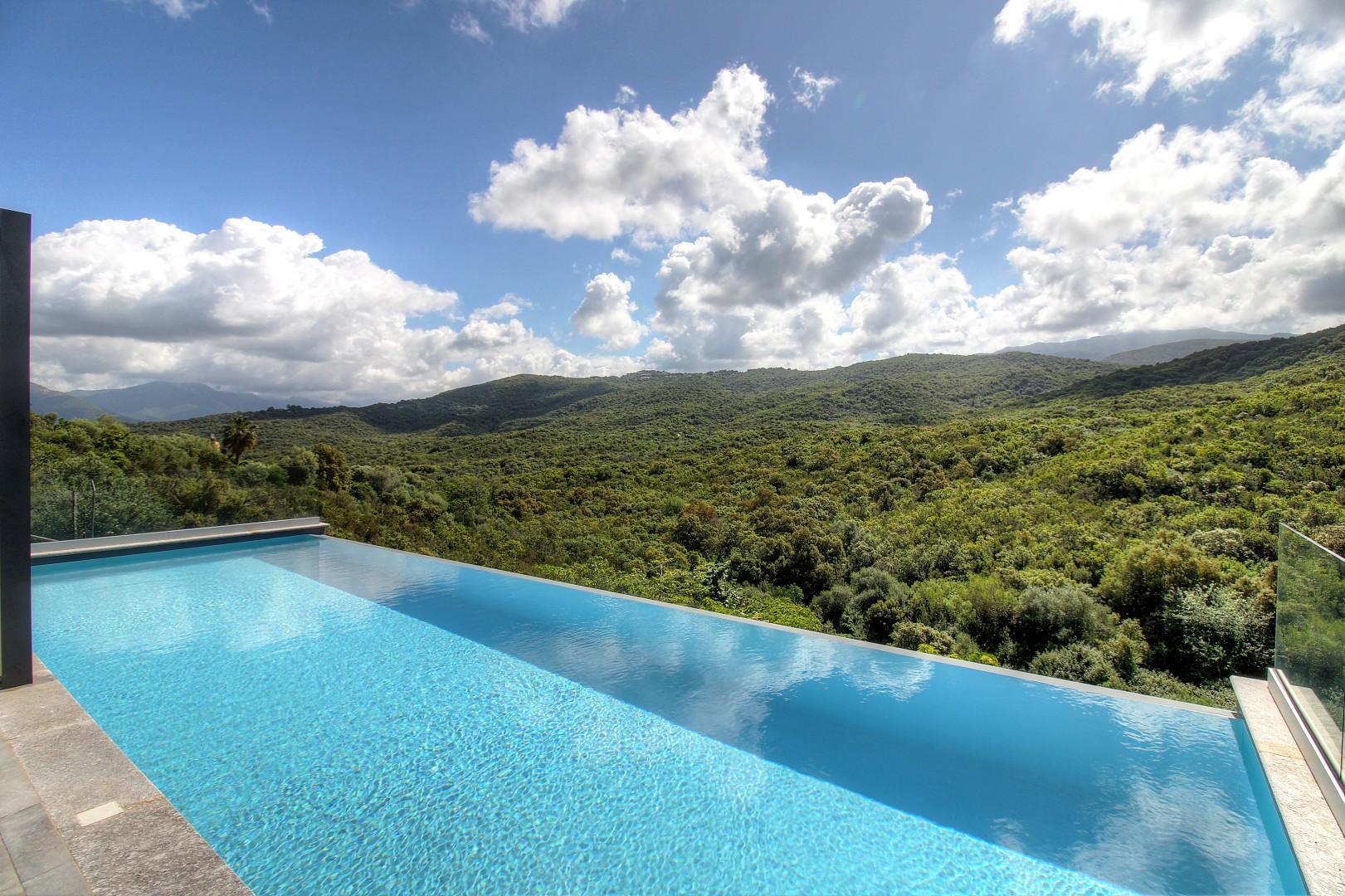 - Privates Salzwasserschwimmbad (12x4 m) mit Überlaufrinne, beheizt im Mai/Juni und September/Oktober, gesichert durch einen akustischen Alarm. Der Pool steht ausschließlich den Mietern zur Verfügung.