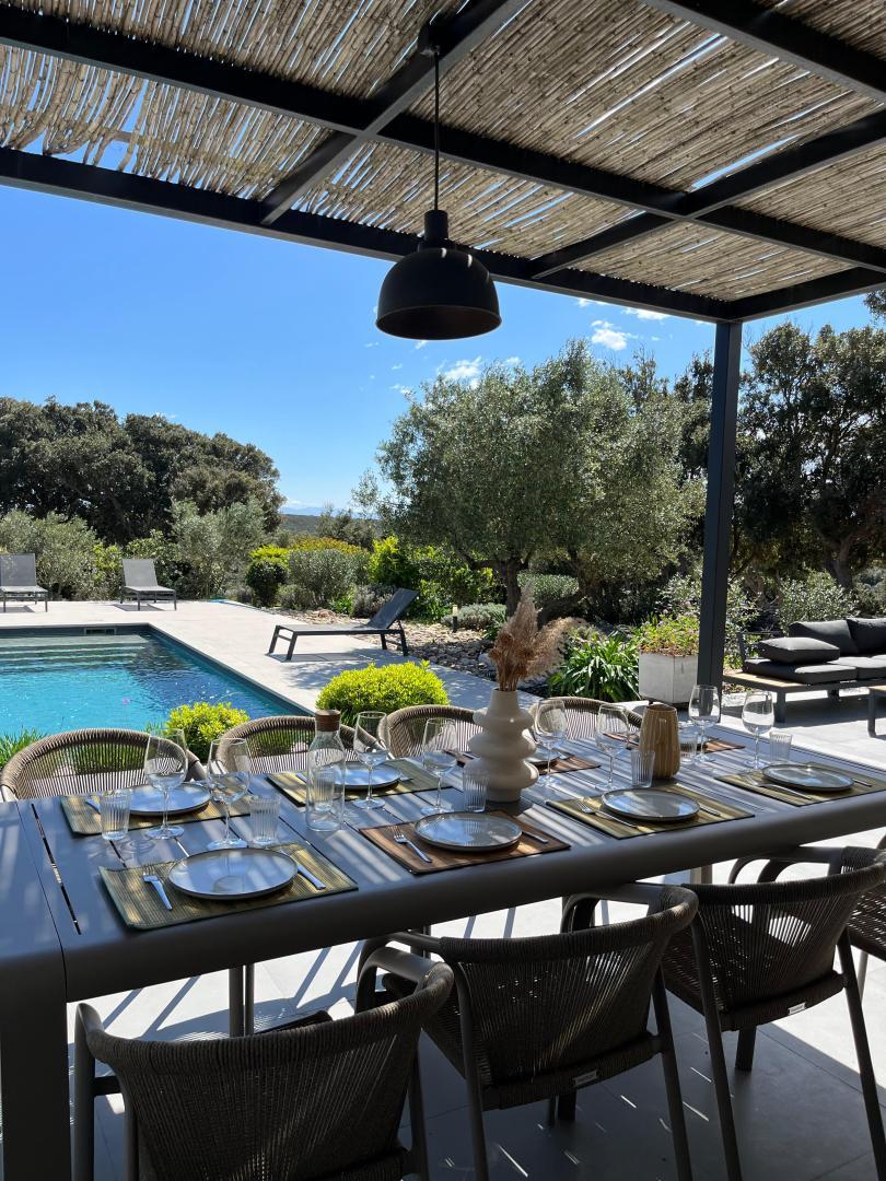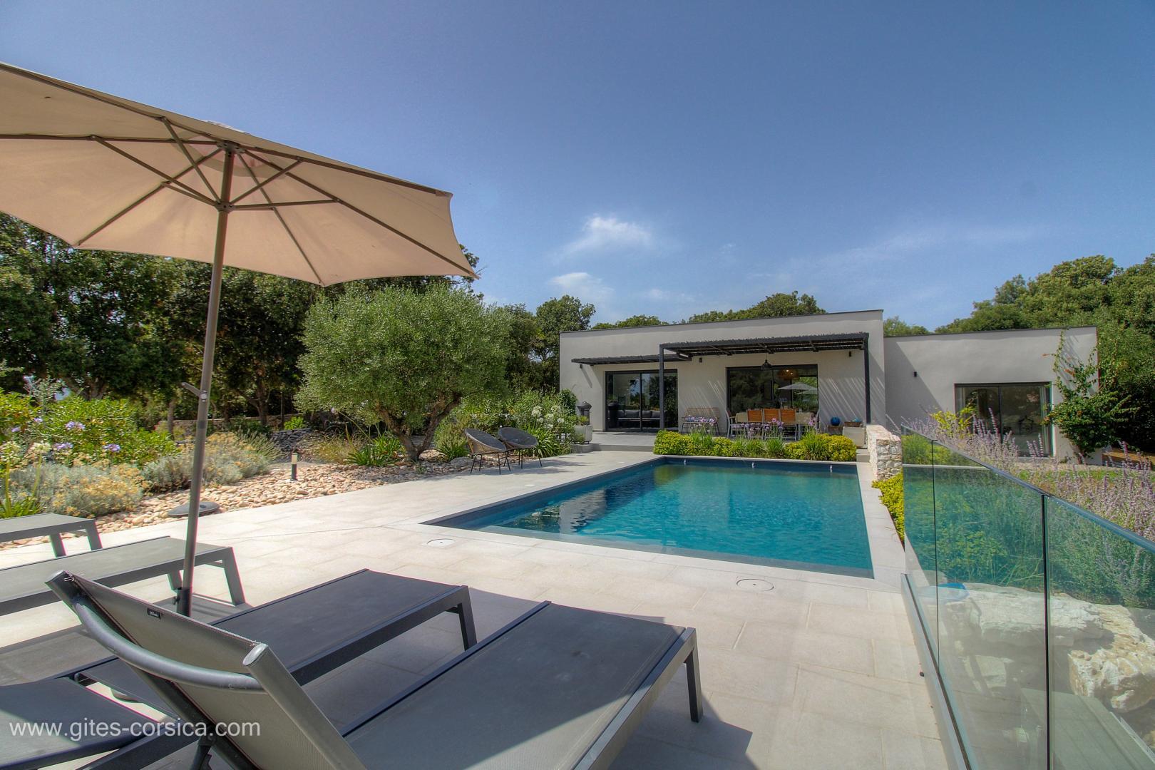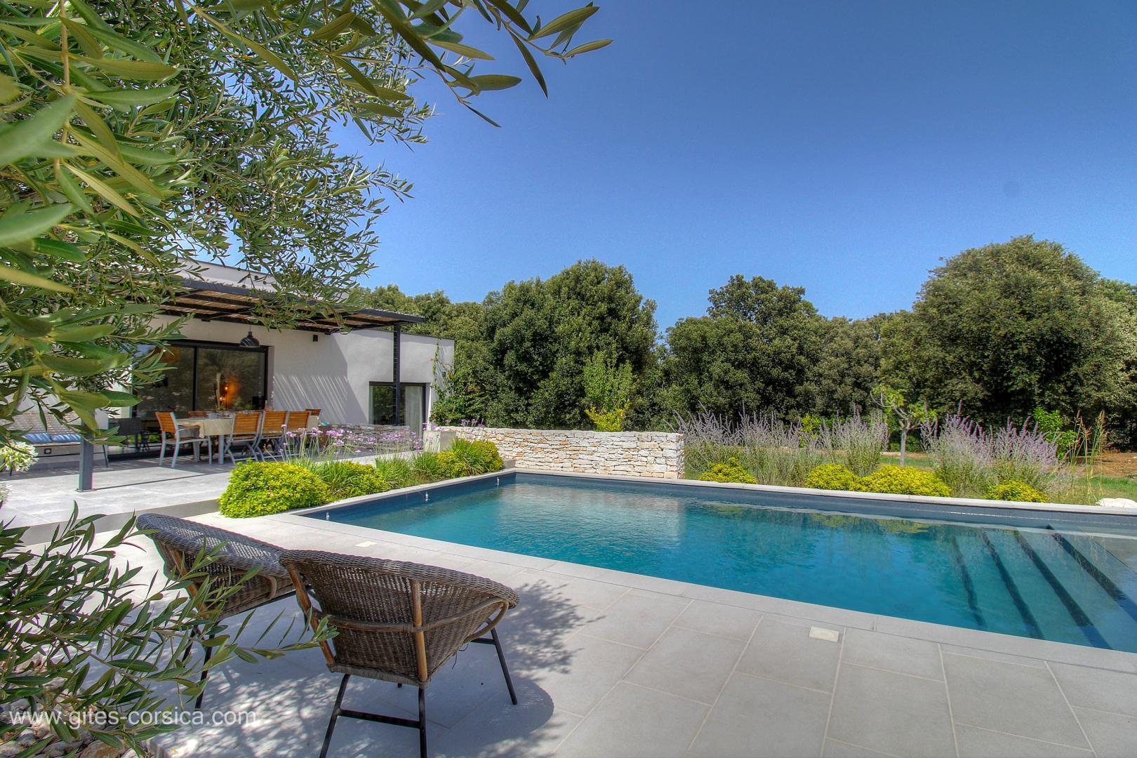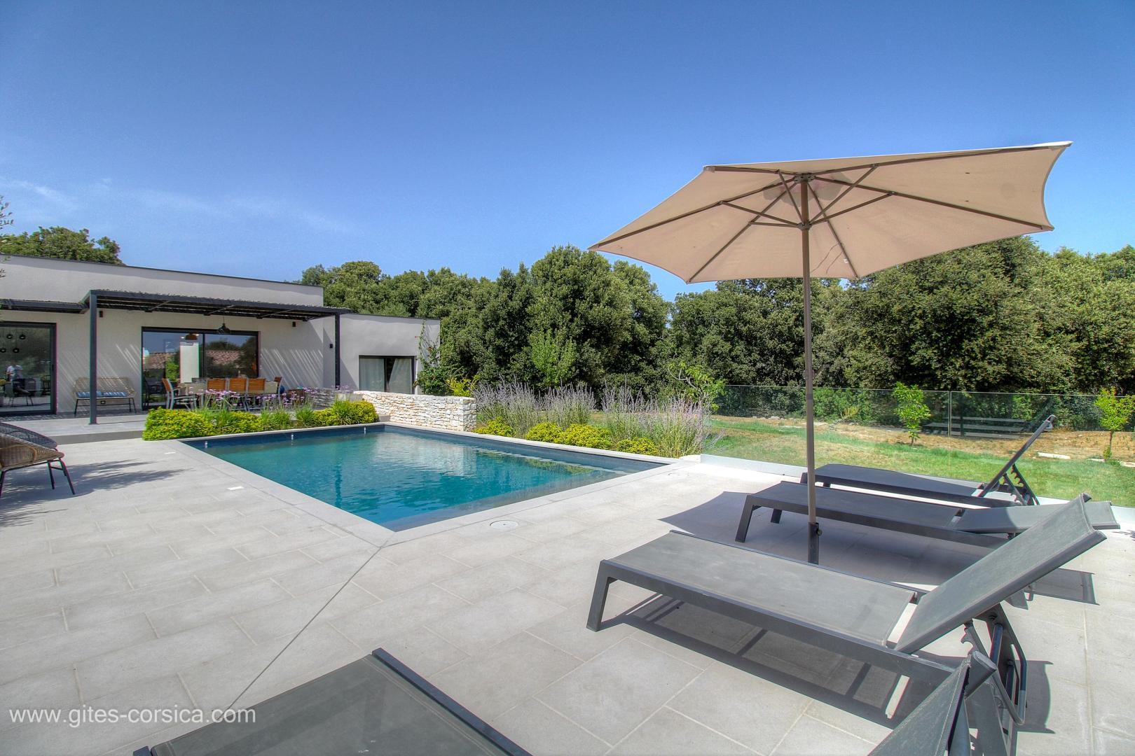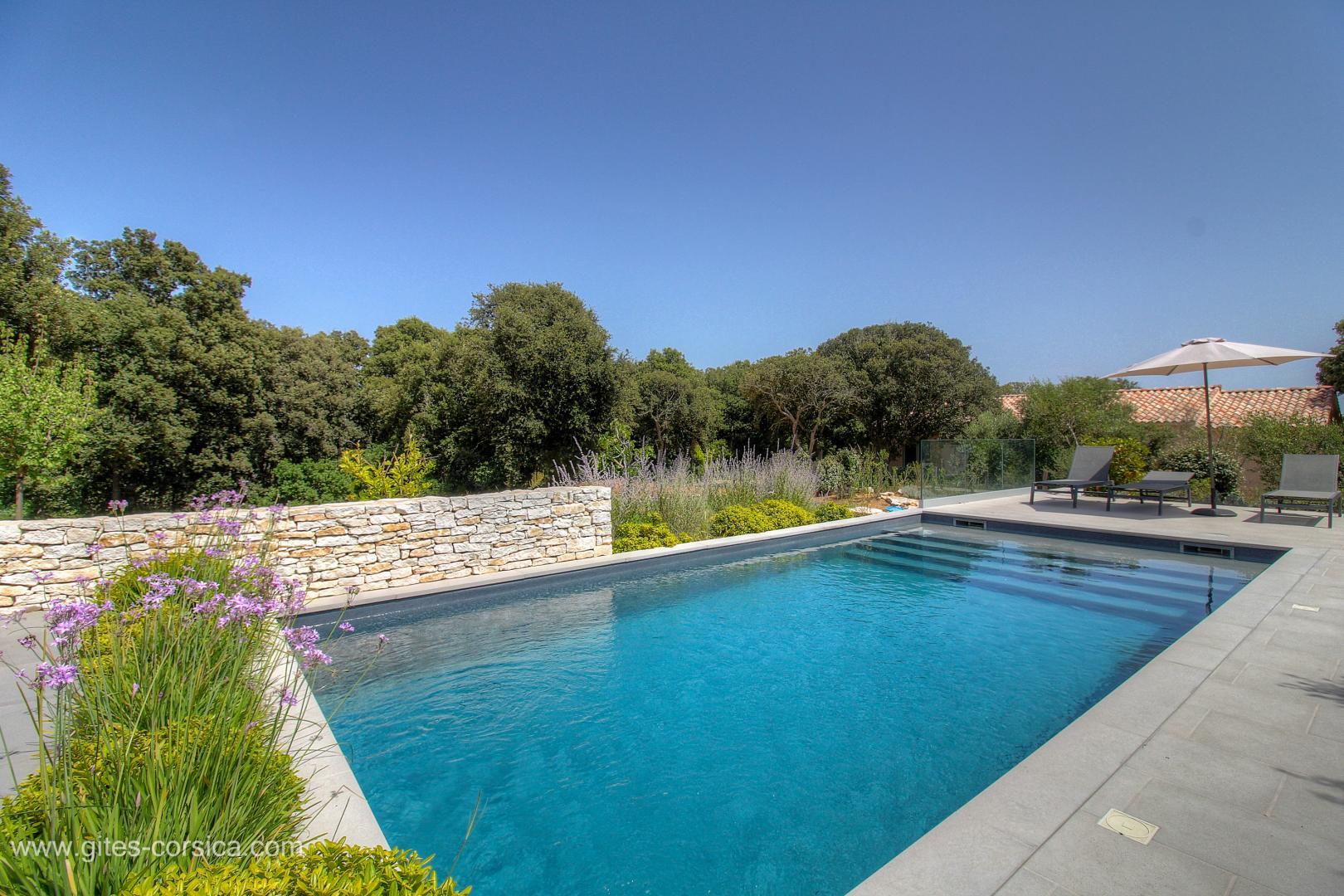 - Privater Pool, geöffnet von Mitte April bis Anfang November (8x6 m, Tiefe 1,6 m) und beheizt von Mitte Mai bis Ende Oktober, gesichert durch eine Schutzklappe. Der Pool steht ausschließlich den Mietern zur Verfügung.