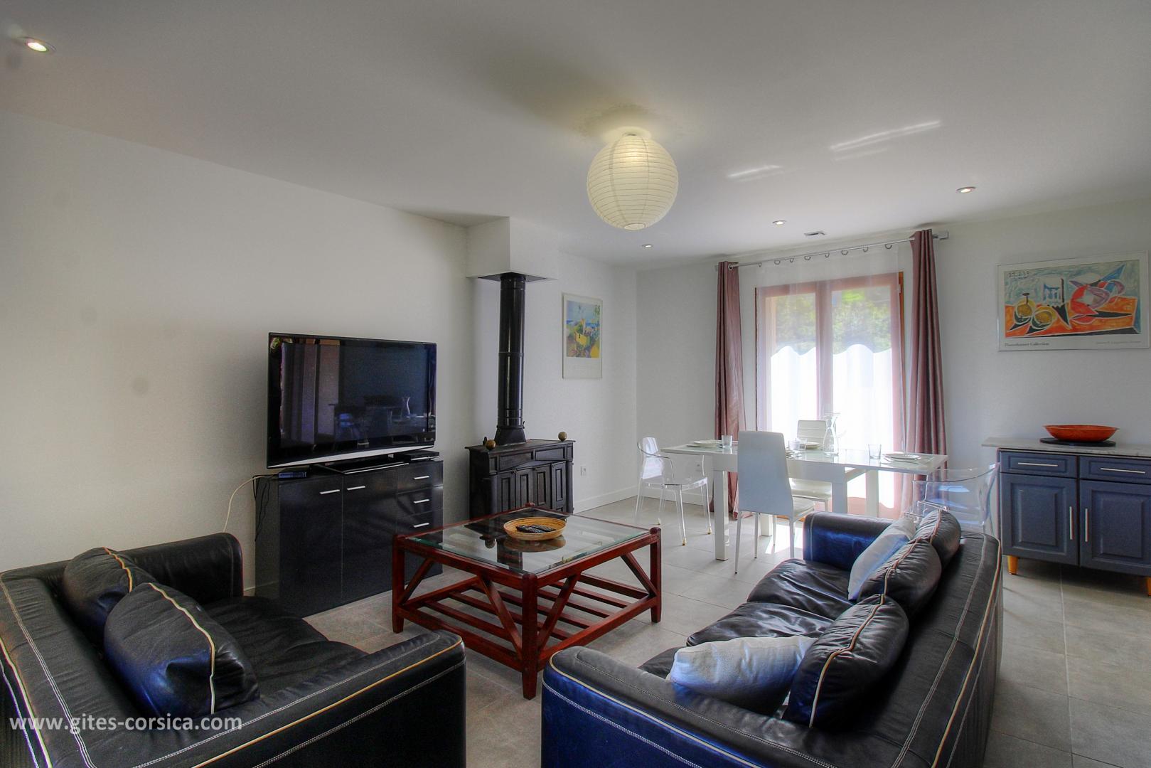 Dans cette agréable maison, parfaitement équipée et confortable, vous pourrez suivre le soleil au fil de la journée grâce à ses 2 terrasses couvertes qui vous offriront des apéritifs et repas divers sous le soleil corse. Télévision, Wifi, climatisation... tout y est.