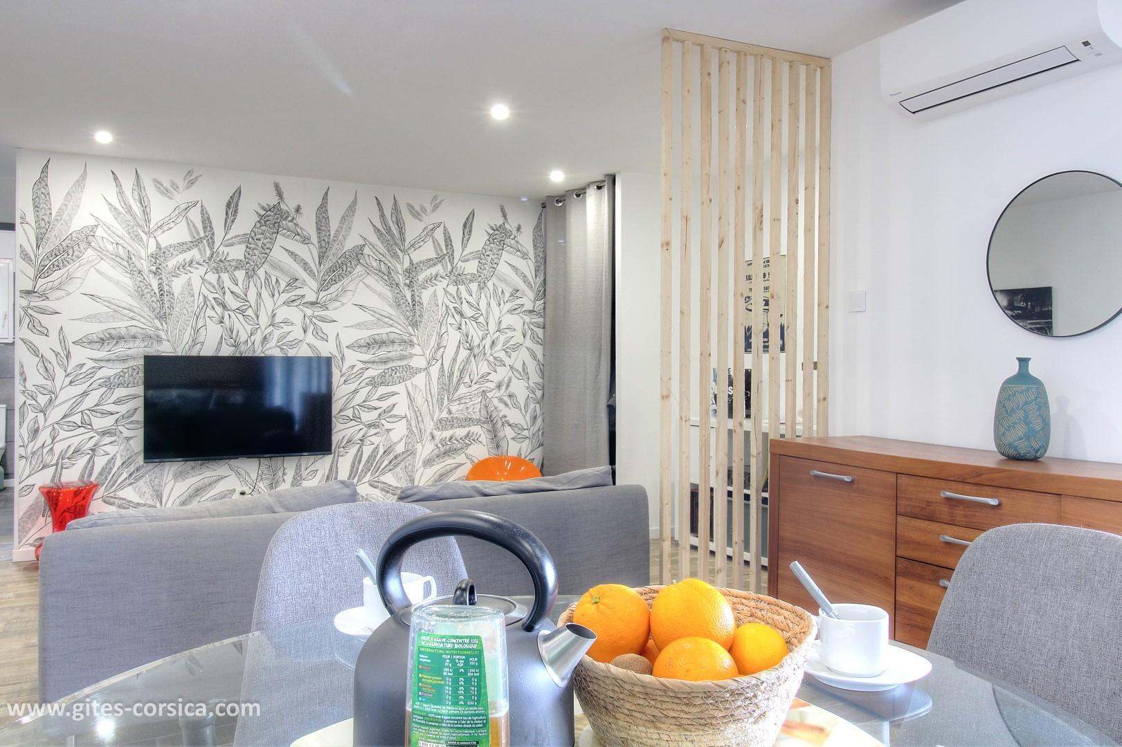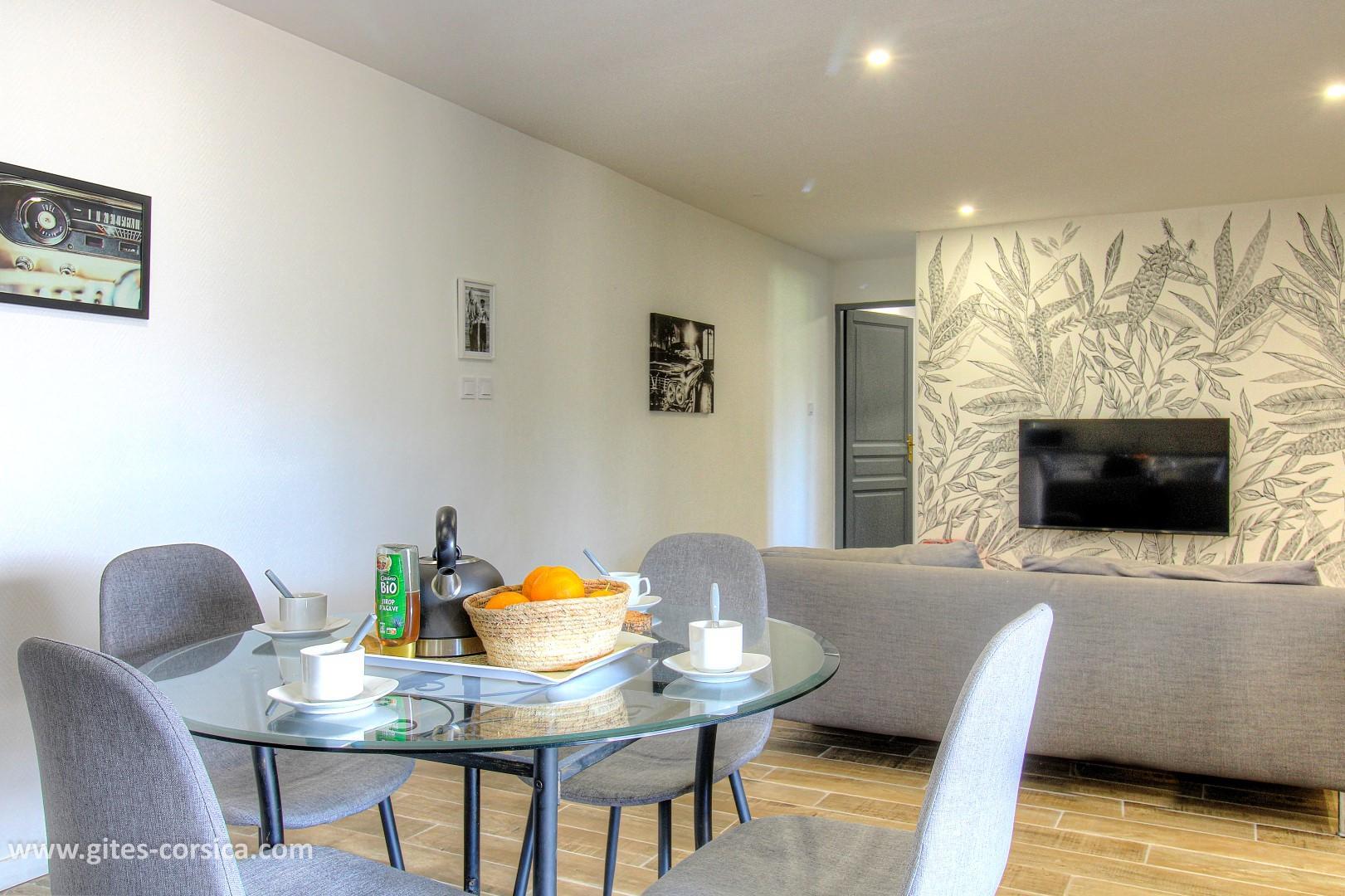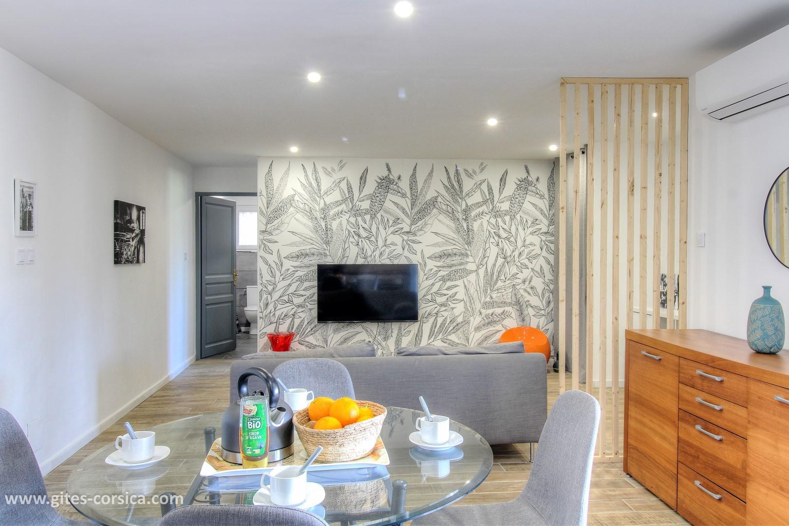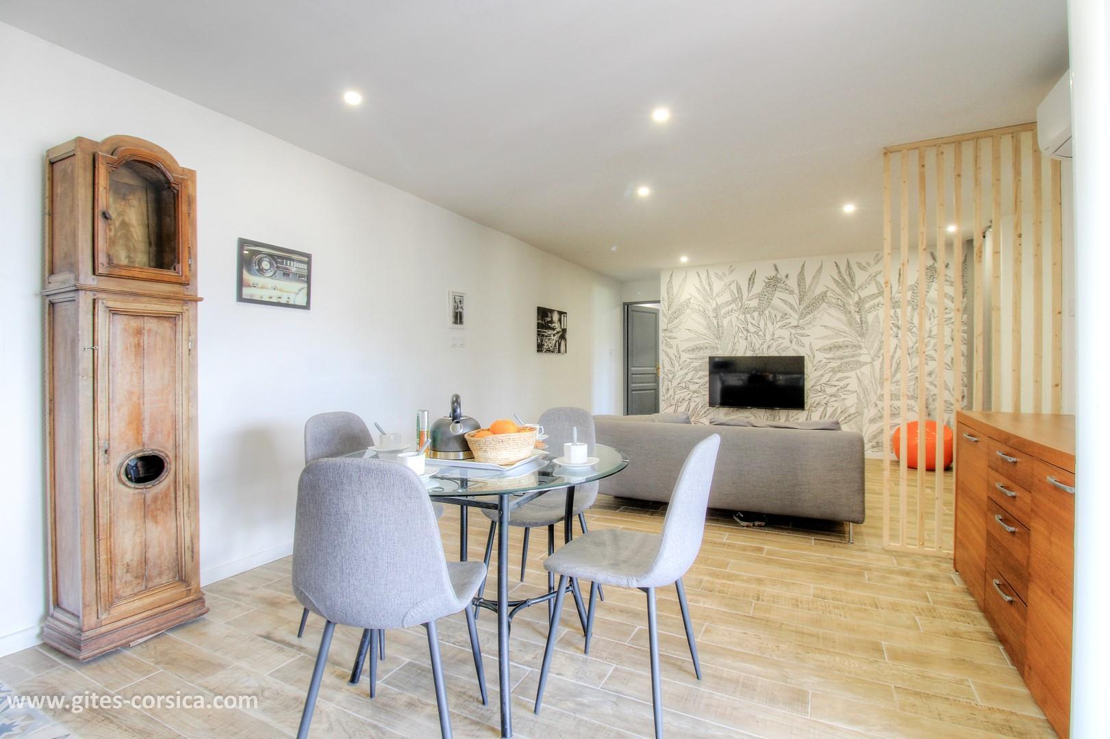 Auf dem Land, im Erdgeschoss der Villa der Eigentümer, auf einem Grundstück von 2237 m², Wohnung von 54 m². Sie setzt sich wie folgt zusammen: