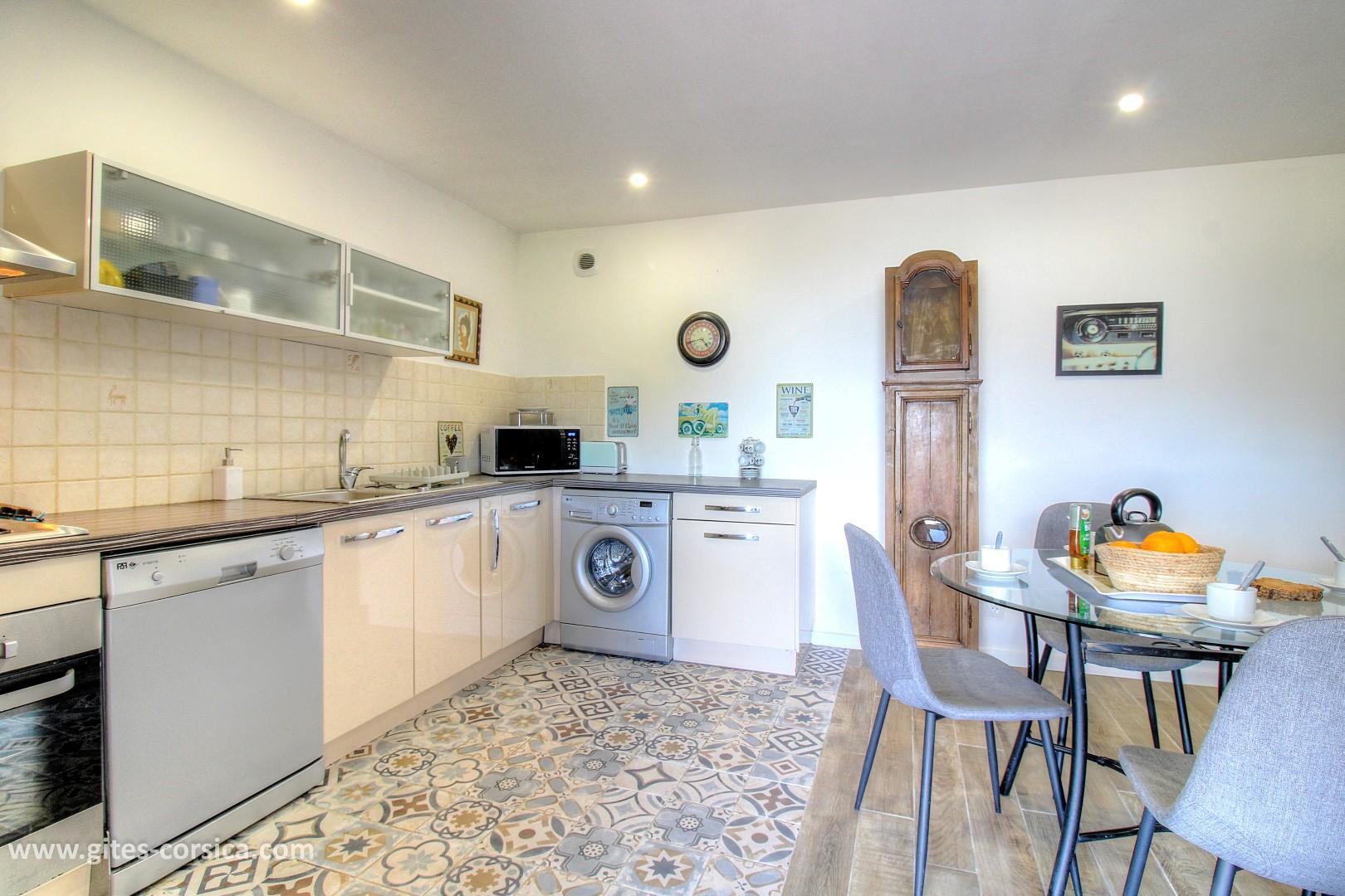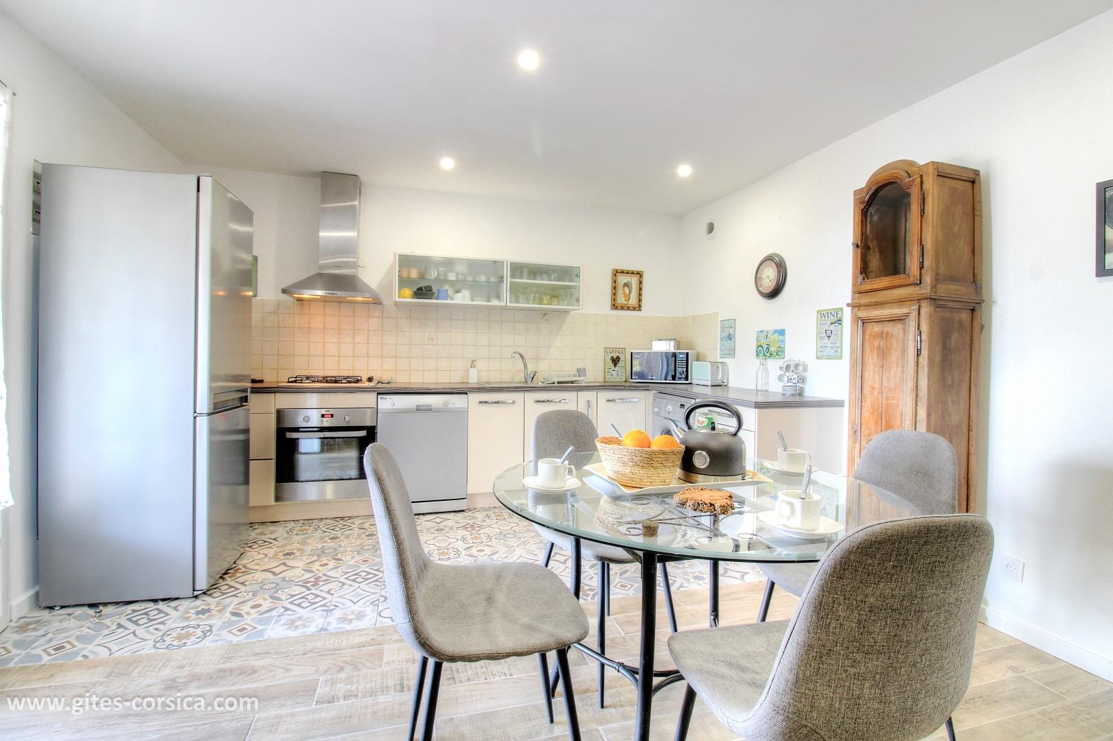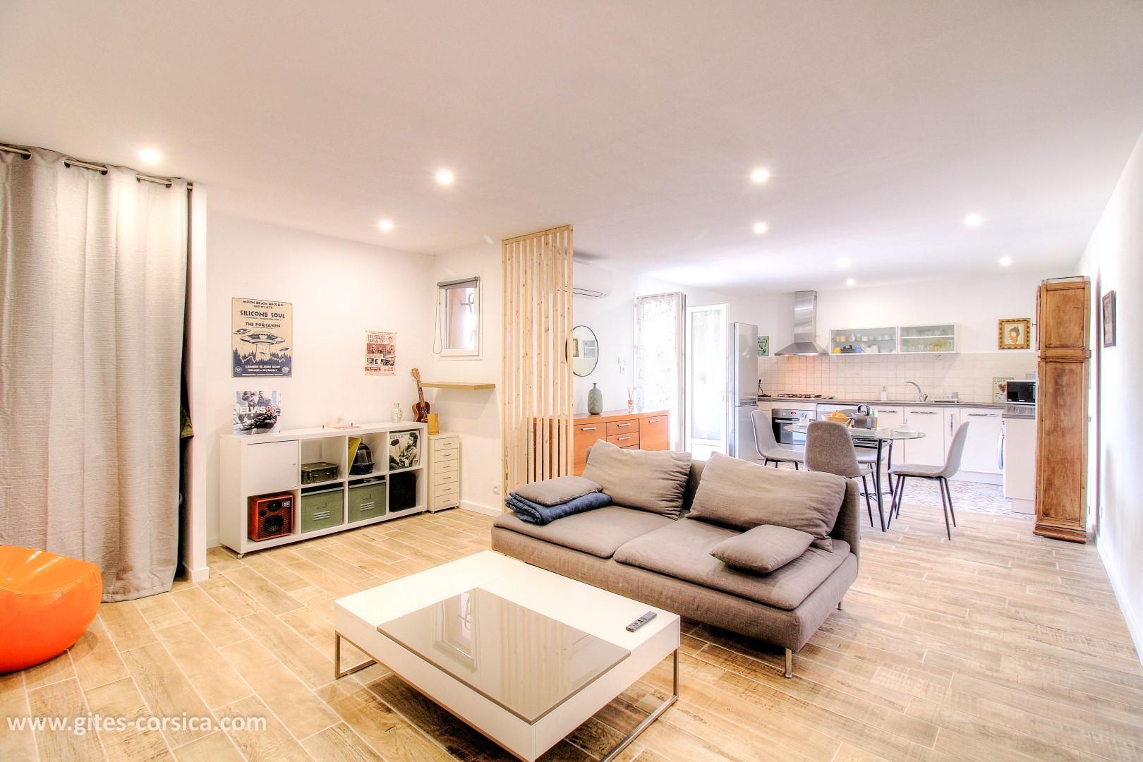 Auf dem Land, im Erdgeschoss der Villa der Eigentümer, auf einem Grundstück von 2237 m², Wohnung von 54 m². Sie setzt sich wie folgt zusammen: