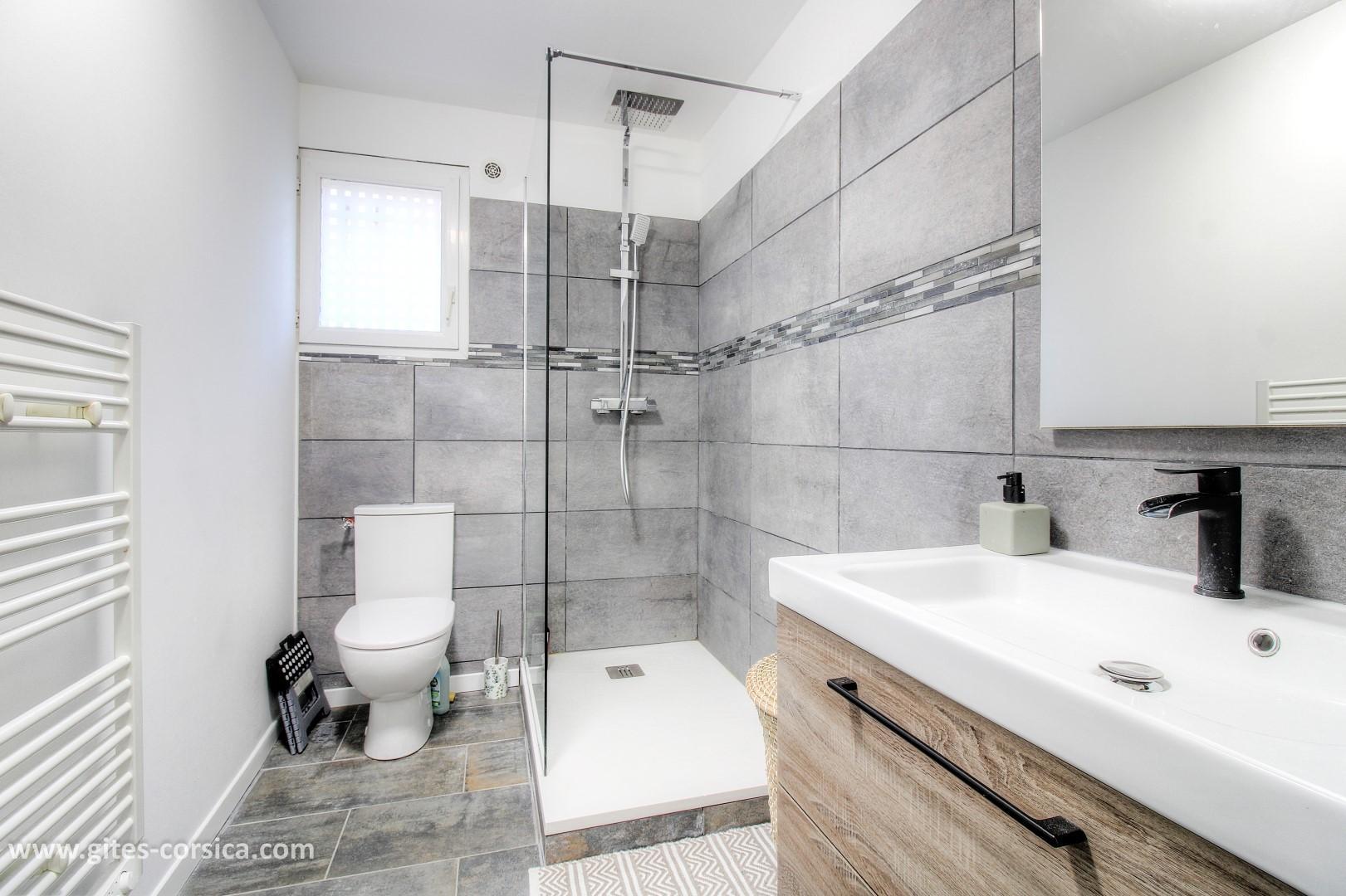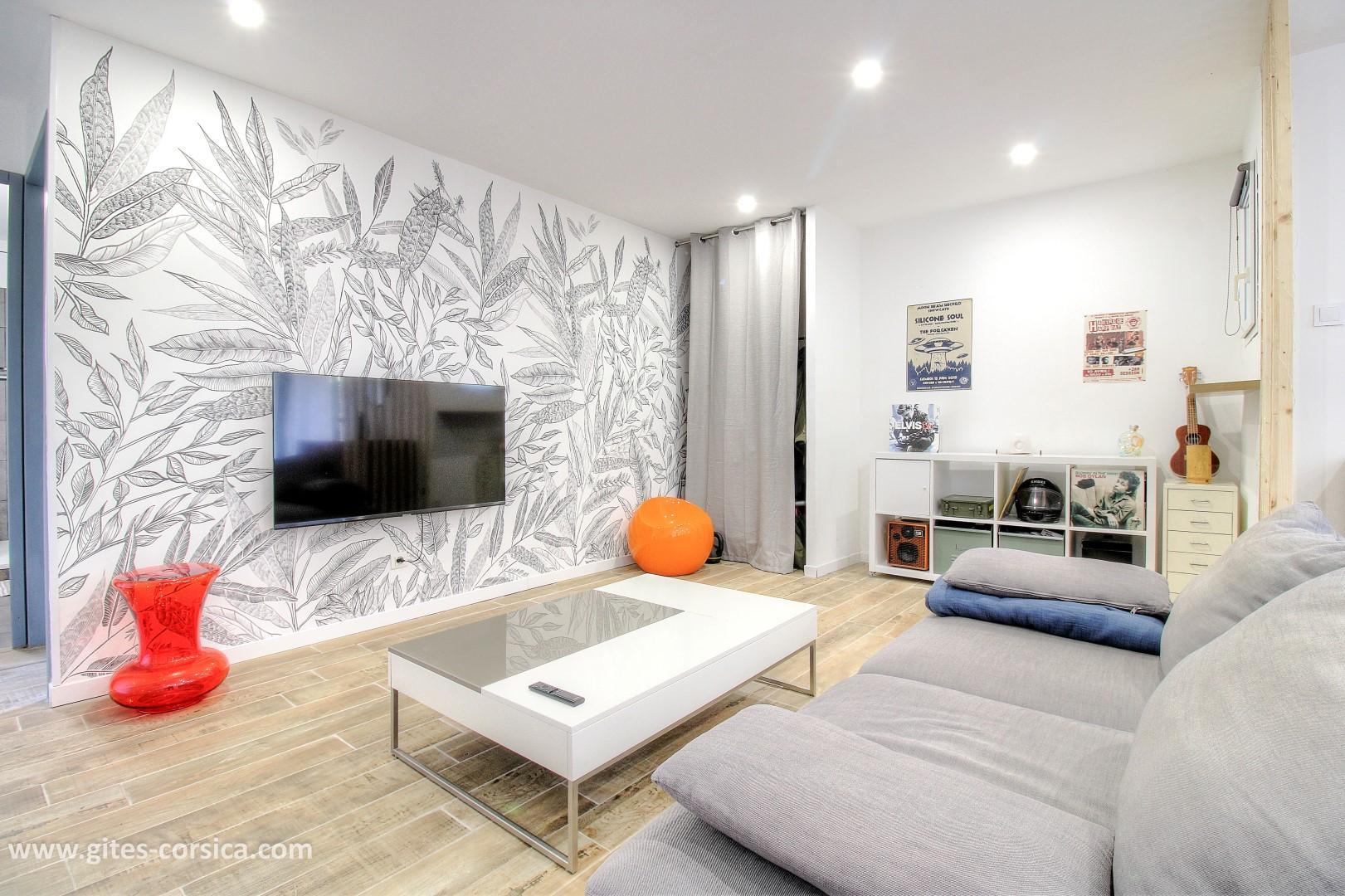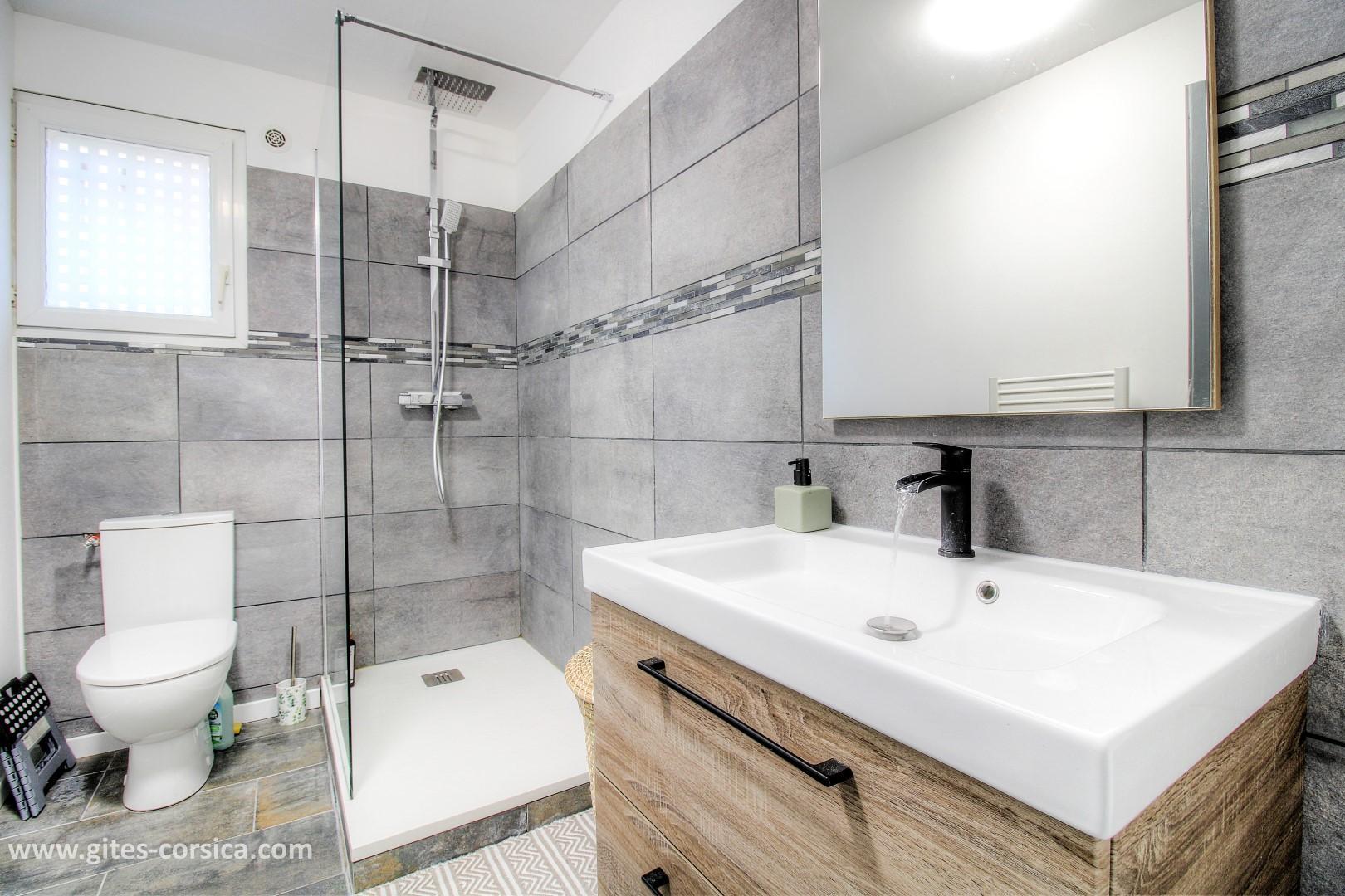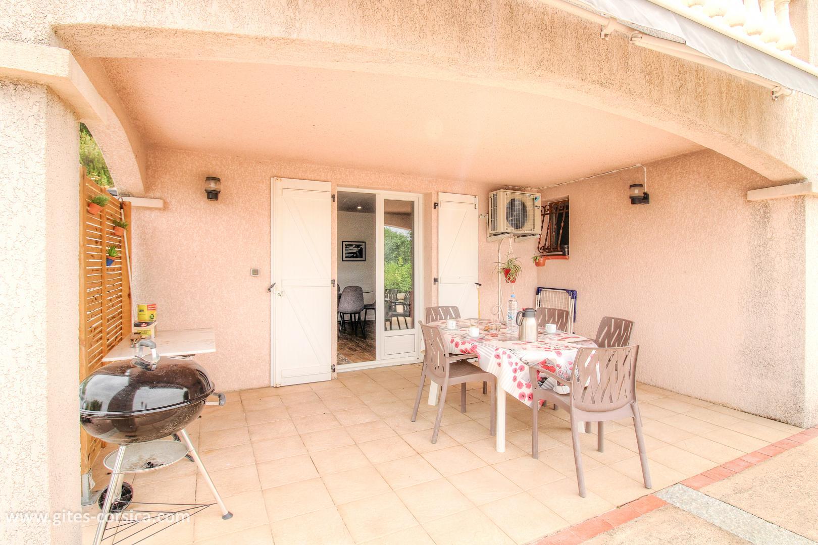 Auf dem Land, im Erdgeschoss der Villa der Eigentümer, auf einem Grundstück von 2237 m², Wohnung von 54 m². Sie setzt sich wie folgt zusammen: