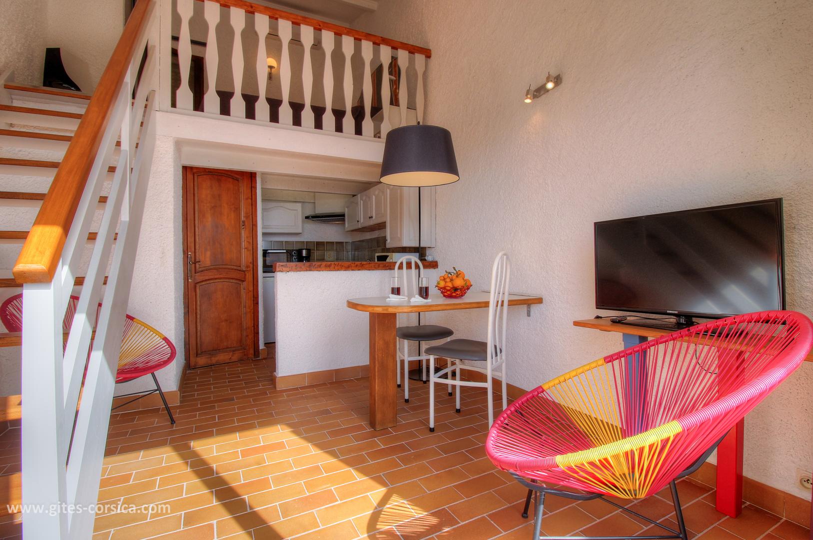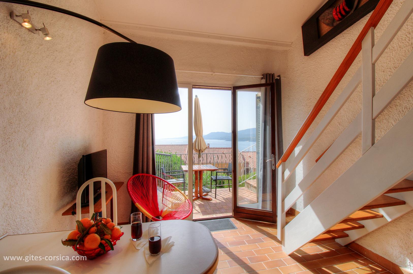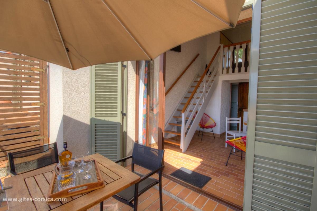 Blick auf den Golf von Valinco, in einer Unterteilung am Eingang von Propriano, Studio in einem Reihenhaus. Es steht aus : - Küche / Essbereich - Mezzanine mit 1 Bett 140 x 190 cm - Duschraum / WC Zugang zur Unterkunft erfolgt über eine Wendeltreppe. Diese Ferienhaus ist nicht sehr geeignet für die Aufnahme eines Babys (kein Platz für ein Kinderbett). - Gemeinsames umzäuntes Grundstück von 100 qm - Terrasse von 7 qm mit Meerblick - Gartenmöbel - Elektrisches Plancha - Klimaanlage - Private Waschmaschine im Raum in Erdgeschoss - Miniofen - Mikrowelle - Gefrierschrank - Fernseher - VLAN - Föhn