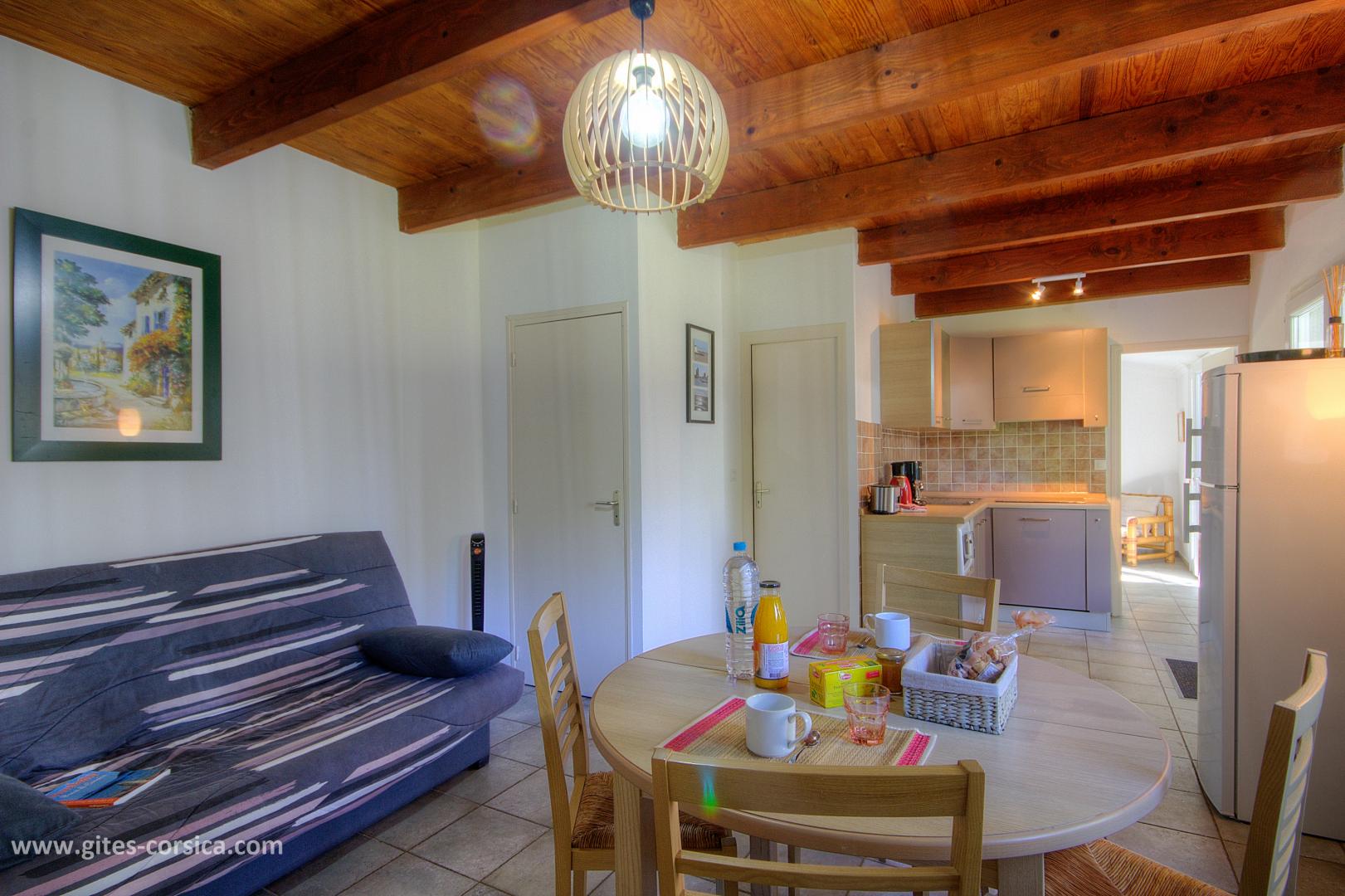 - Wohnzimmer/Küche mit 1 Schlafsofa für 2 Personen.