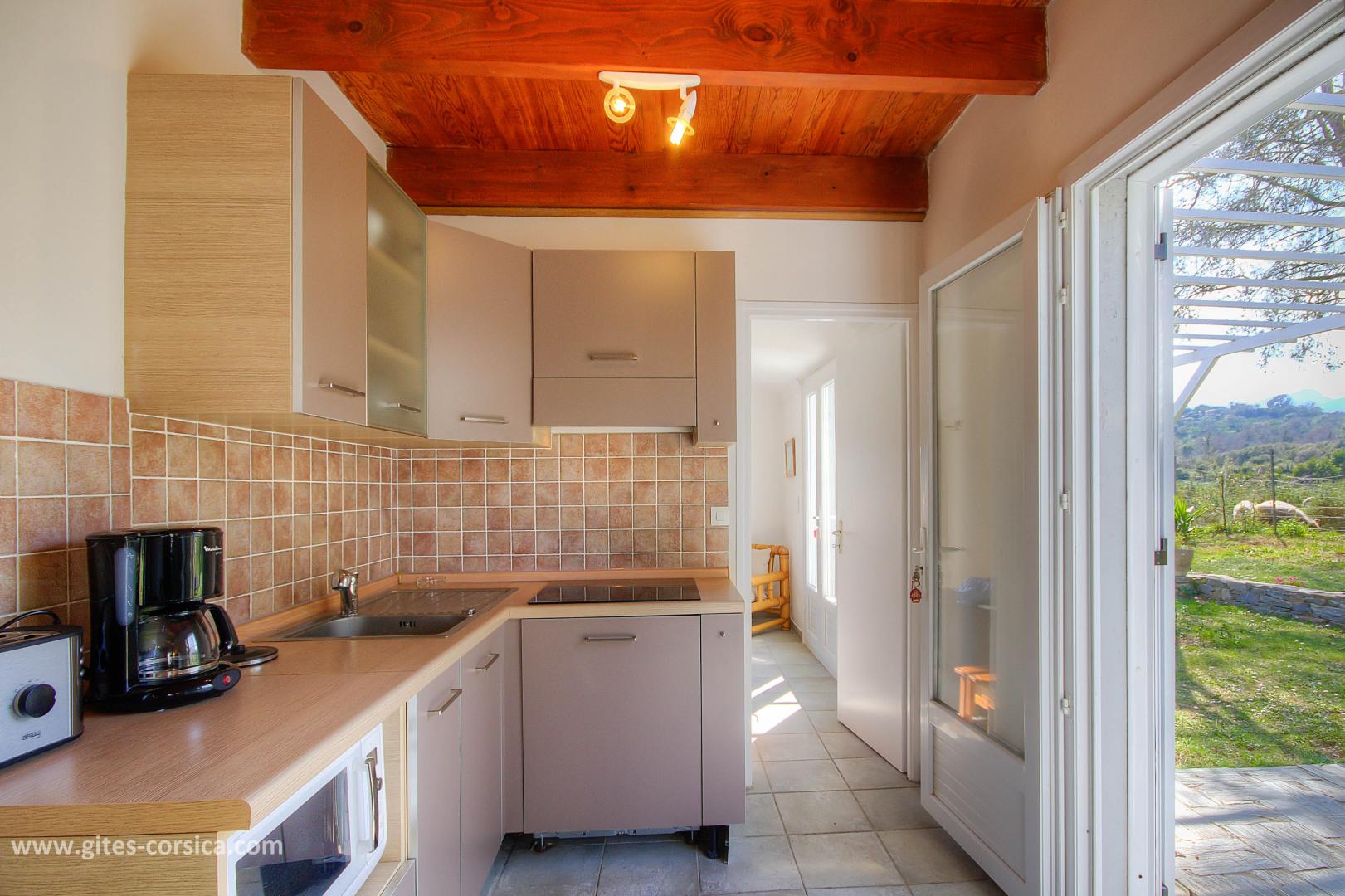 Auf dem Land, auf einem 16 Hektar großen Grundstück mit Bäumen, Ferienhaus (42 m²), das an das Haus der Eigentümer und an ein weiteres Ferienhaus (56081) angrenzt. Es setzt sich wie folgt zusammen: