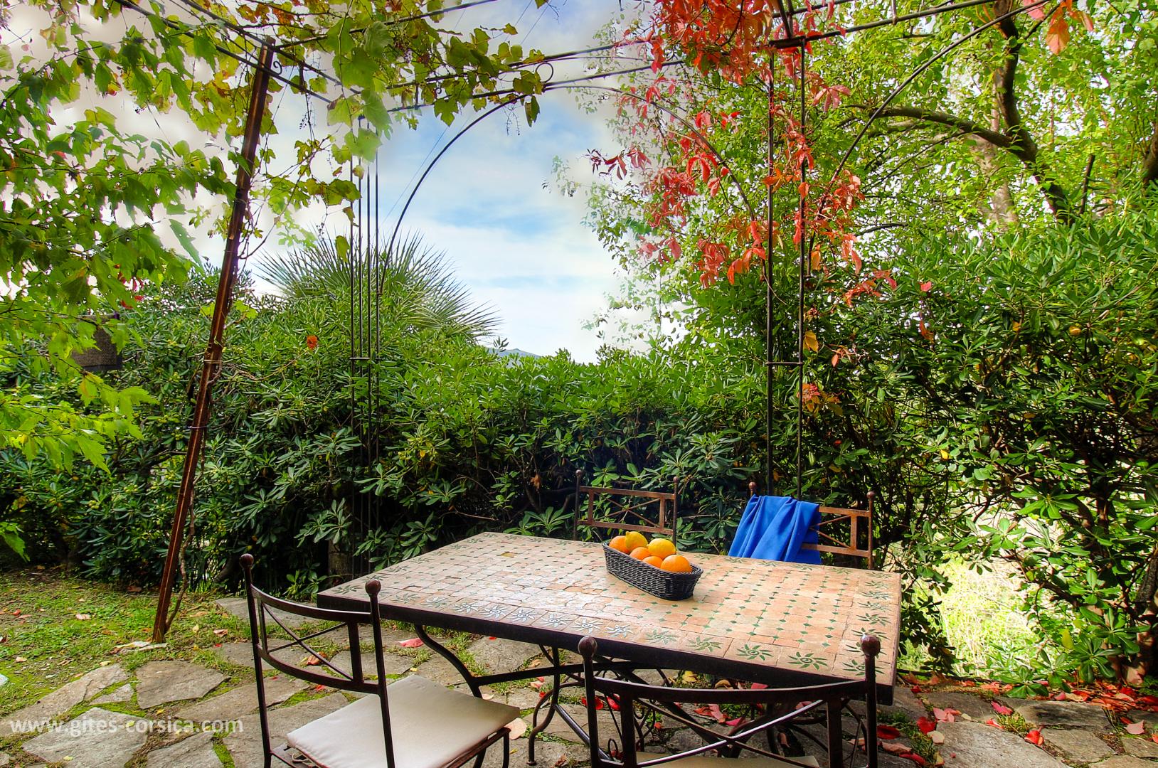 Auf einem bewaldeten Grundstück von 3000 qm unterhalb des Dorfes, Ferienhaus von 35 qm im Erdgeschoss eines unabhängigen Hauses mit einem anderen Ferienhaus im Obergeschoss und in der Nähe der Hausbesitzer (Zugang über 2 Stufen). Es setzt sich wie folgt zusammen :
