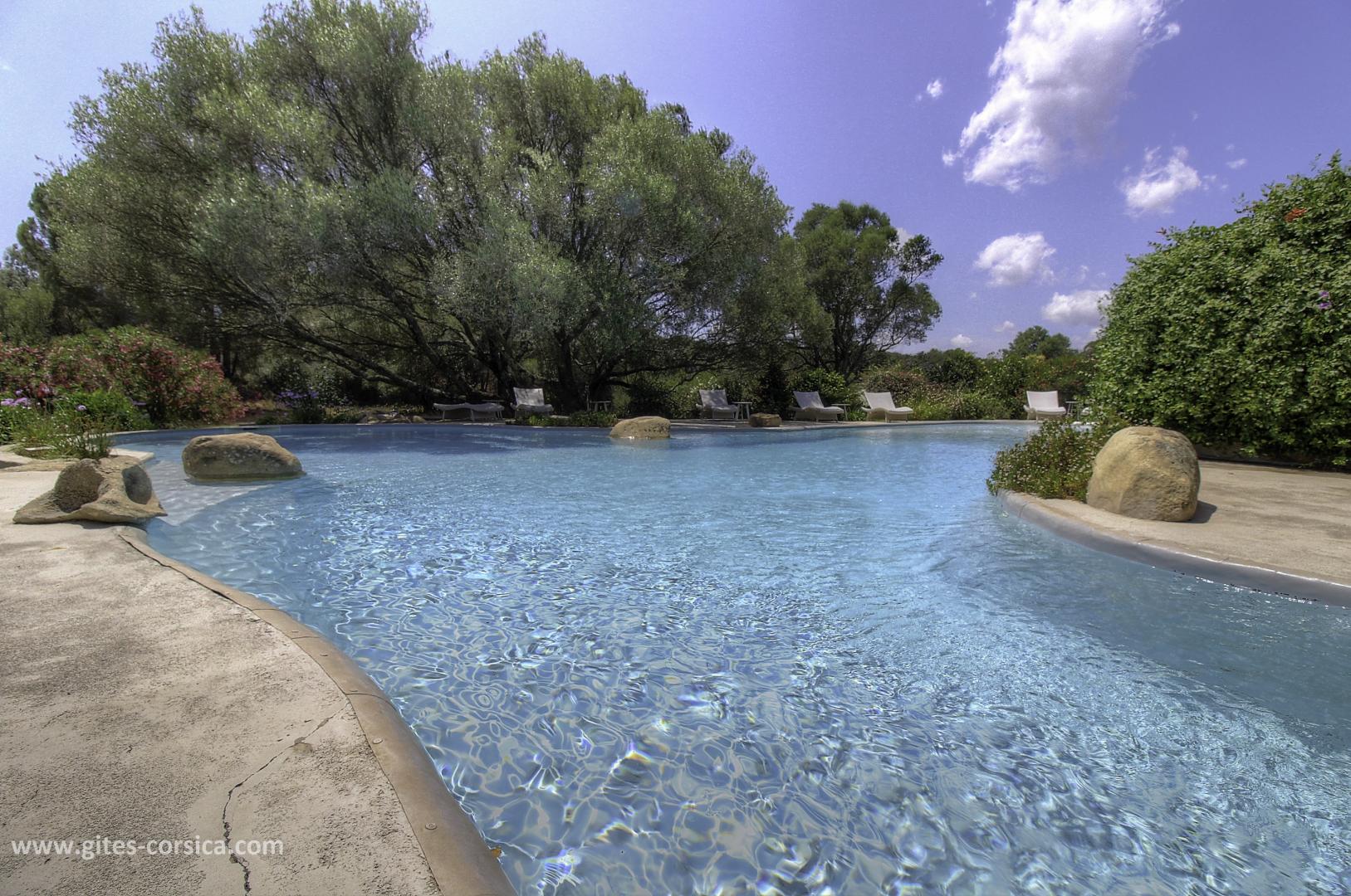 - 90 m² großes Gemeinschaftspool mit Planschbecken, das während der Mietzeit geöffnet ist und vom 06/04 bis 01/06 und vom 14/09 bis 09/11 beheizt wird und durch eine Schutzbarriere gesichert ist. Der Zugang zum Pool ist nur den im Mietvertrag vorgesehenen Personen gestattet.