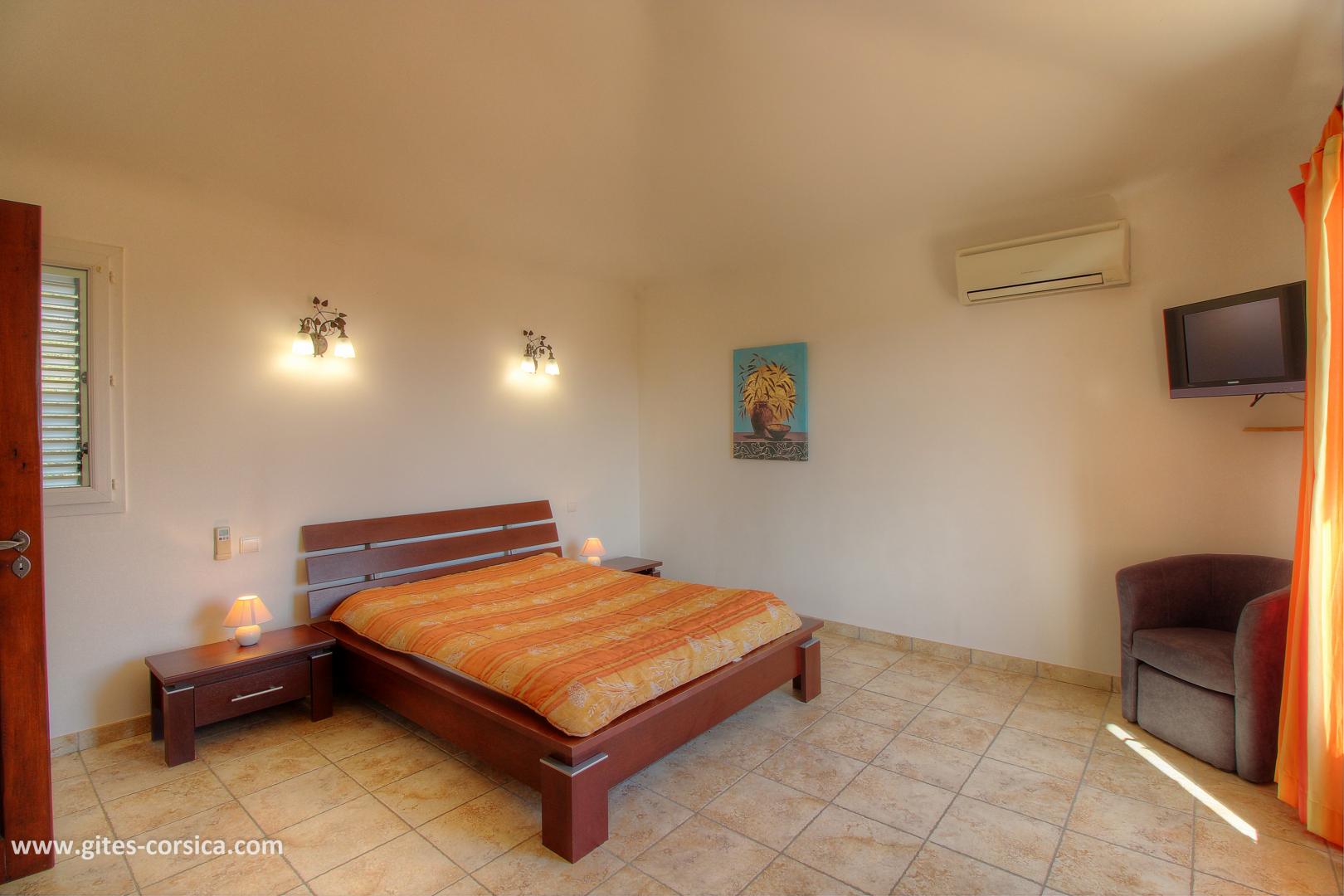 - 1 Zimmer mit 1 Bett 140x190 cm mit eigener Terrasse.