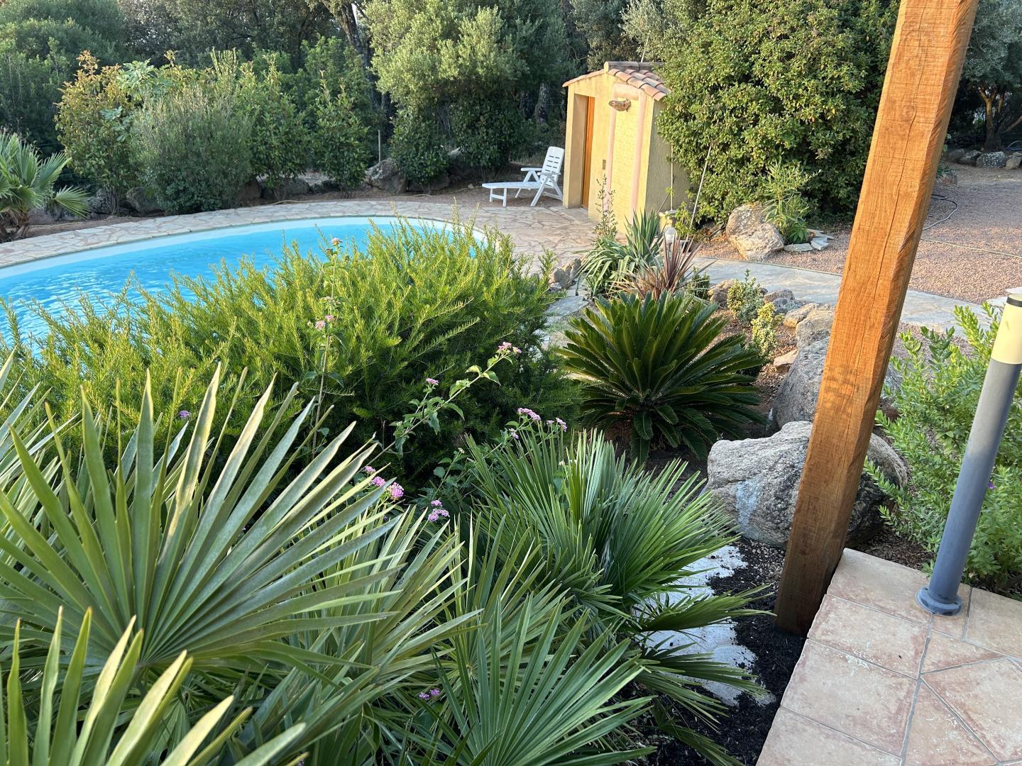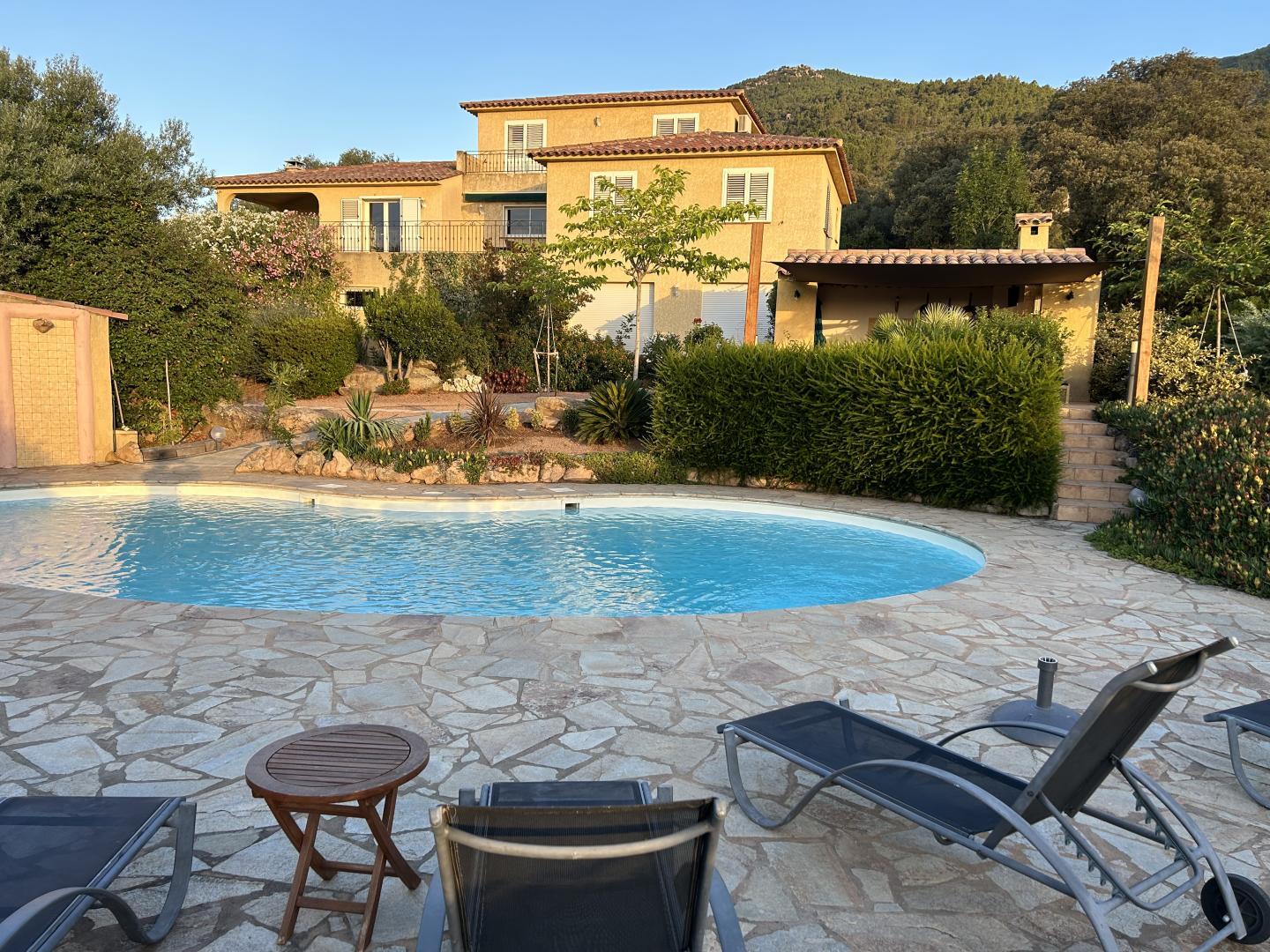 - Privater Pool (10,7x3,5x4,5 Meter, Tiefe: 1,2 bis 1,9 Meter), geöffnet von Anfang Mai bis Ende September, gesichert durch eine Alarmanlage. Der Pool steht ausschließlich den Mietern zur Verfügung.