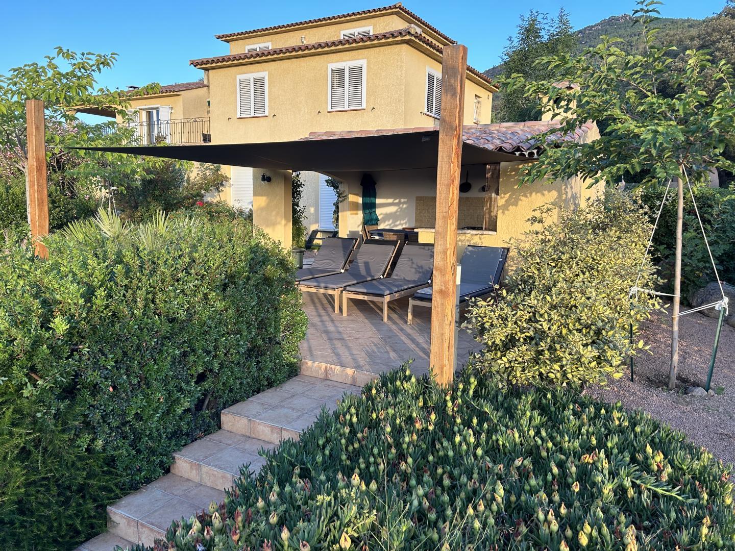 Beschreibung : Einzelhaus, Garten, Privatparkplatz, Privates Bad, Privater Duschraum, Geschlossenes Grundstück, Terrasse oder Balkon, Meerblick, Private Toiletten, Separates WC