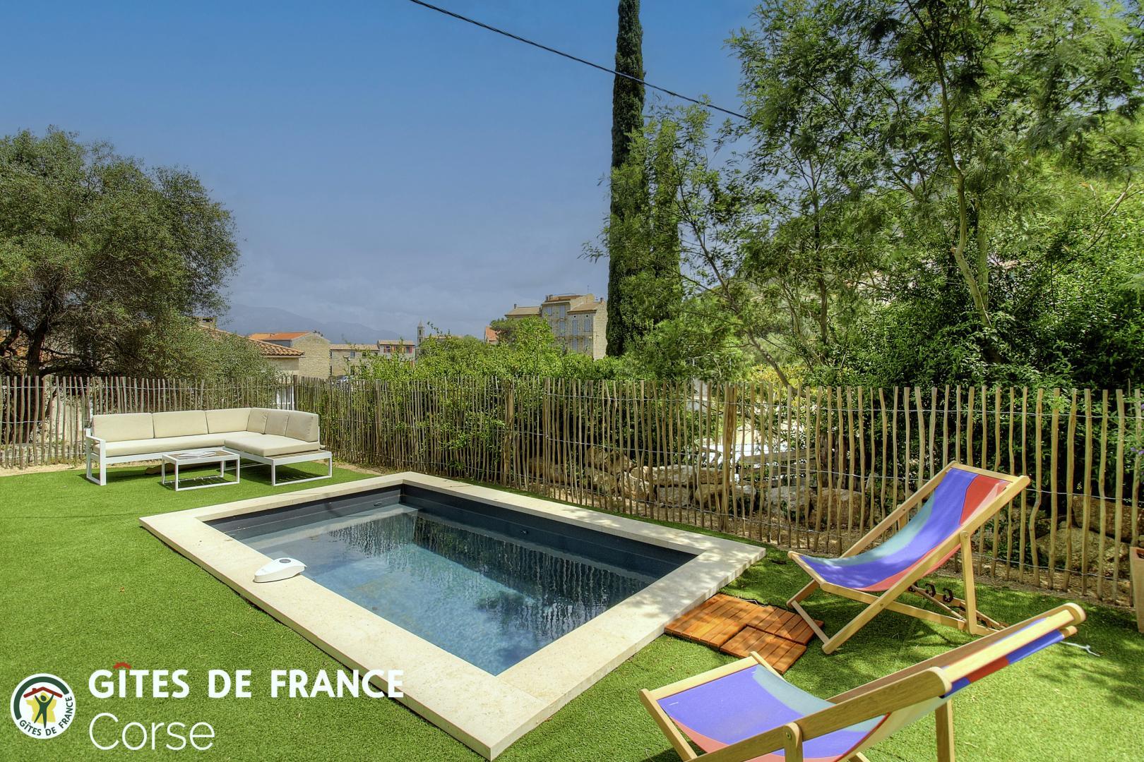 - Pool 2.5 m x 3.8 m Tiefe 1.47m, gesichert durch eine Alarmanlage.