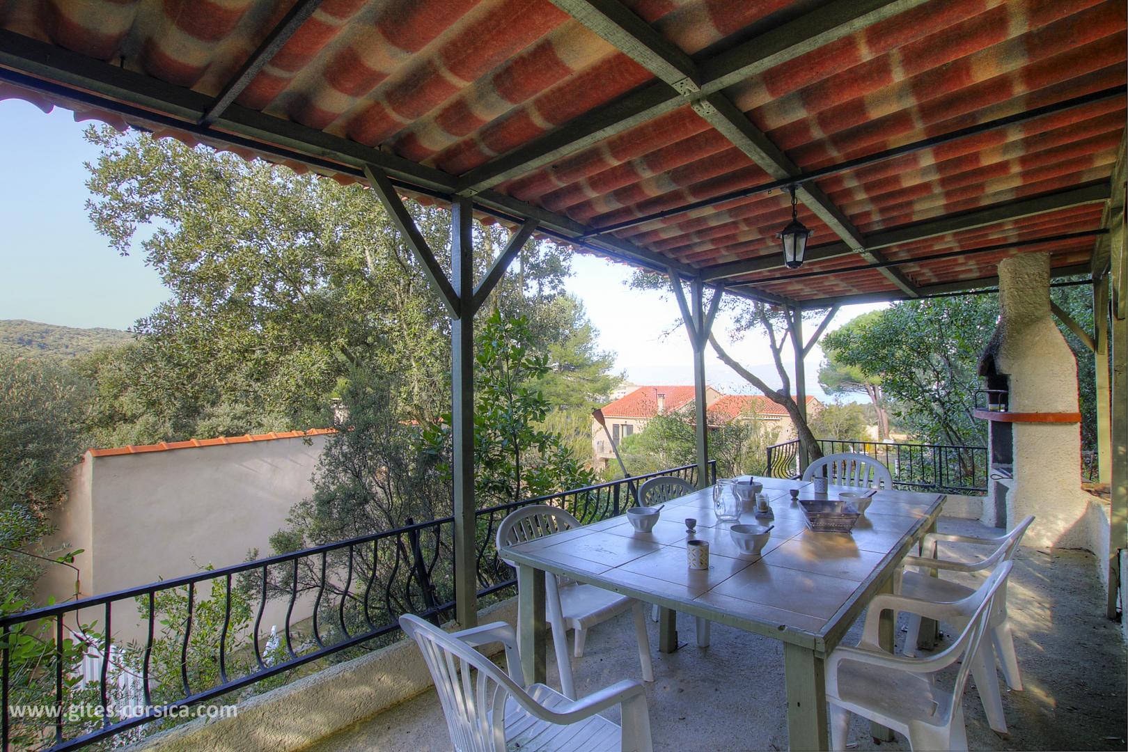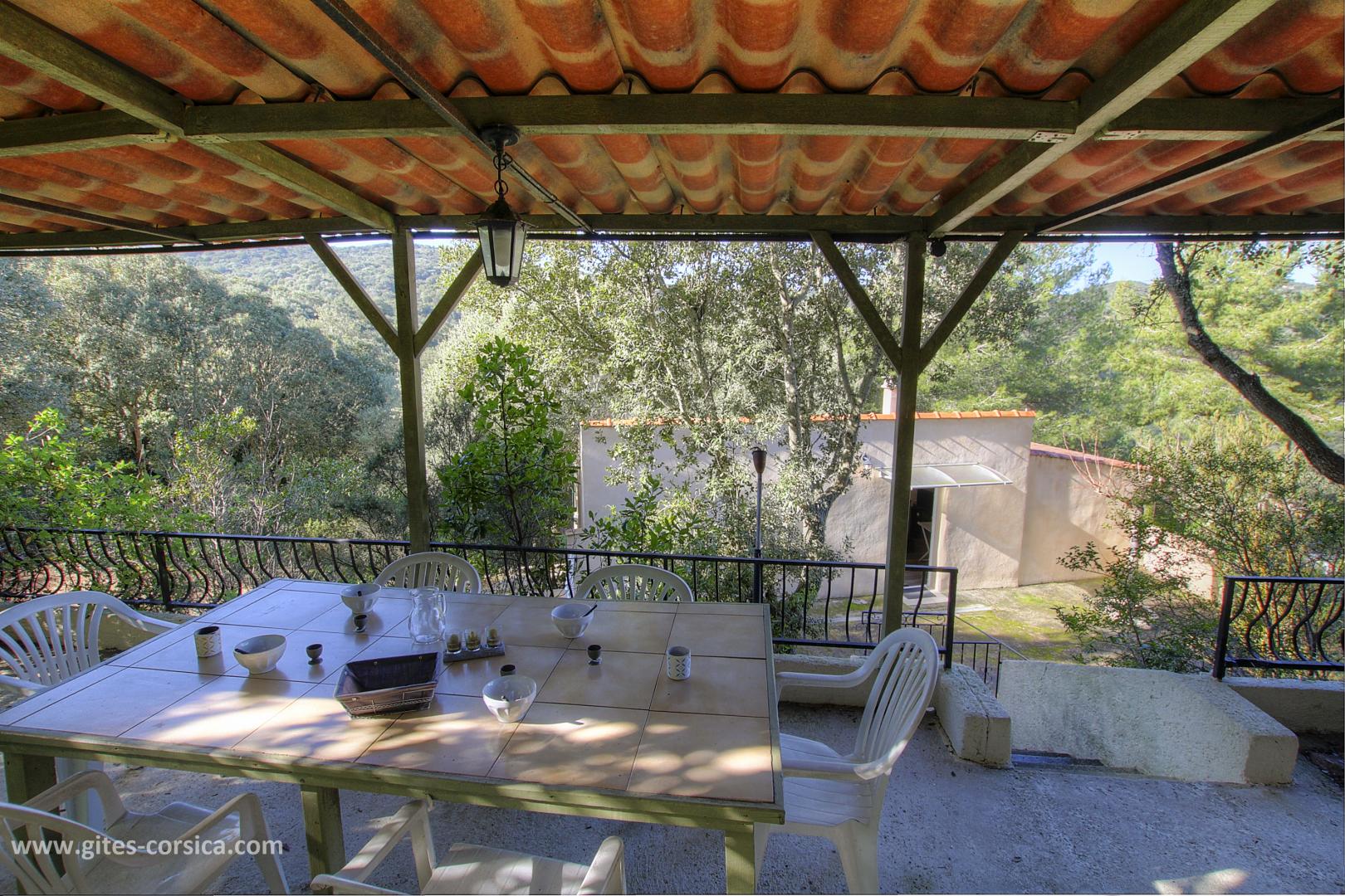 Depuis la terrasse abritée, vous pourrez entre-apercevoir la mer et surtout vous relaxer au cœur d'une nature préservée.