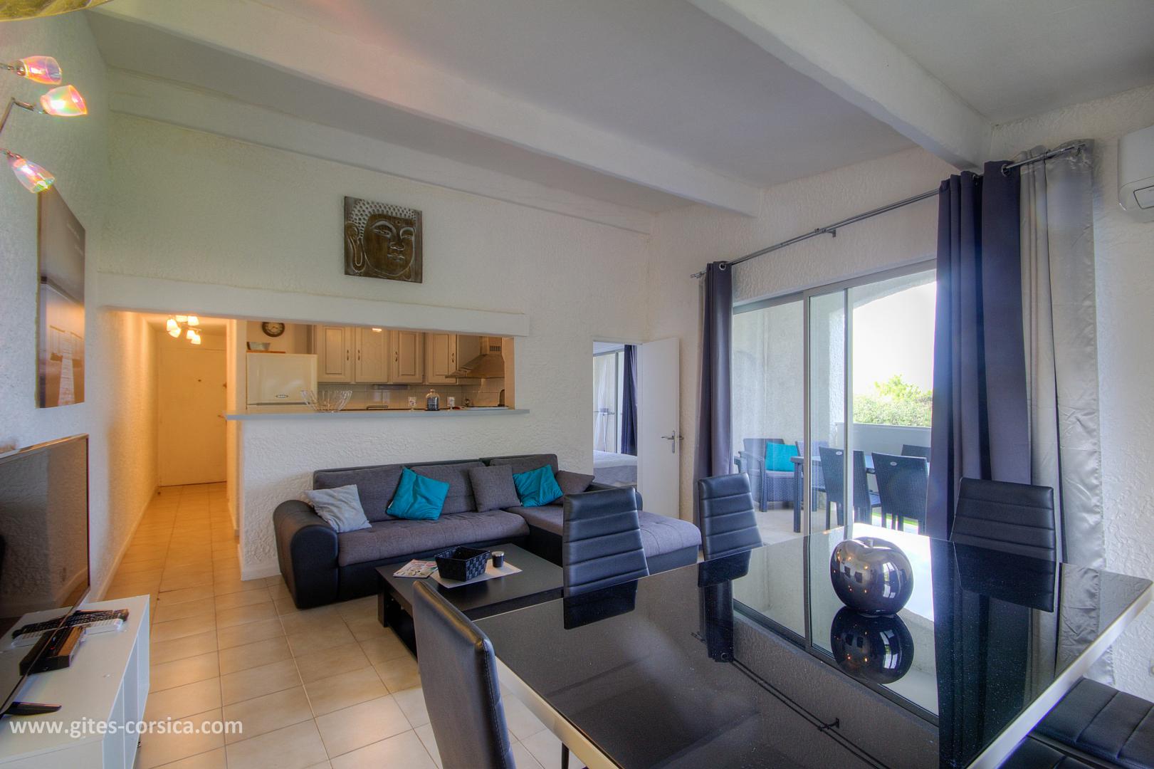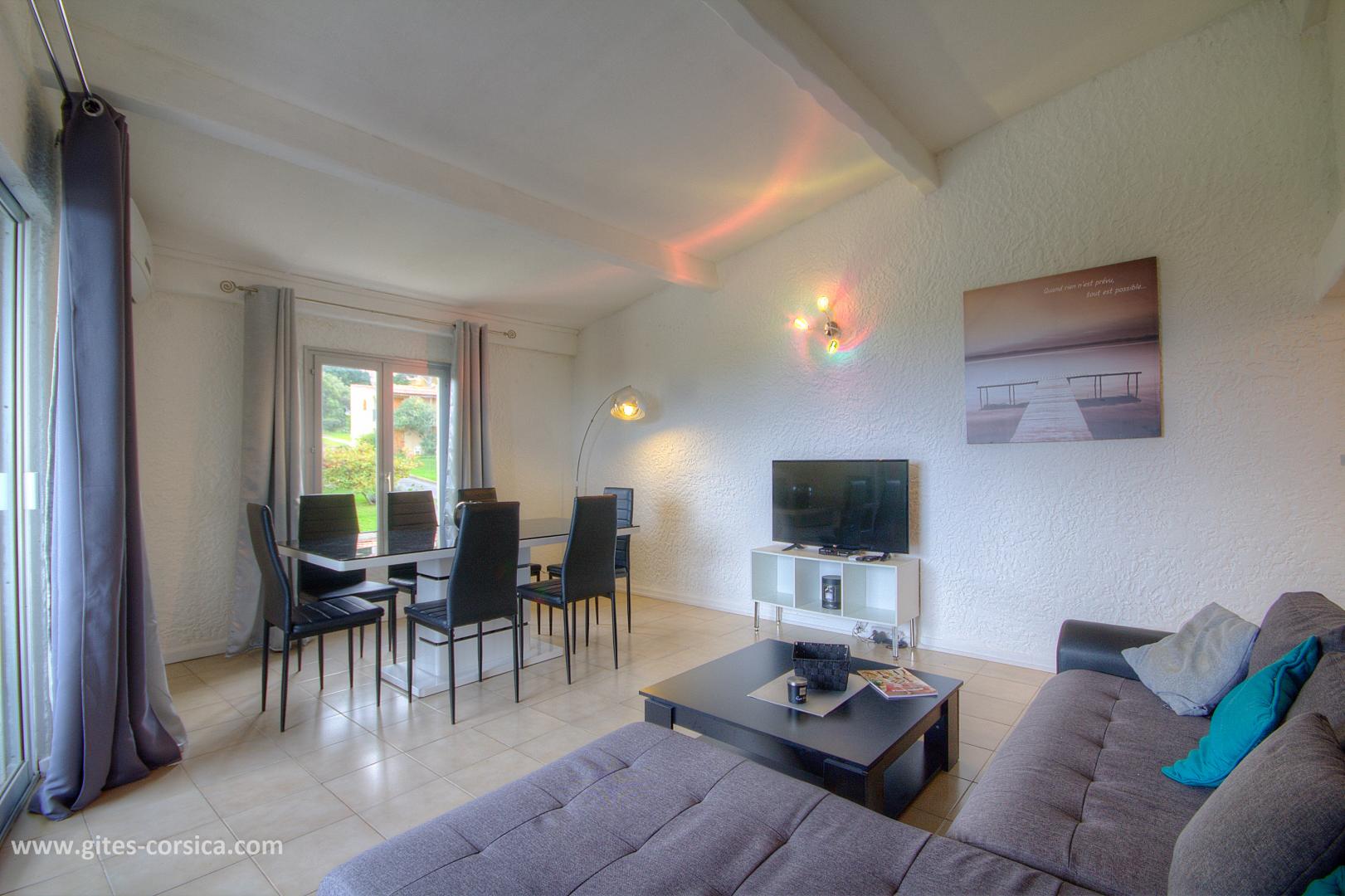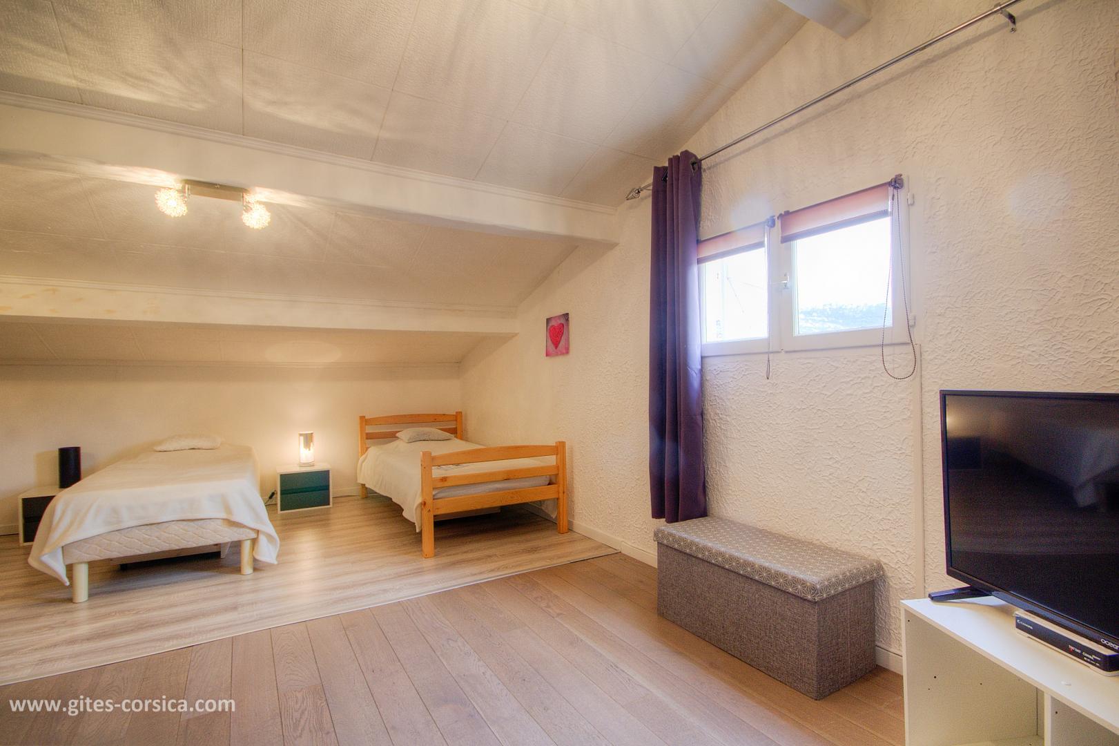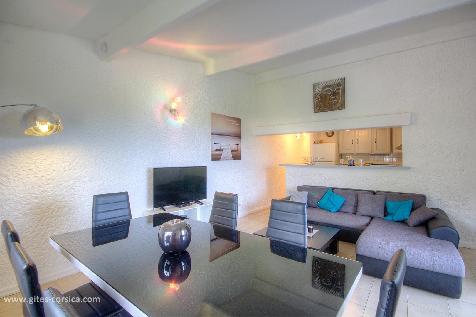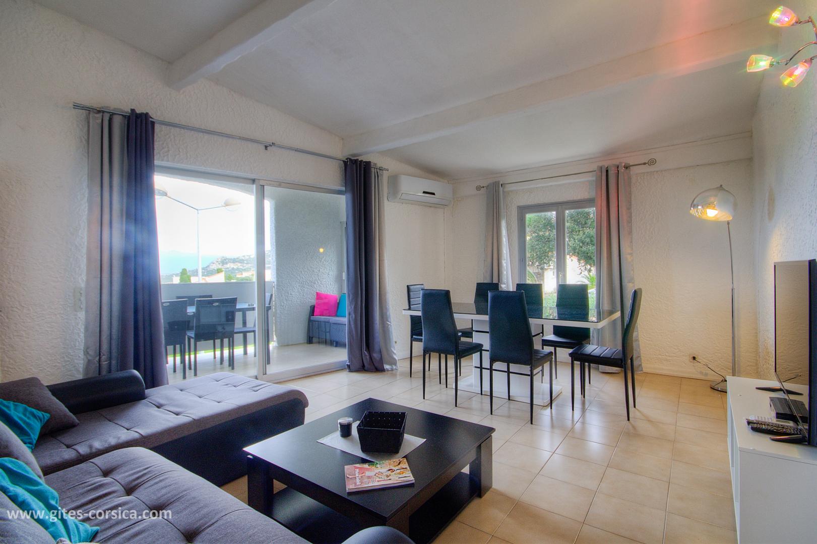 In der Marine von Sant'Ambroggio, am 1 km vom Meer entfernt, Wohnung in Duplex von 65 qm in einem kleinen Gebäude mit anderen Wohnungen, einem Lebensmittelgeschäft im Erdgeschoss und in der Nähe eines Restaurants. Es setzt sich wie folgt zusammen : Im Erdgeschoss : - Wohnzimmer / Küche - 1 Schlafzimmer mit 1 Bett 160x200 cm - Badezimmer / WC durch das Schlafzimmer erreichbar und unabhängiger Eingang vom Flur (bodengleiche Dusche) Auf dem Boden : - 1 Schlafzimmer im Dachgeschoss mit 2 Betten (90 x 190 cm) und einem Hochbett (140 x 190 cm) - Badezimmer mit Dusche / WC auf dem Schlafzimmer offen Buchung von Sonntag bis Sonntag Eisenbahnlinie am 100 Meter - Überdachte Terrasse von 12 qm - Gartenmöbel - Möglichkeit des Parkens auf der Straße - Klimaanlage im Wohnzimmer / Küche und im Schlafzimmer im Obergeschoss - Waschmaschine - Spülmaschine - Mikrowelle - Gefrierfach - Fernseher im Wohnzimmer / Küche und im Schlafzimmer im Obergeschoss - Föhn