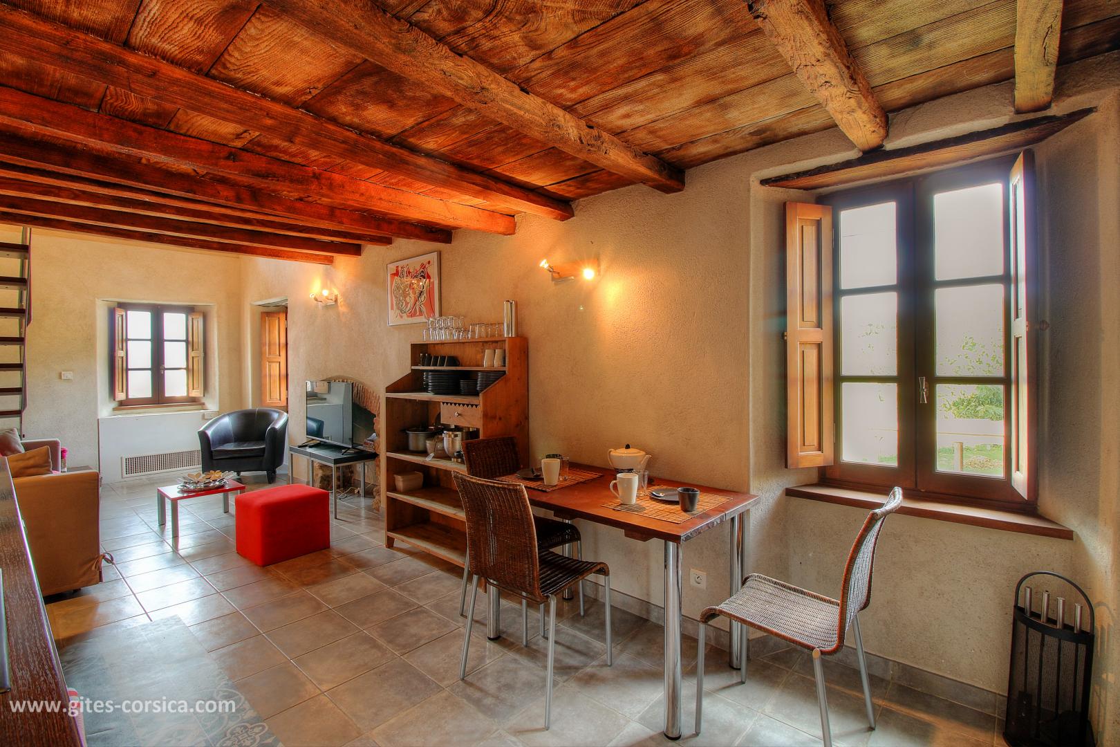 Im Dorf, Wohnung von 59 qm auf 2 Ebenen im 1. Stock eines großen Steinhauses mit 5 weiteren Ferienwohnungen (gemeinsamer Eingang mit Ferienhaus 17862). Es setzt sich wie folgt zusammen : Im erste Stock : - Wohnzimmer / Küche mit 1 Schlafsofa 160x200 cm - Duschraum / WC Im zweite Stock : - 1 Schlafzimmer mit 2 Einzelbetten (80 x 200 cm) - 1 Schlafzimmer mit 2 Einzelbetten (80 x 200 cm) - 1 Badezimmer / WC Möglichkeit 2 zusätzliche Personen auf dem Schlafsofa unterzubringen - Balkon von 6 qm Gemeinsamer Balkon auf dem Grundstück mit den anderen Vermietungen : - Geschlossener Garten von 600 qm - Liegestühle - Entspannungslounge - Gartenmöbel - 2 Steingrills - Billardraum mit Bibliothek - Parken - Gemeinsame Waschmaschine und Trockner in Wäscherei im Freien - Spülmaschine - Mikrowelle - Gefrierfach - Fernseher - WLAN