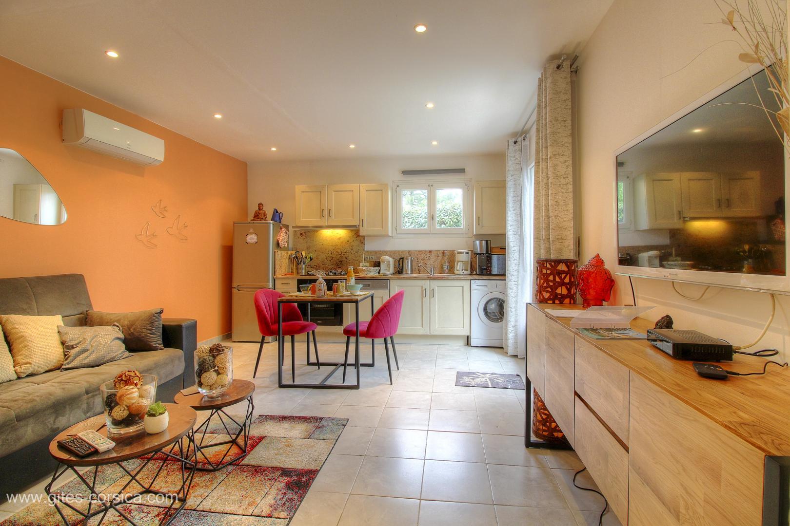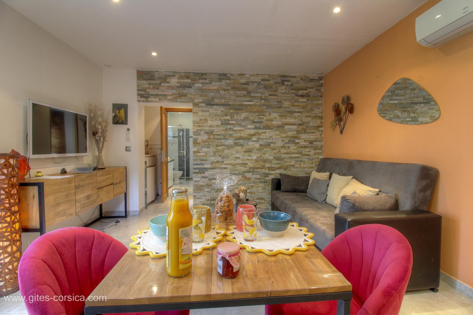 In der Nähe des südlichen Ausgangs von Porto Vecchio, einem unabhängigen Haus von 36 qm in der Nähe des Hauses der Eigentümer. Es setzt sich wie folgt zusammen :