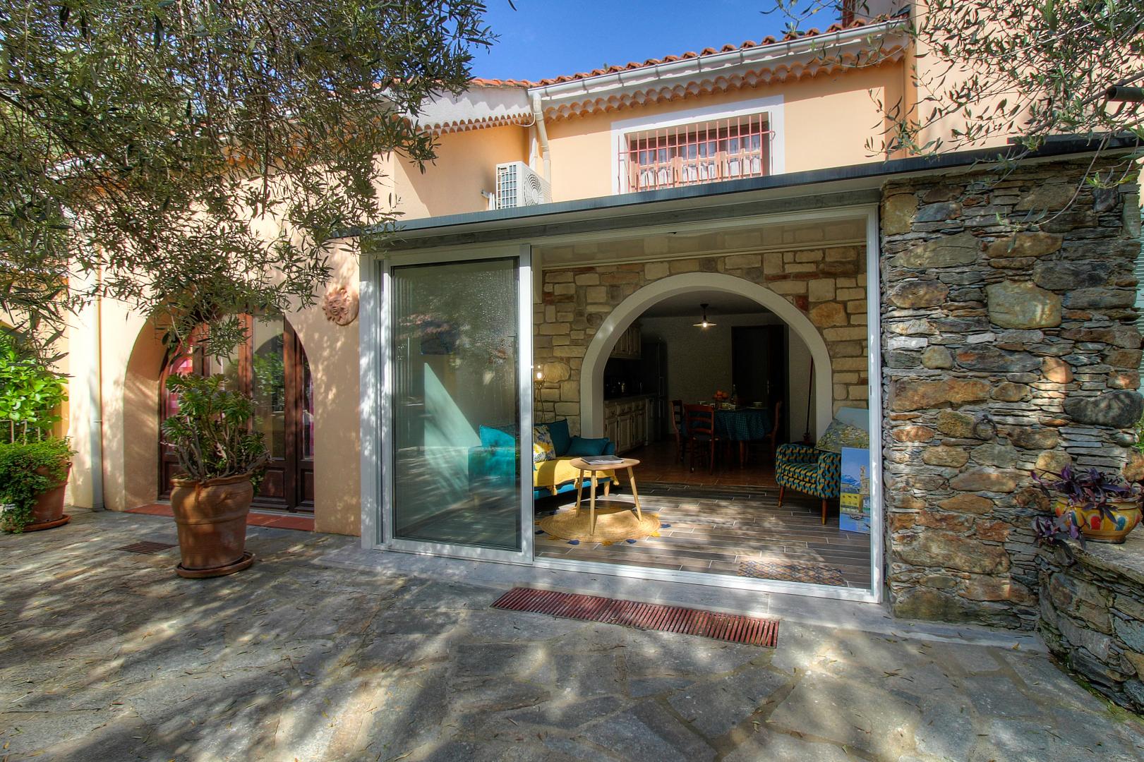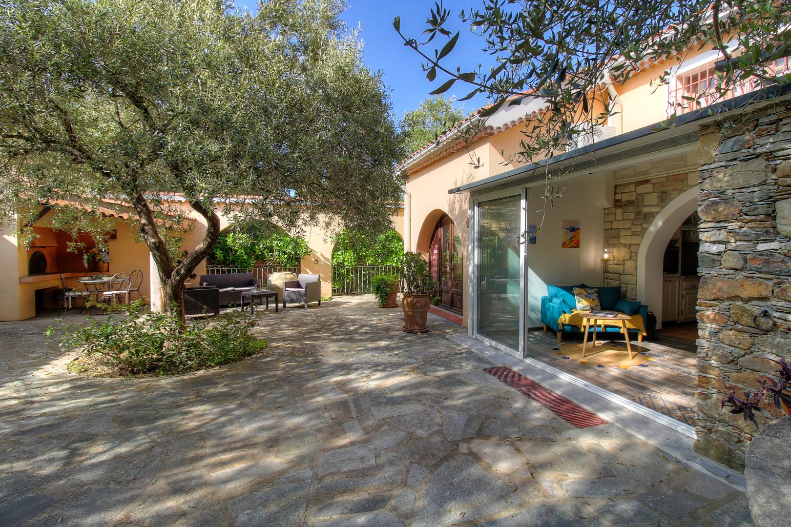 Auf einem Grundstück von 7000 qm im Schatten von Olivenbäumen, darunter 10 weitere Vermietungen, Ferienhaus von 85 qm auf 2 Ebenen, angrenzend an das Haus der Eigentümer. Es setzt sich wie folgt zusammen :