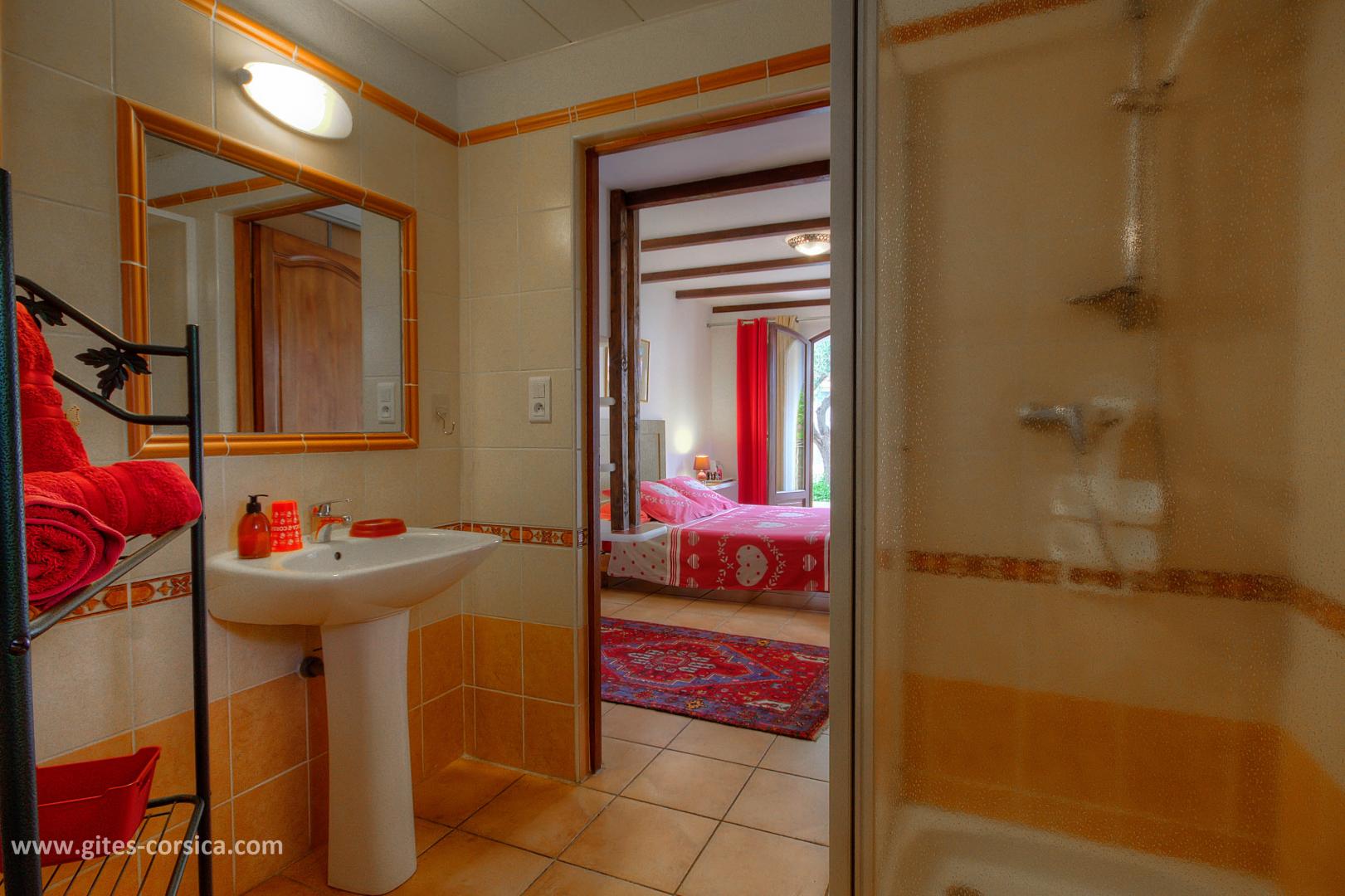 - 1 Schlafzimmer mit 1 Bett 160 x 200 cm mit angrenzendem Duschraum und separatem Toilette