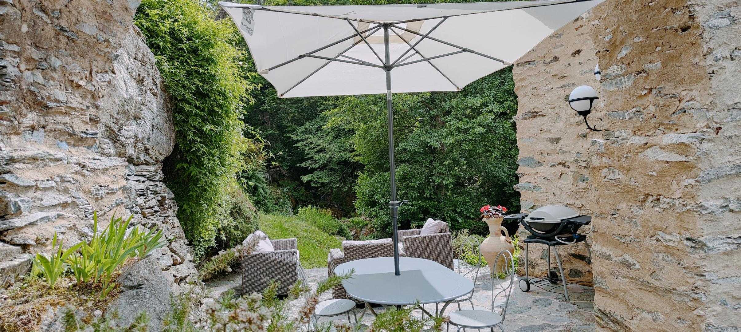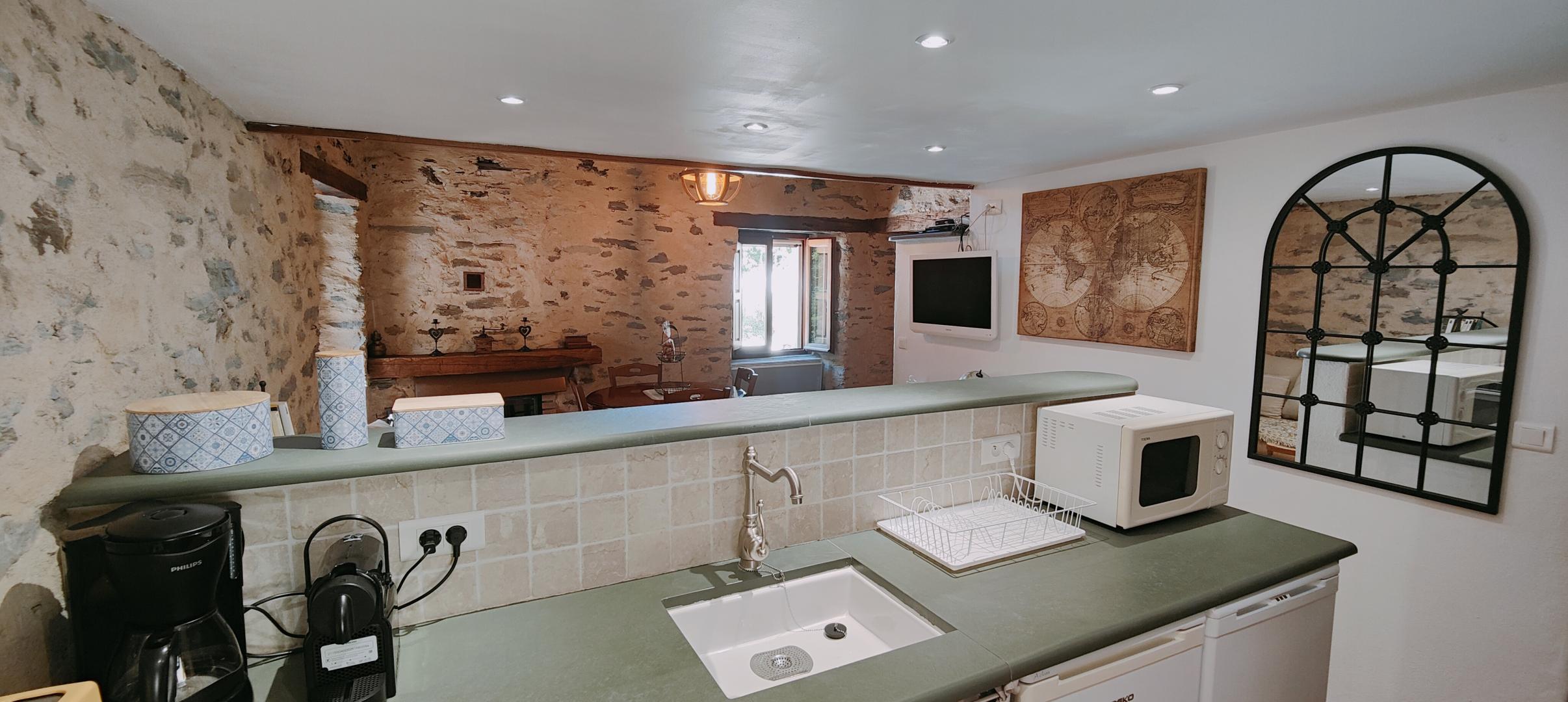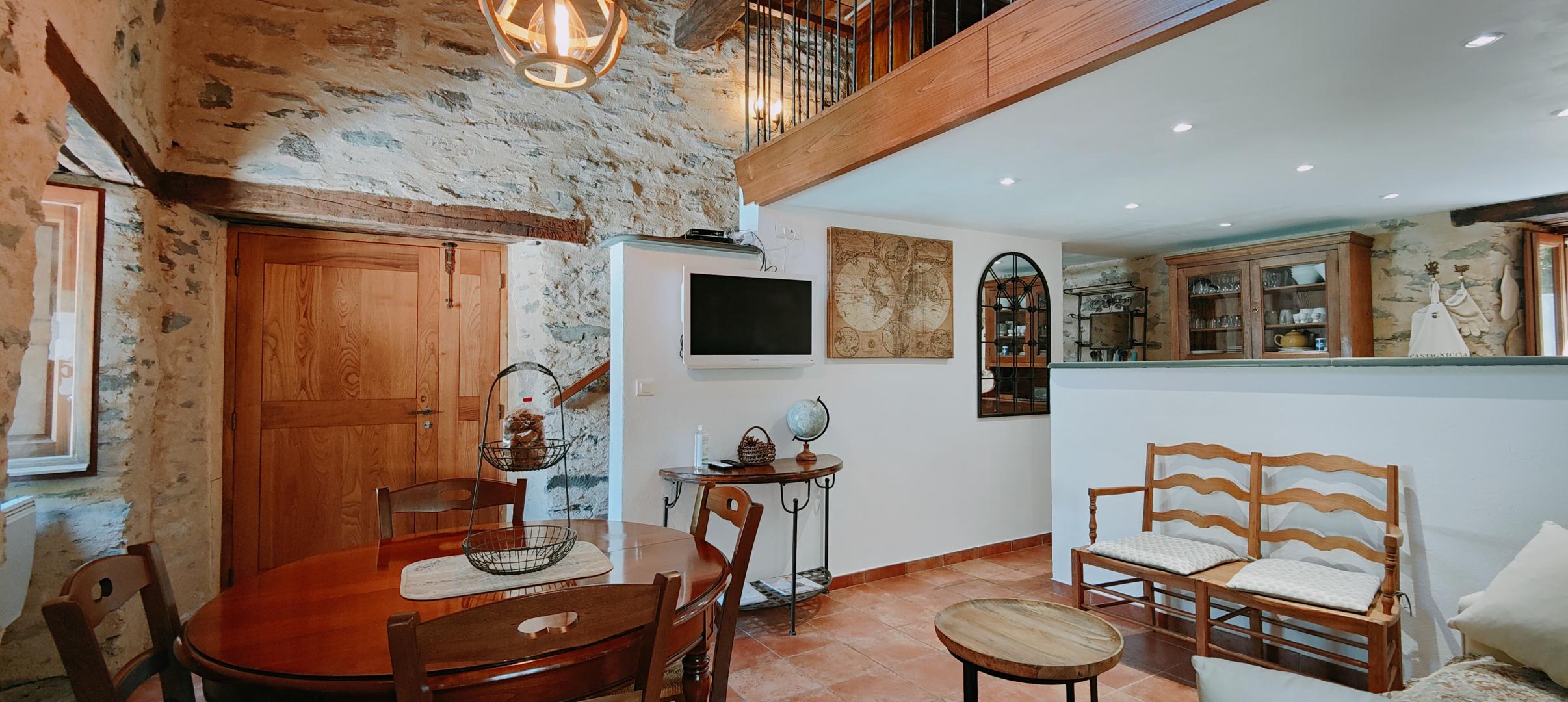 L'intérieur du moulin a été restauré et aménagé avec goût. La propriétaire à prêté attention à chaque détail pour rendre votre séjour inoubliable. La pierre côtoie le châtaignier pour le plus grand plaisir des yeux. Vous profiterez également d'une piscine commune.
