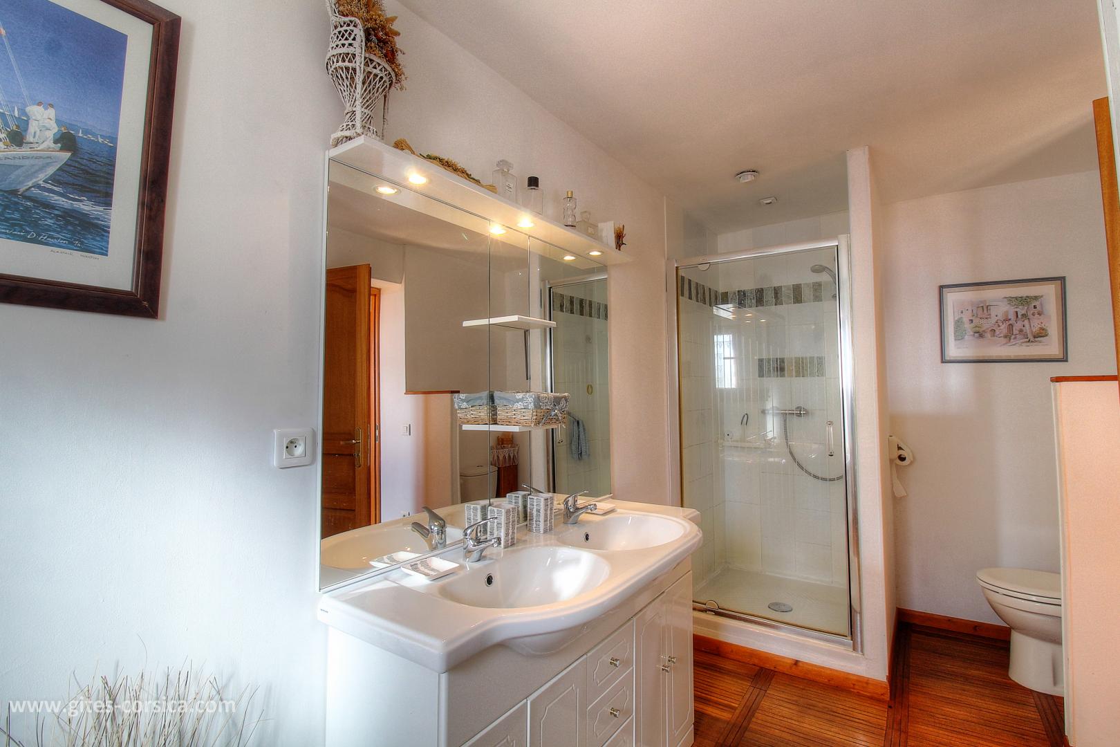 1 Schlafzimmer 2 Einzelbetten 90x190, die sind kombienierbar, mit Duschraum / Toilette
