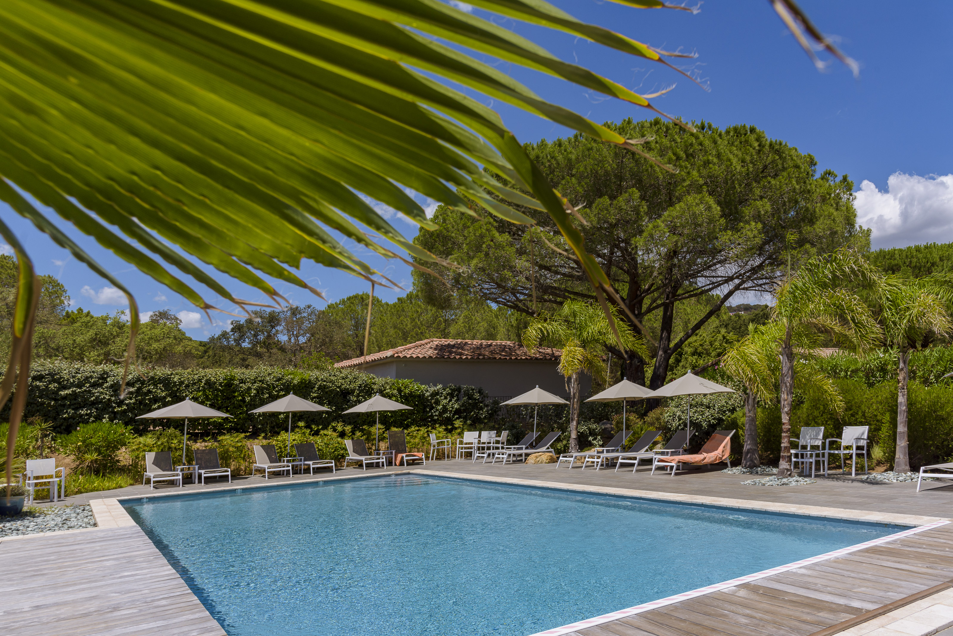 Take advantage of the heated swimming pool, deckchairs and parasols reserved for residents, and an ideal environment for relaxing with family or friends, close to the most beautiful beaches in southern Corsica and the lively center of Porto-Vecchio.