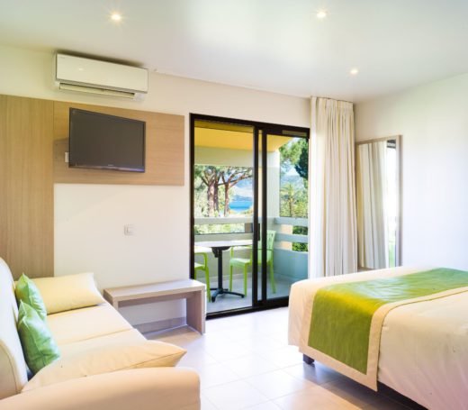 On the edge of the Gulf of Porto-Vecchio, in a 10-hectare park planted with trees and flowers, right on the water, the Hotel Marina Corsica *** offers spacious and well-equipped rooms.