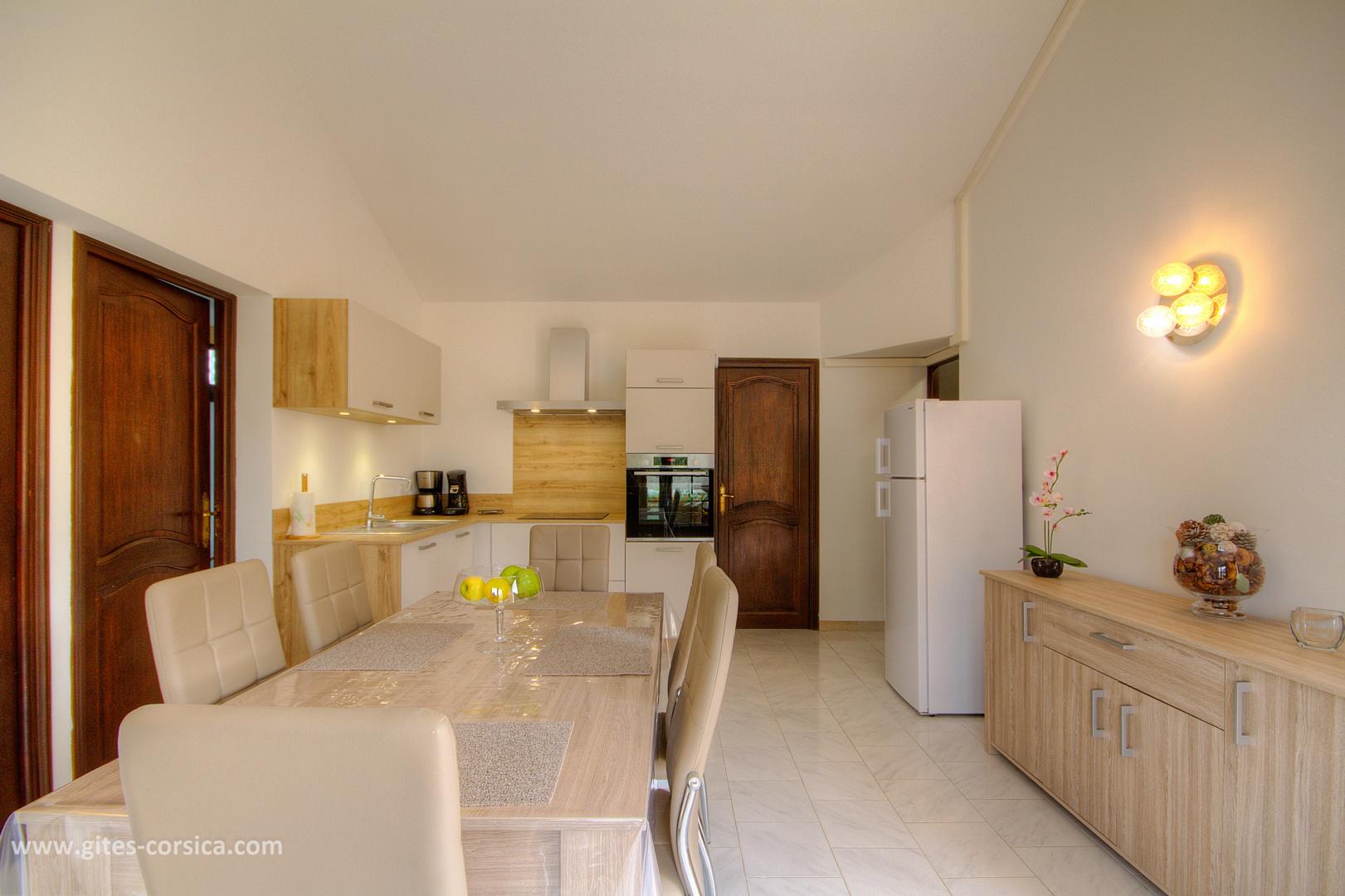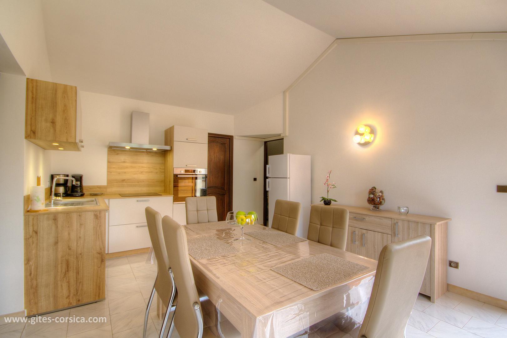 150 meters from the beach, on a 1300 m² property, 69 m² gîte on the 1st floor of a detached house which includes the owner's apartment on the ground floor. It is composed as follows: