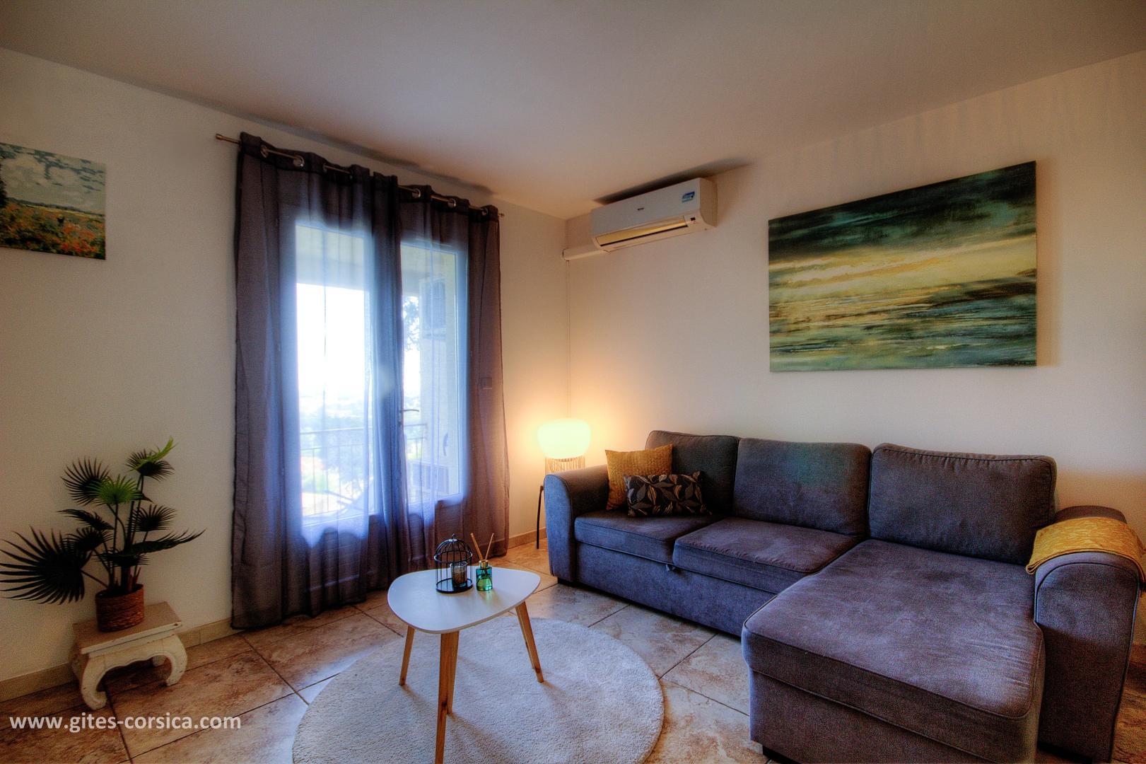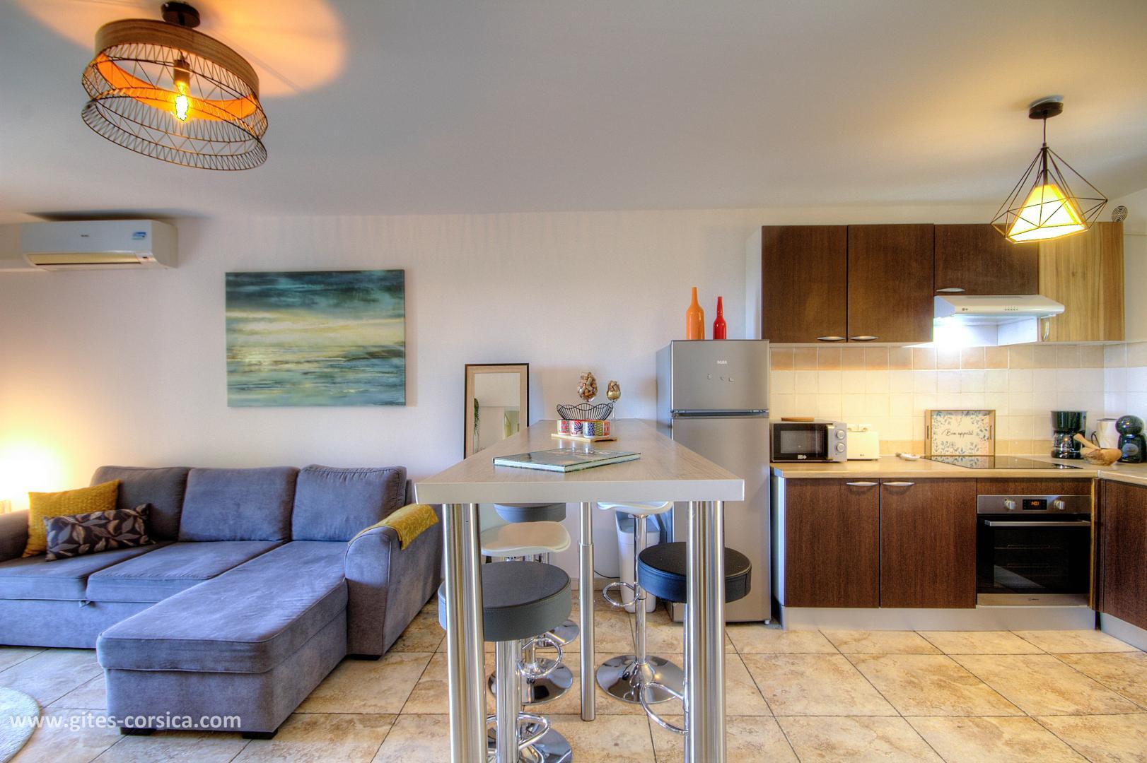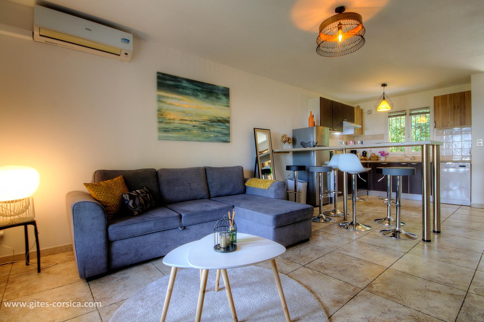 - Air-conditioned living room/kitchen including a sofa bed