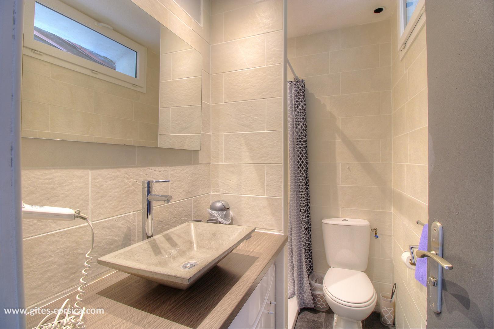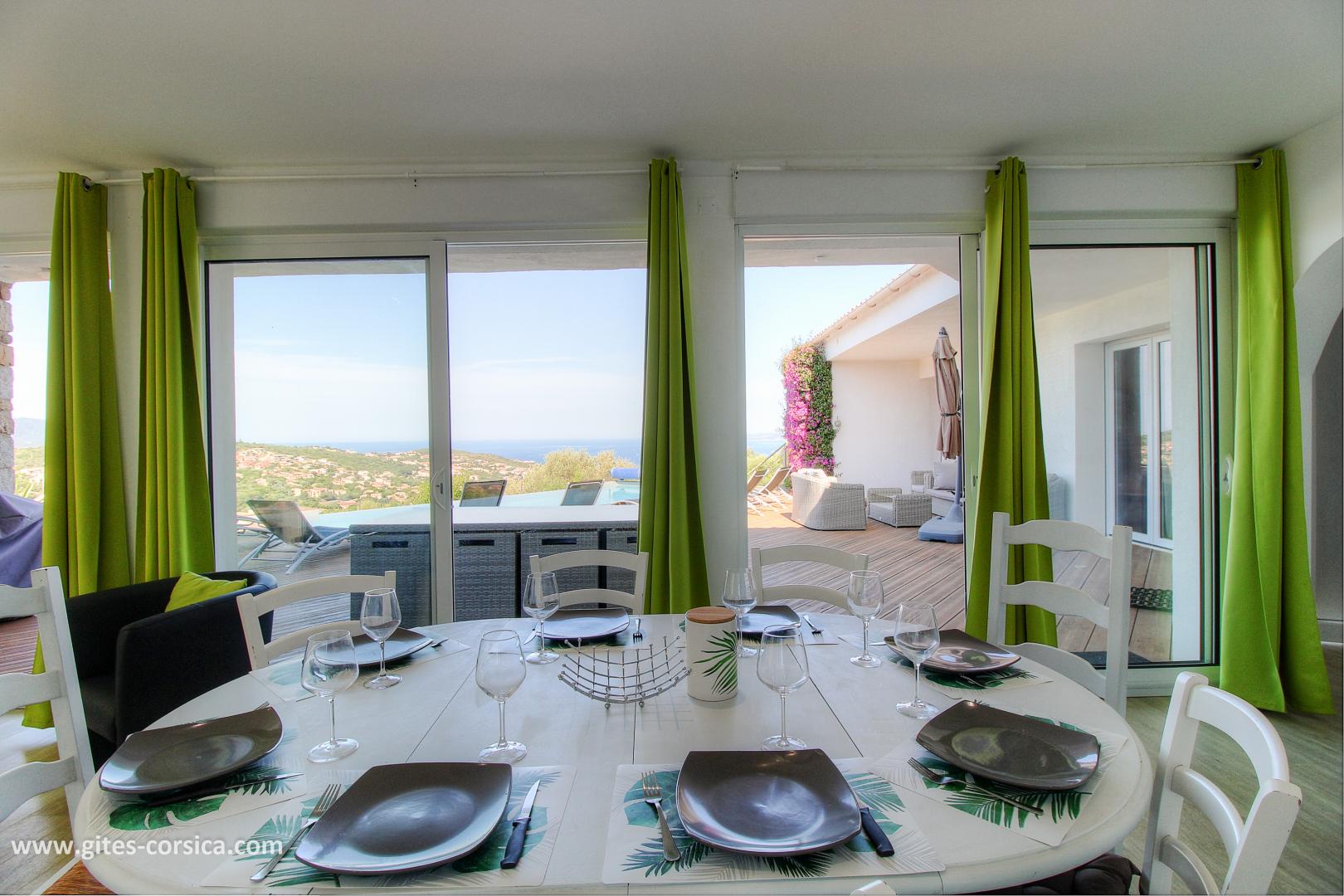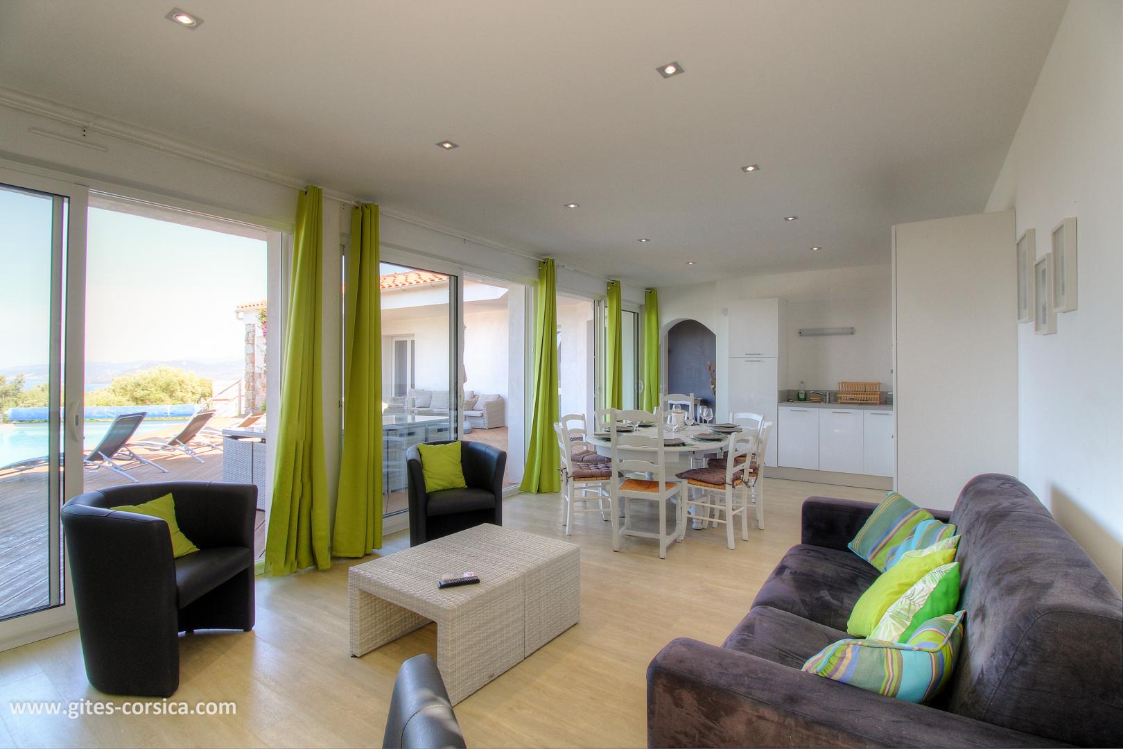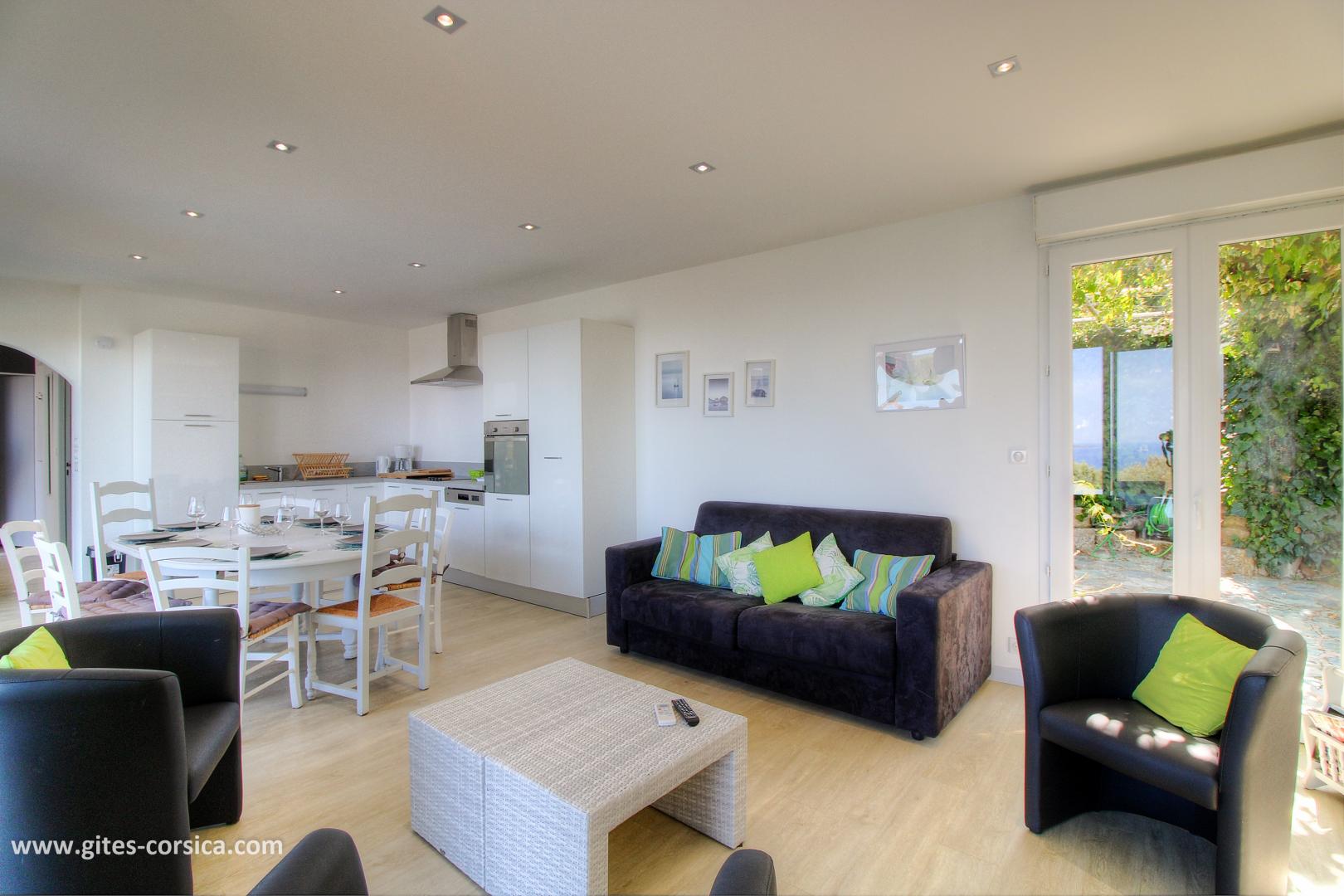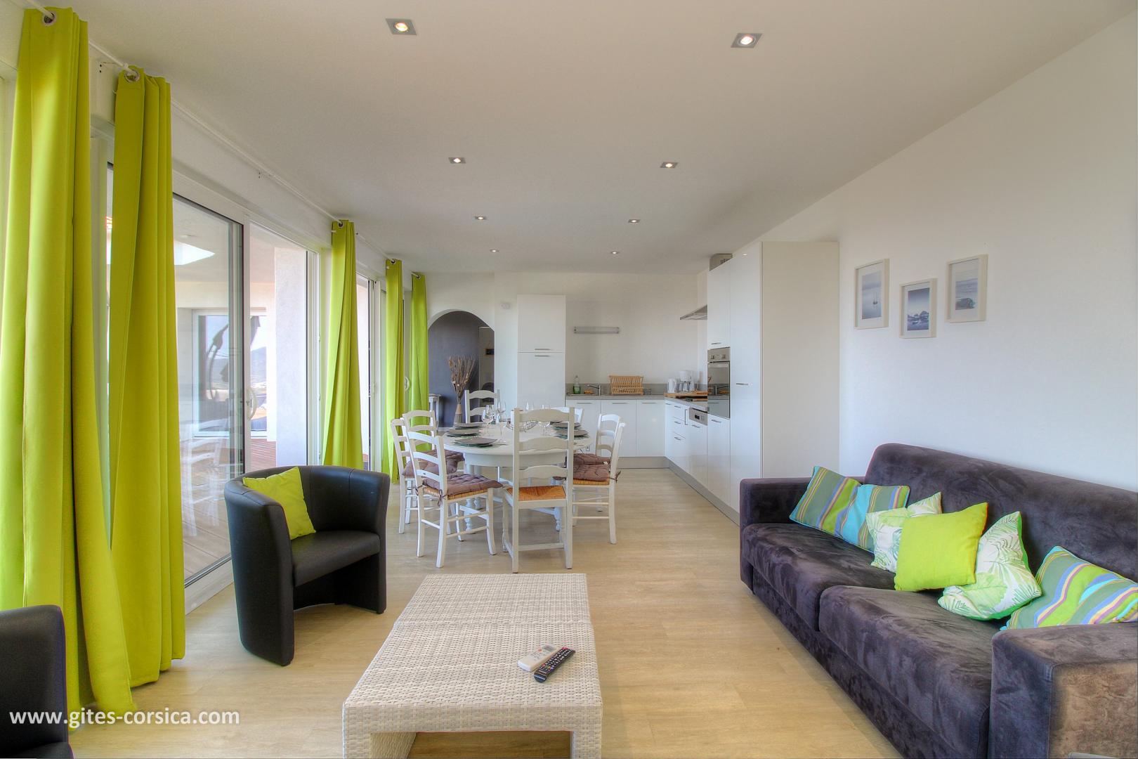 Dans une propriété close de 2 500 m² face à la mer, gîte de 123 m² au rez-de-chaussée d'une villa comprenant un autre gîte à l'étage (22342). Il se compose ainsi:
