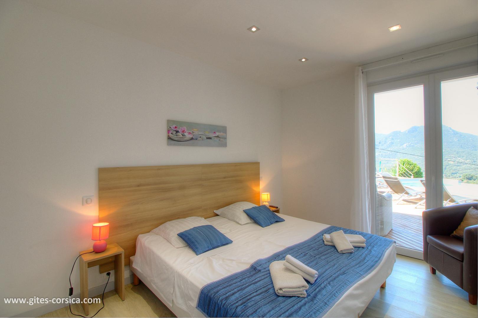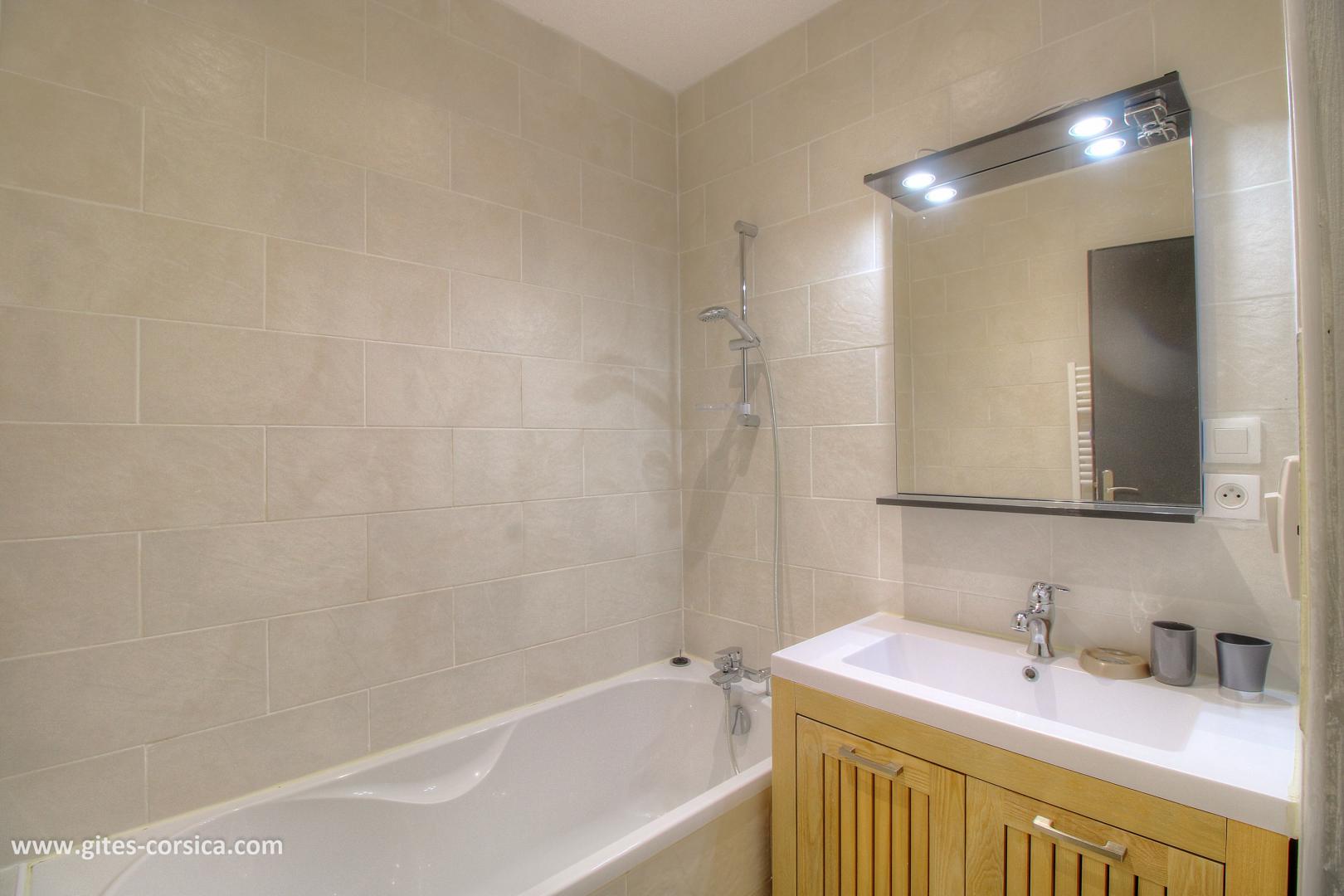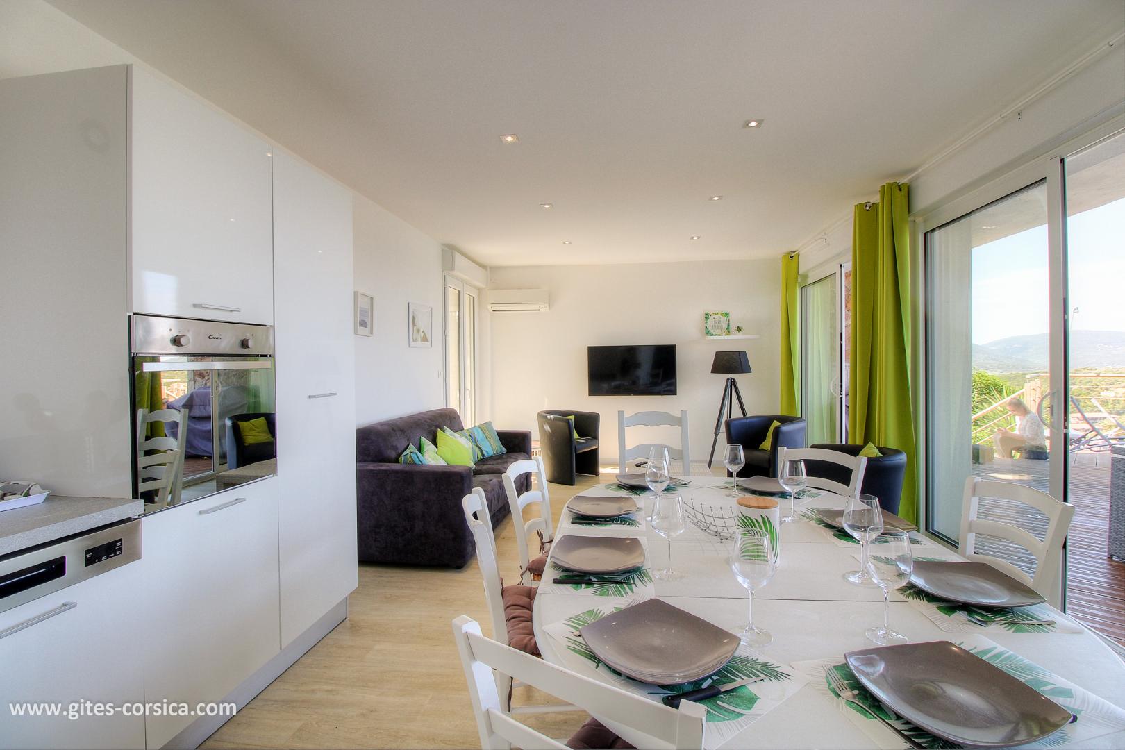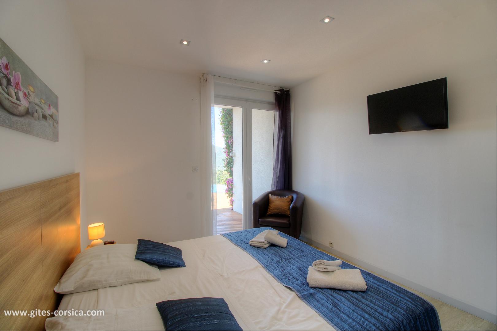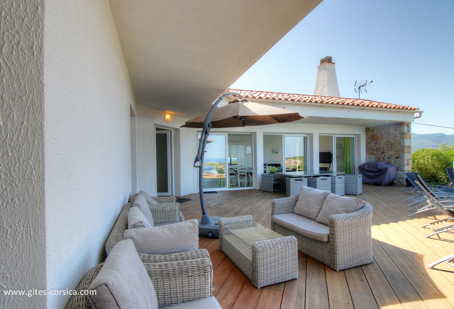 Dans une propriété close de 2 500 m² face à la mer, gîte de 123 m² au rez-de-chaussée d'une villa comprenant un autre gîte à l'étage (22342). Il se compose ainsi:
