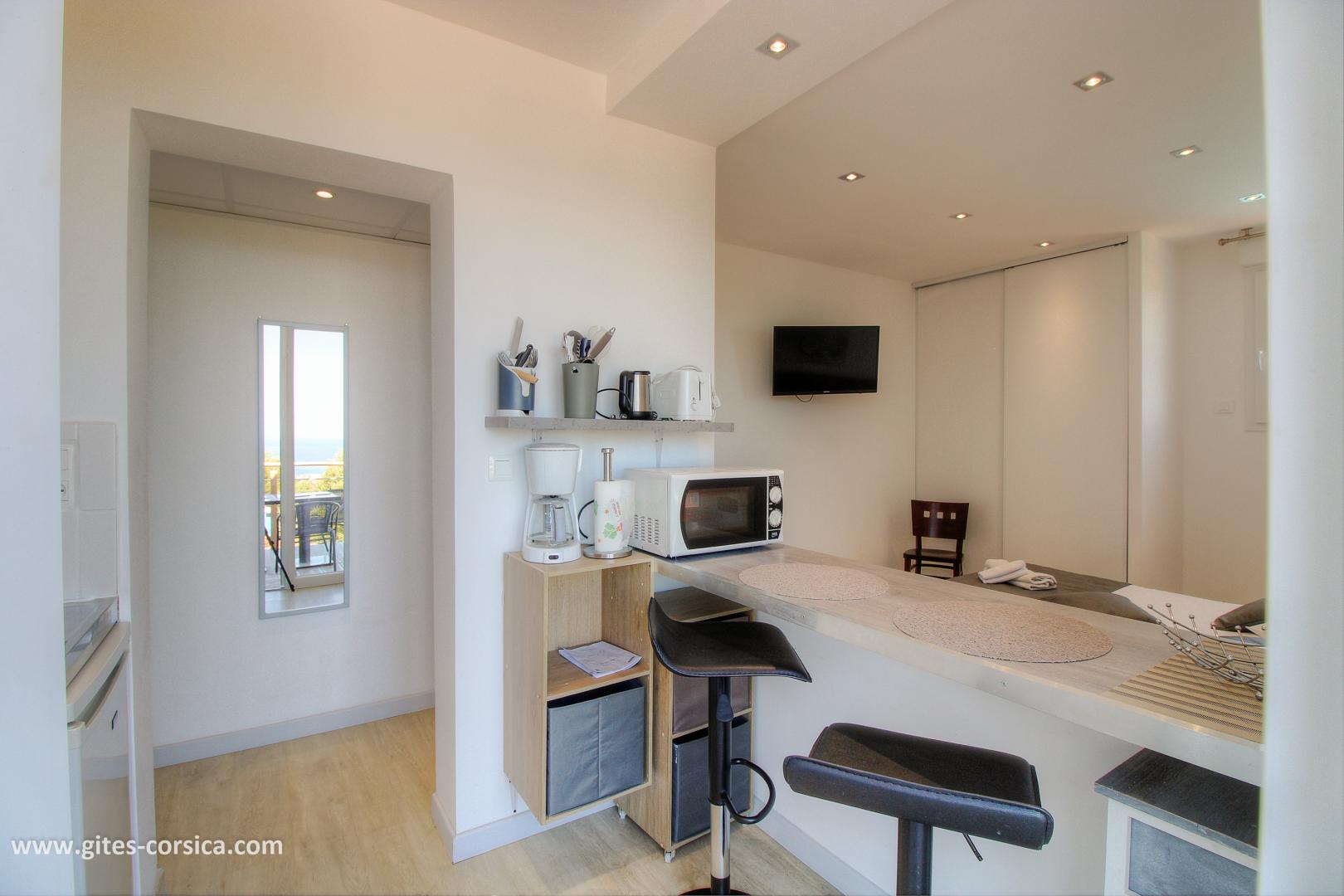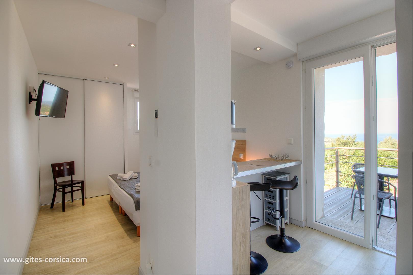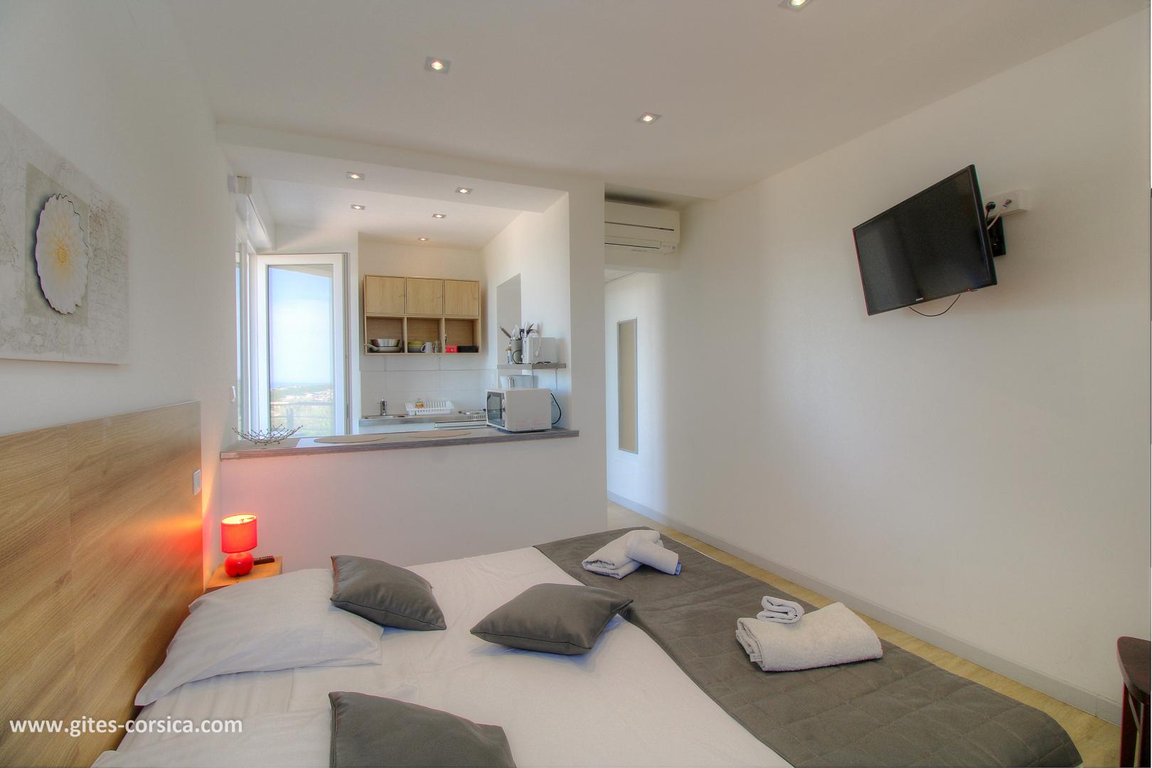 - 1 chambre comprenant 2 lits 90 x 200 cm jumelables avec kitchenette et terrasse privative